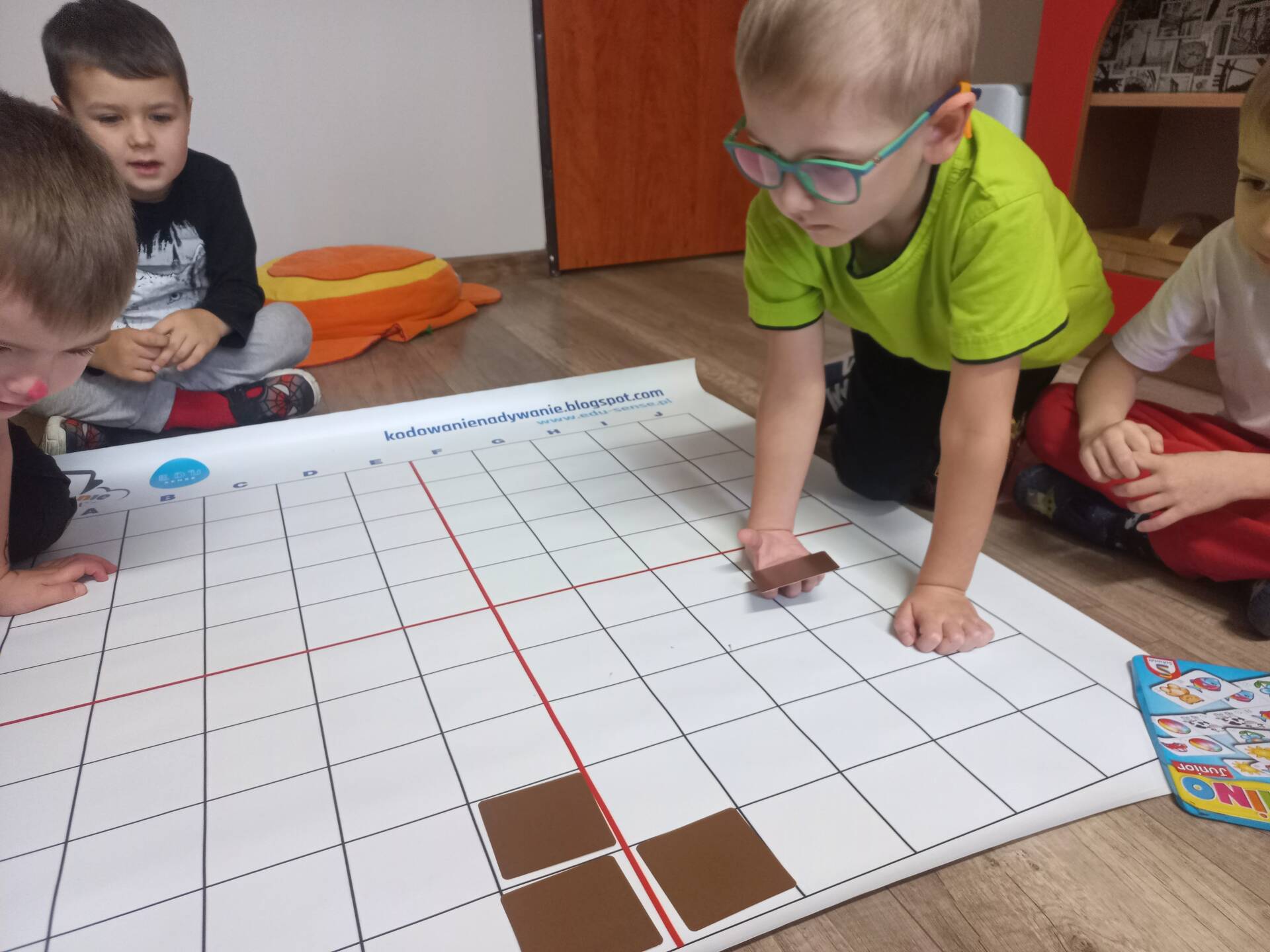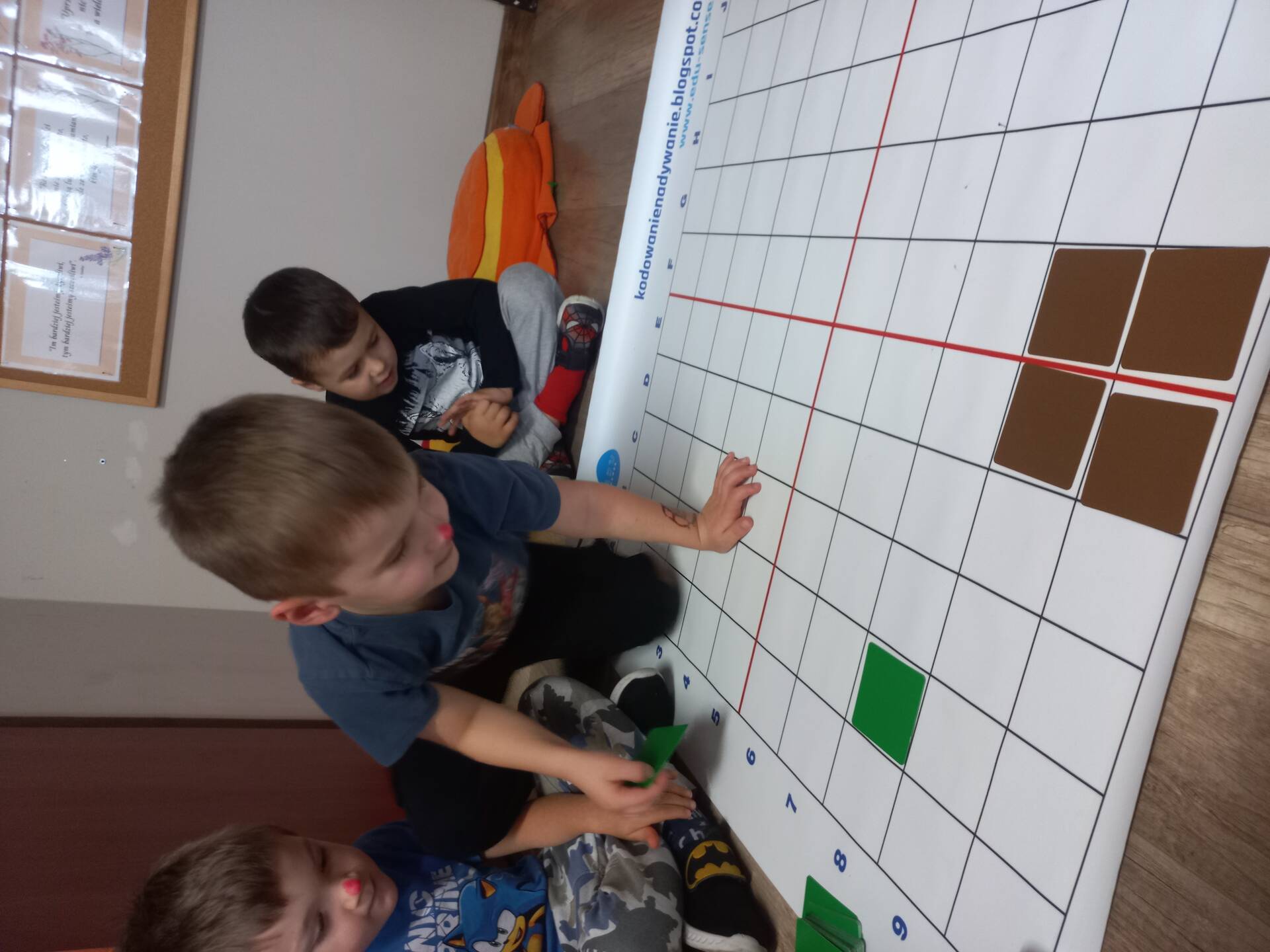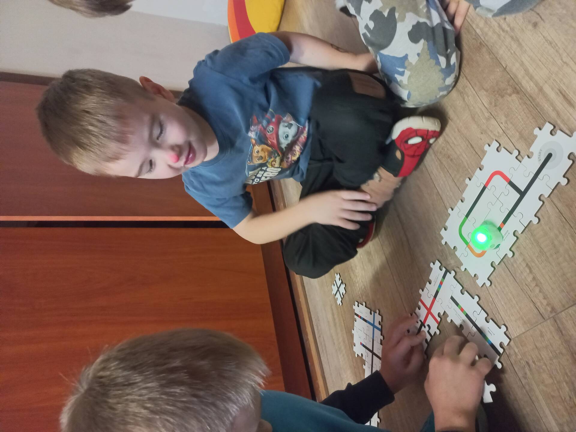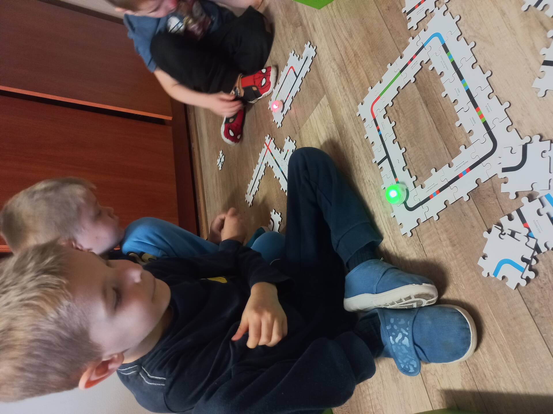 13.12.2024r. przedszkolaki układały na macie edukacyjnej choinkę według kodu. Później przyozdobiły ją „bombkami”. Na koniec zajęć z puzzli ułożyli bombki, po których poruszał się robot Ozobot.