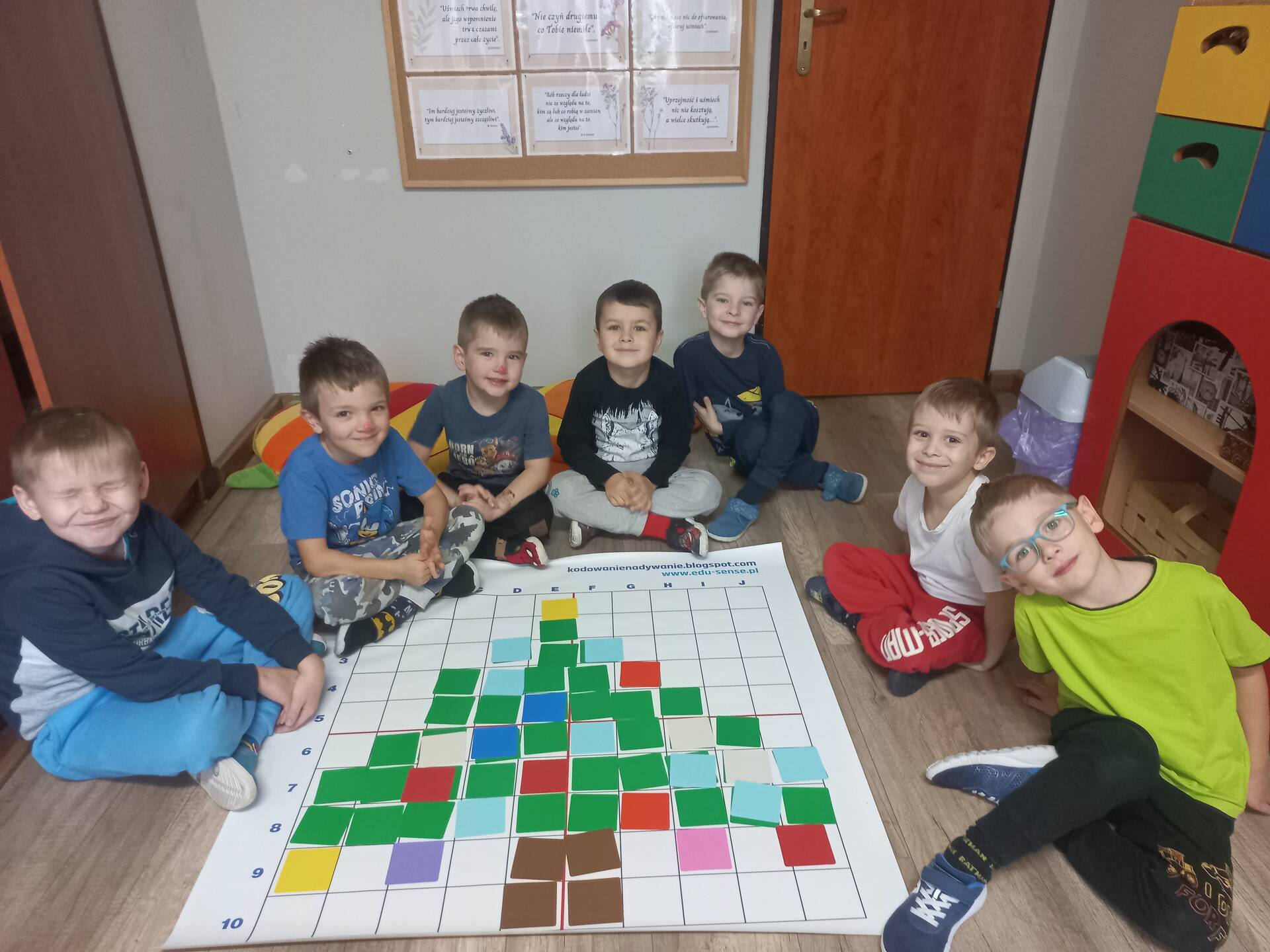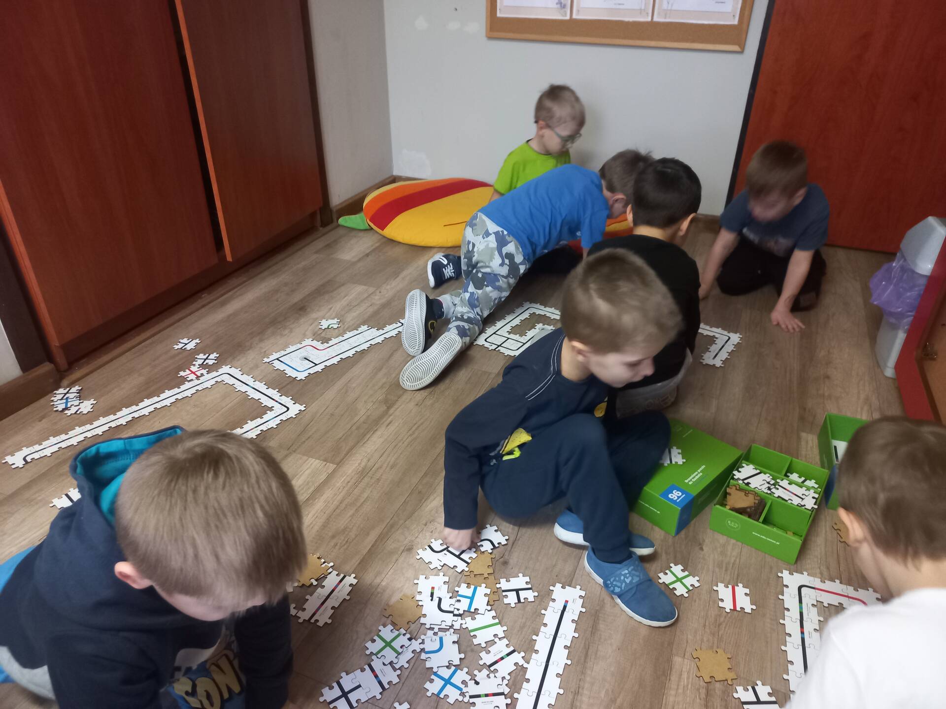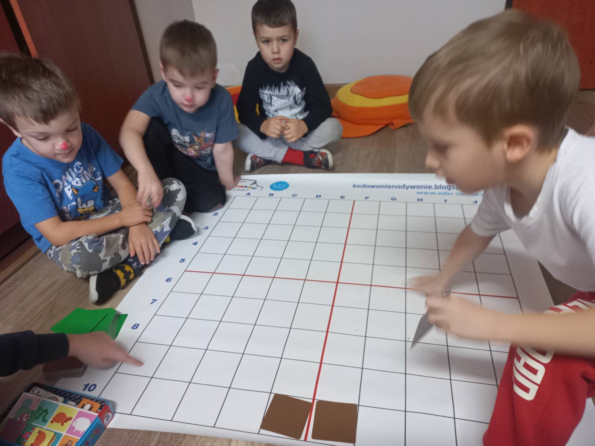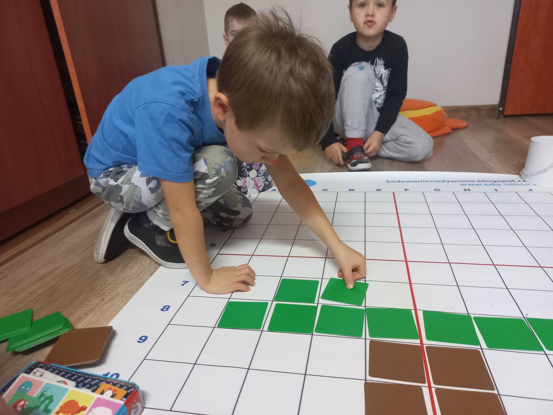 13.12.2024r. przedszkolaki układały na macie edukacyjnej choinkę według kodu. Później przyozdobiły ją „bombkami”. Na koniec zajęć z puzzli ułożyli bombki, po których poruszał się robot Ozobot.