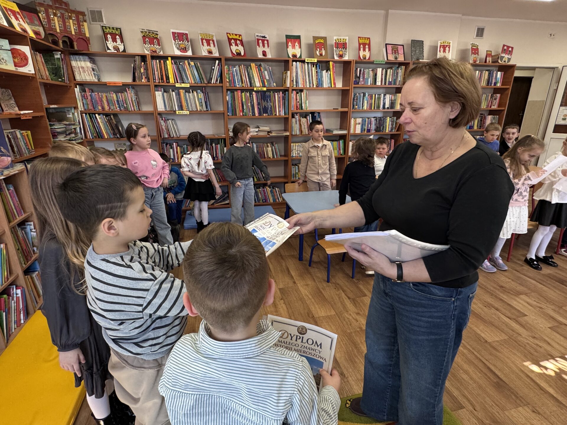 „Niezapominajki” w marcu i kwietniu uczestniczyły w zajęciach w Publicznej Bibliotece pod hasłem „Czwartki z historią Mieroszowa”. Spotkania były okazją do poznania historii naszego miasta, które w tym roku obchodzi piękny jubileusz 700-lecia. Podczas zajęć pani Wioletka opowiadała dzieciom o dawnym Zamku Radosno, historycznych kamienicach Mieroszowa oraz o starych zawodach, takich jak kowal, szewc, tkacz i rolnik. Przedszkolaki poznały także ciekawostki związane z dawnymi pociągami i transportem kolejowym w naszej gminie. Na zakończenie każdy uczestnik otrzymał pamiątkowy dyplom oraz przypinkę z okazji 700-lecia Mieroszowa, co było miłym podsumowaniem tych wartościowych spotkań.