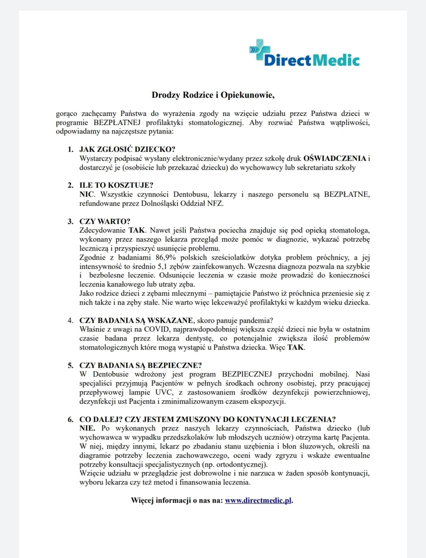 Oświadczenie rodzica Dentobus 2021