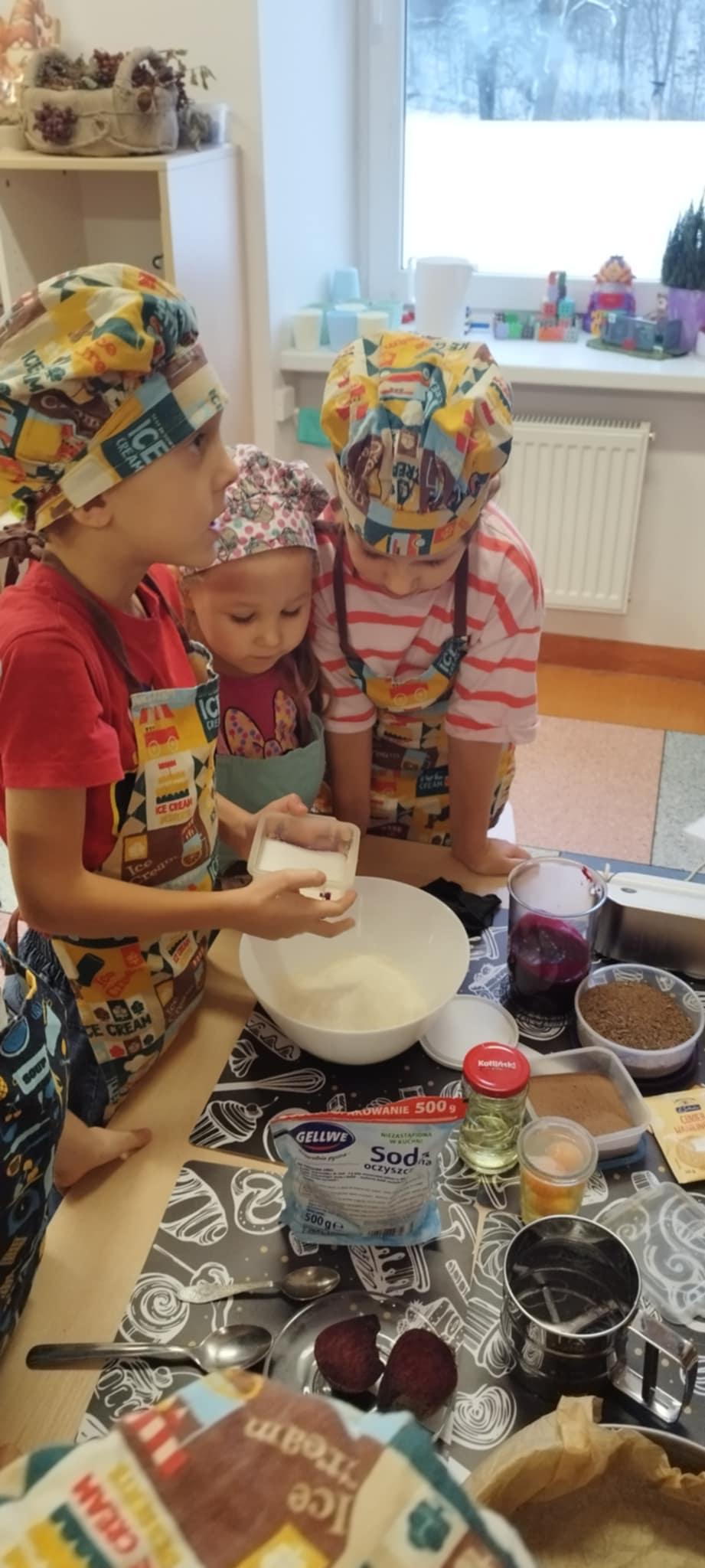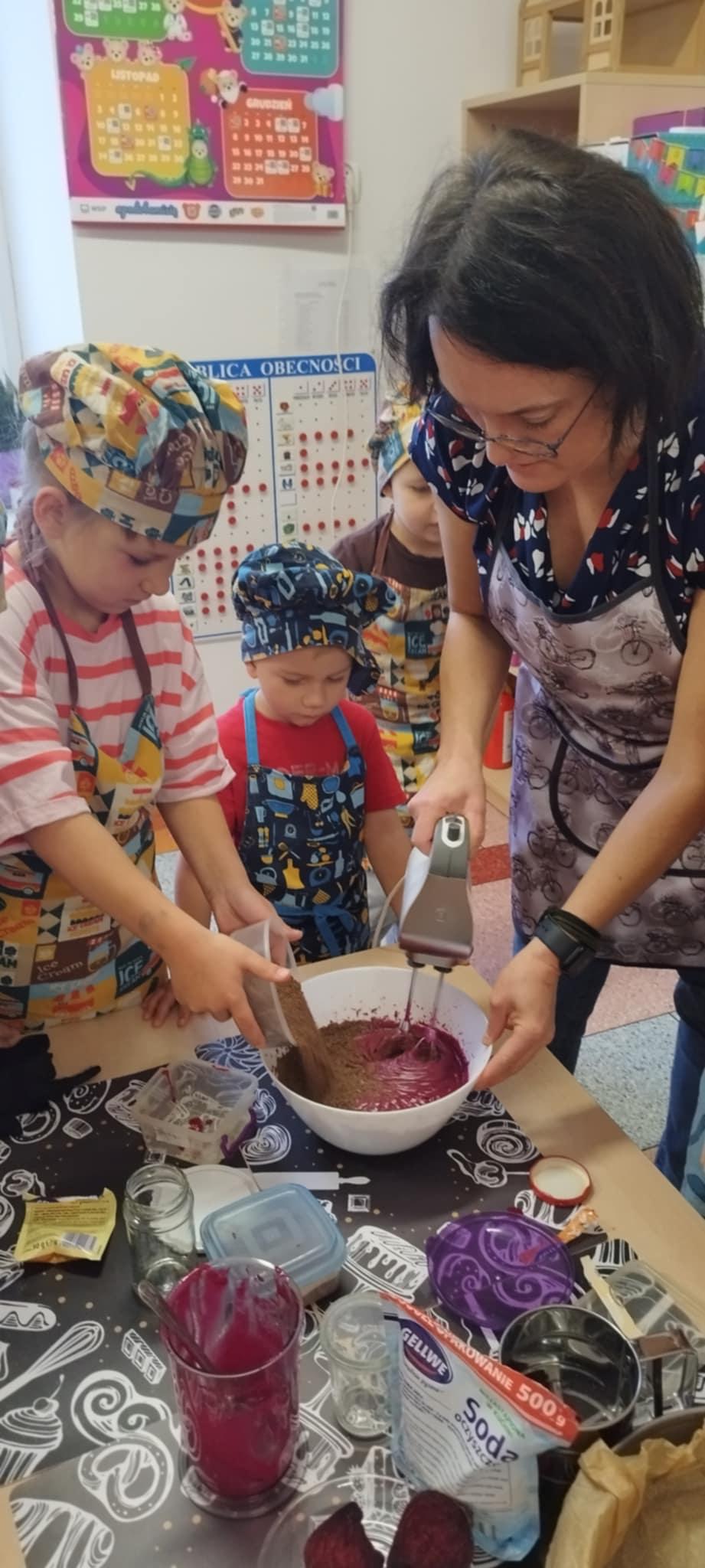 29 listopada odbyły się comiesięczne warsztaty kulinarne. Tym razem dzieci poznawały zalety buraka. Przedszkolaki z pomocą Pań przygotowały buraczane Brownie. Wszyscy zajadali się przypysznym ciastem.