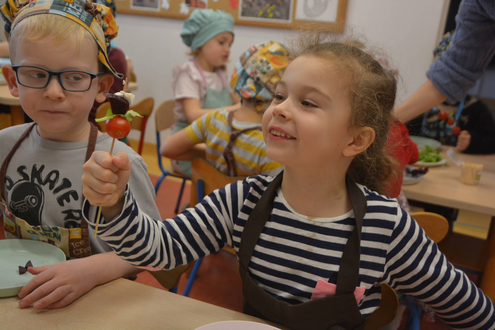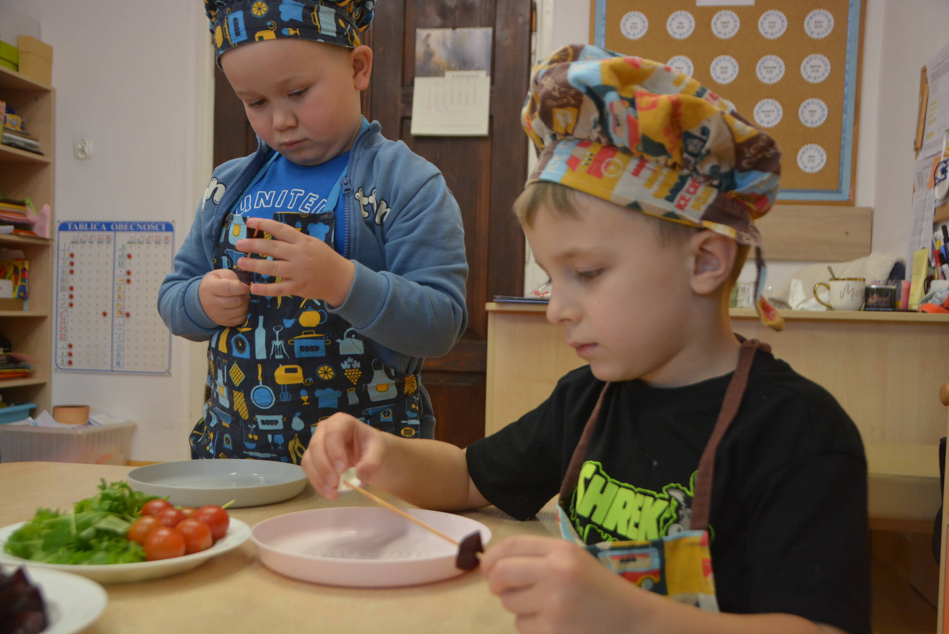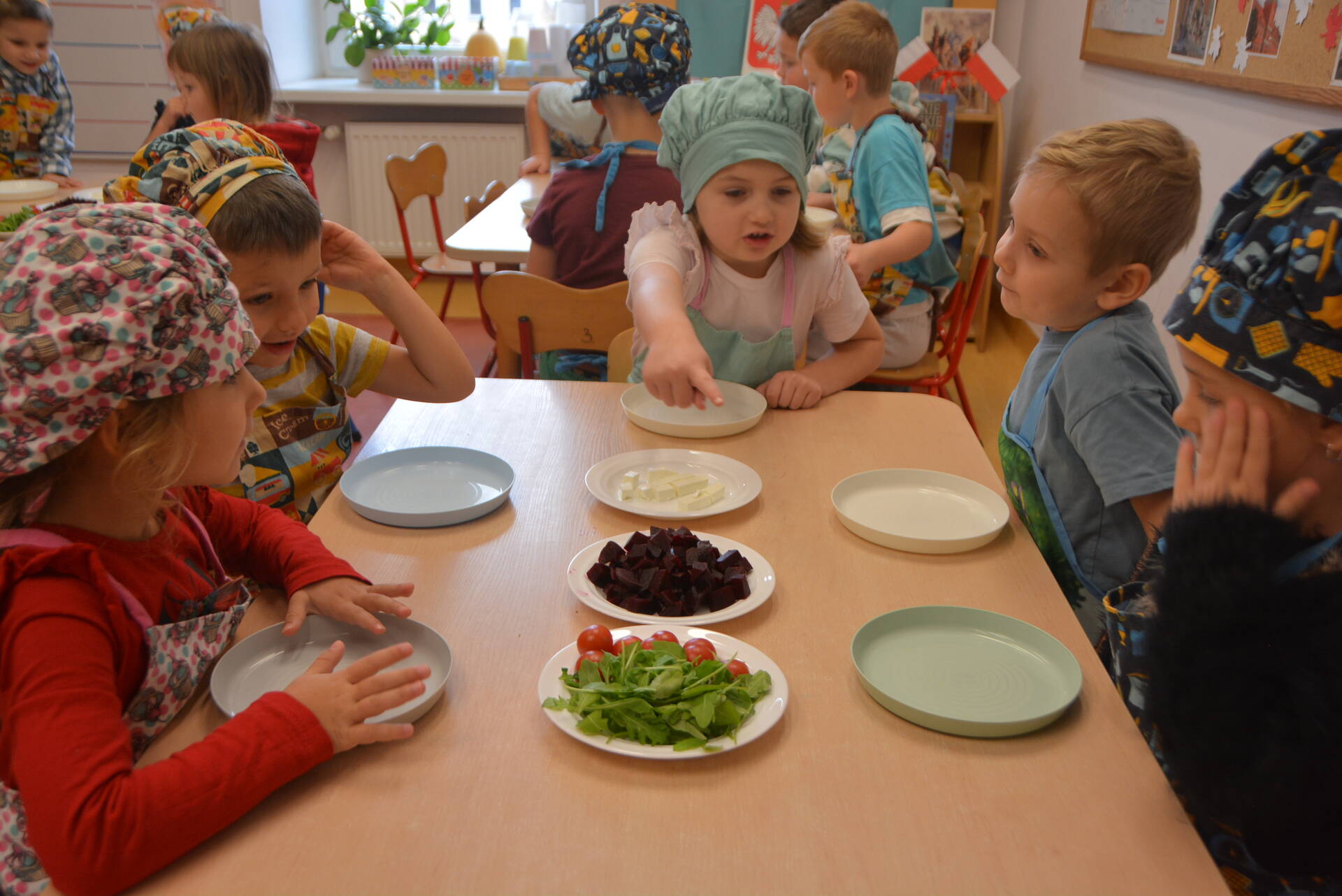 24 listopada – ten dzień Bławatki spędziły z burakiem czerwonym. Po zajęciach z panią Moniką o walorach odżywczych i wyglądzie buraka dzieci przystąpiły do komponowania zdrowych szaszłyków. Na patyczkach znalazły się kawałki buraka, sera, pomidorki i listki rukoli. Była to pyszna przekąska, zachęcająca do częstszego zjadania buraczka.