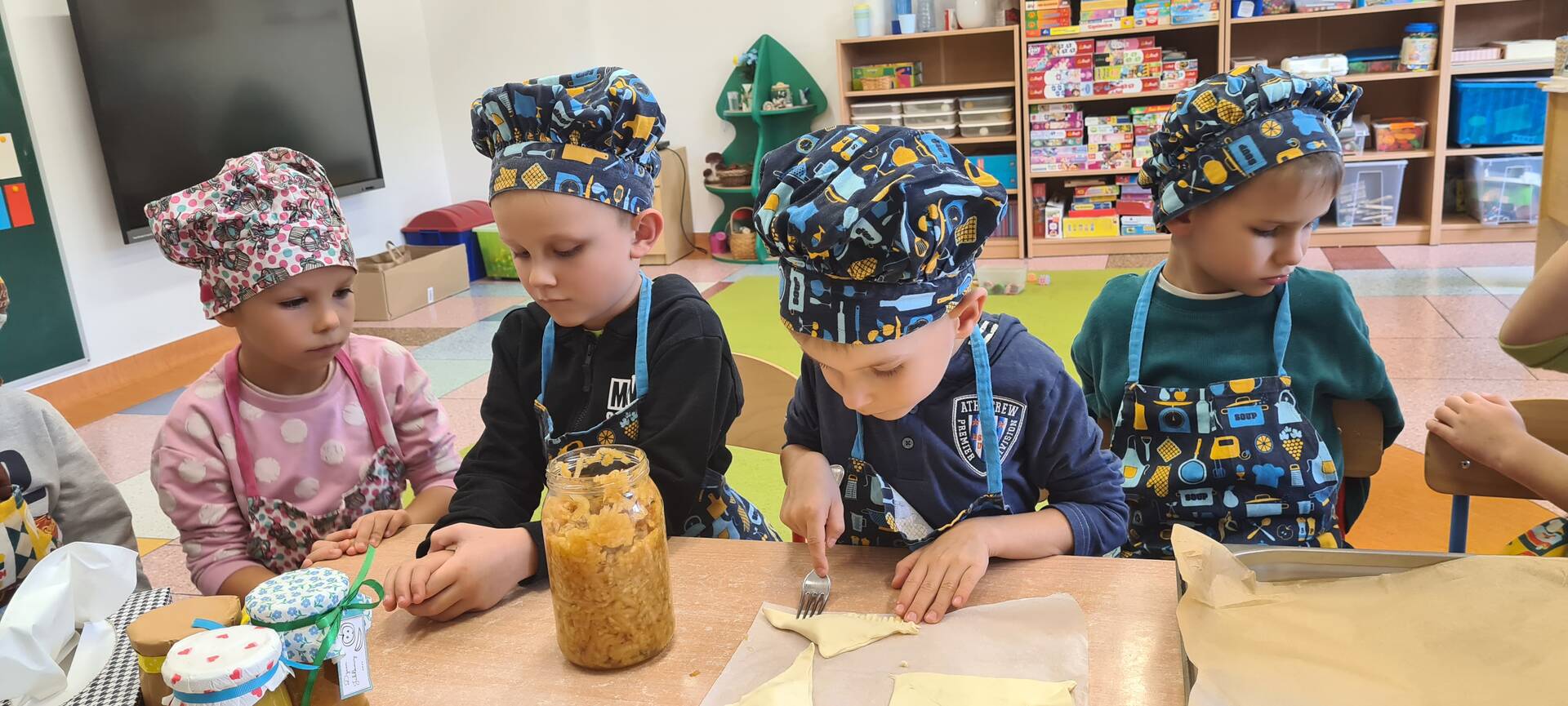 1października obchodziliśmy w przedszkolu dzień jabłka. Bratki z radością odkrywały świat tego pysznego owocu. Niesamowitą atrakcją było samodzielne zrobienie ciasteczek z tartymi jabłkami.