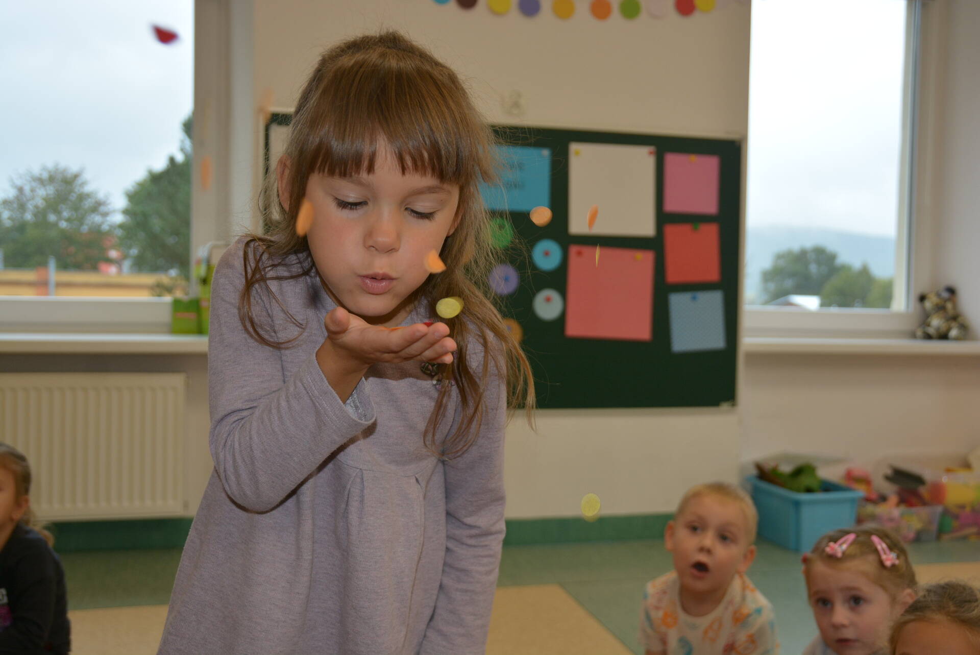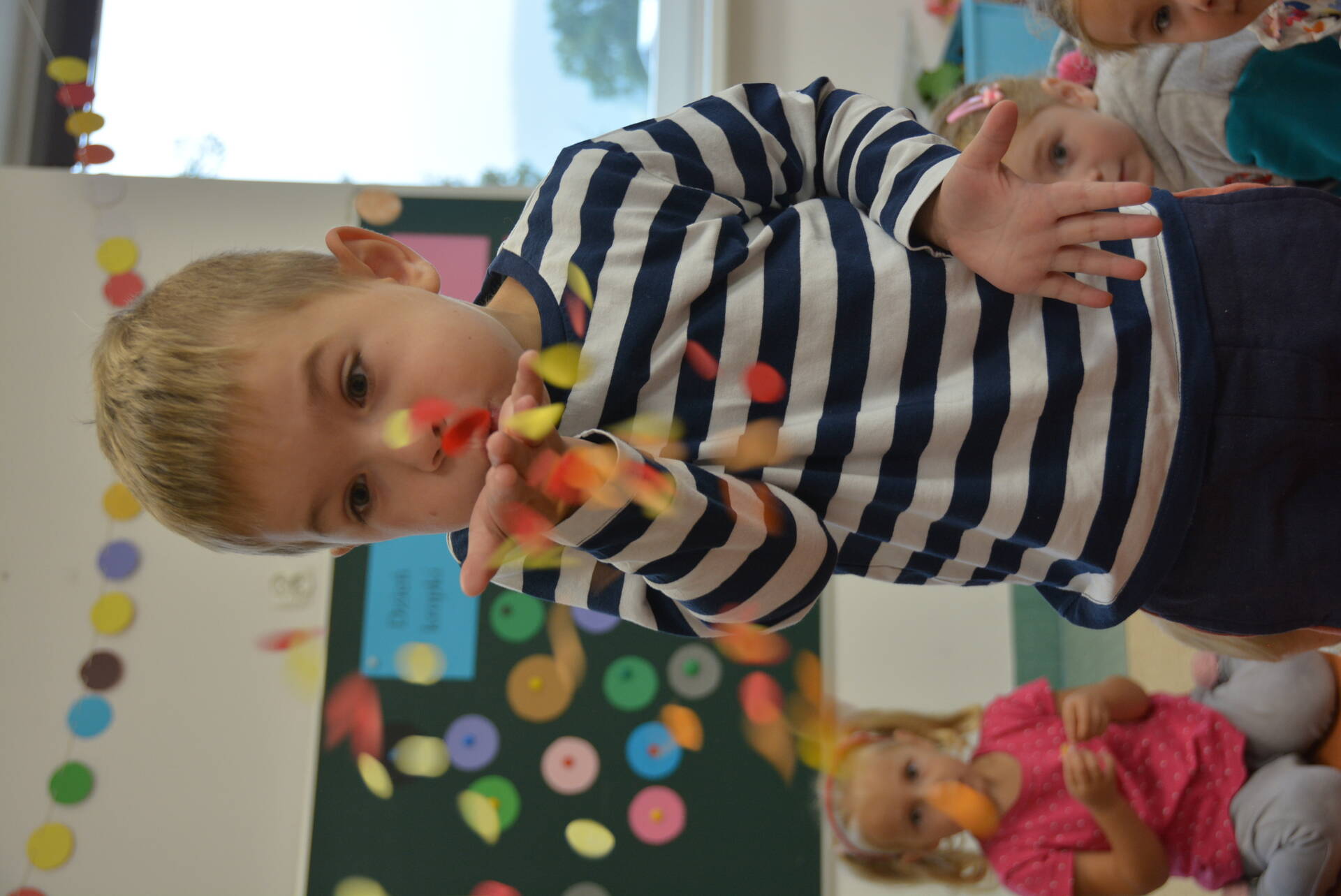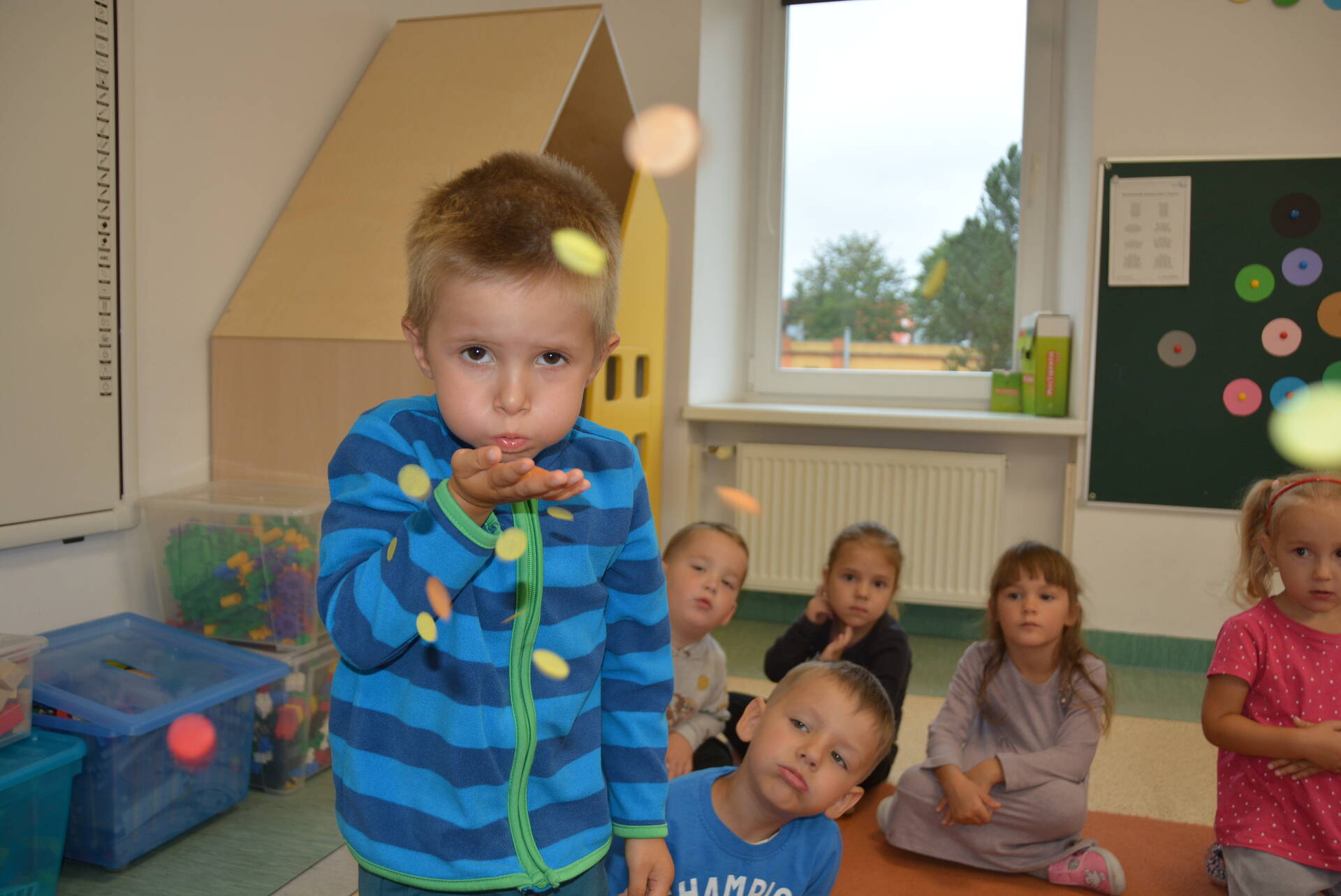 13 września, z okazji „dnia kropki”, Stokrotki poznały opowieść o pewnej dziewczynce, która odkryła u siebie talent do malowania kropek. Każdy z nas ma jakiś talent, naszym zadaniem jest go odkryć, rozwijać i doceniać. Dlatego obchodzimy dzień kropki. Stokrotki zaś na pewno mają wielki talent do dobrej zabawy – proszę tylko zerknąć na zdjęcia.