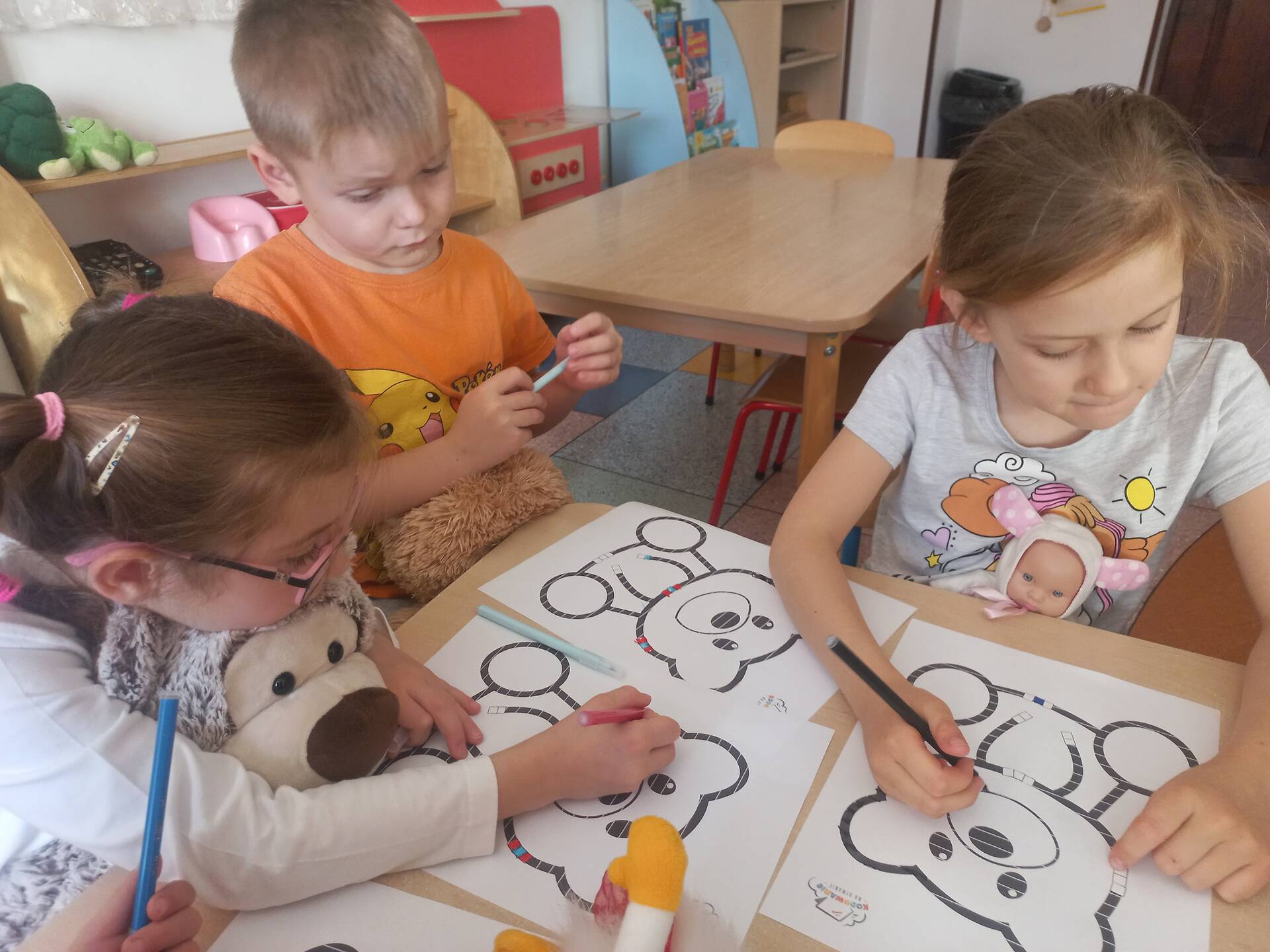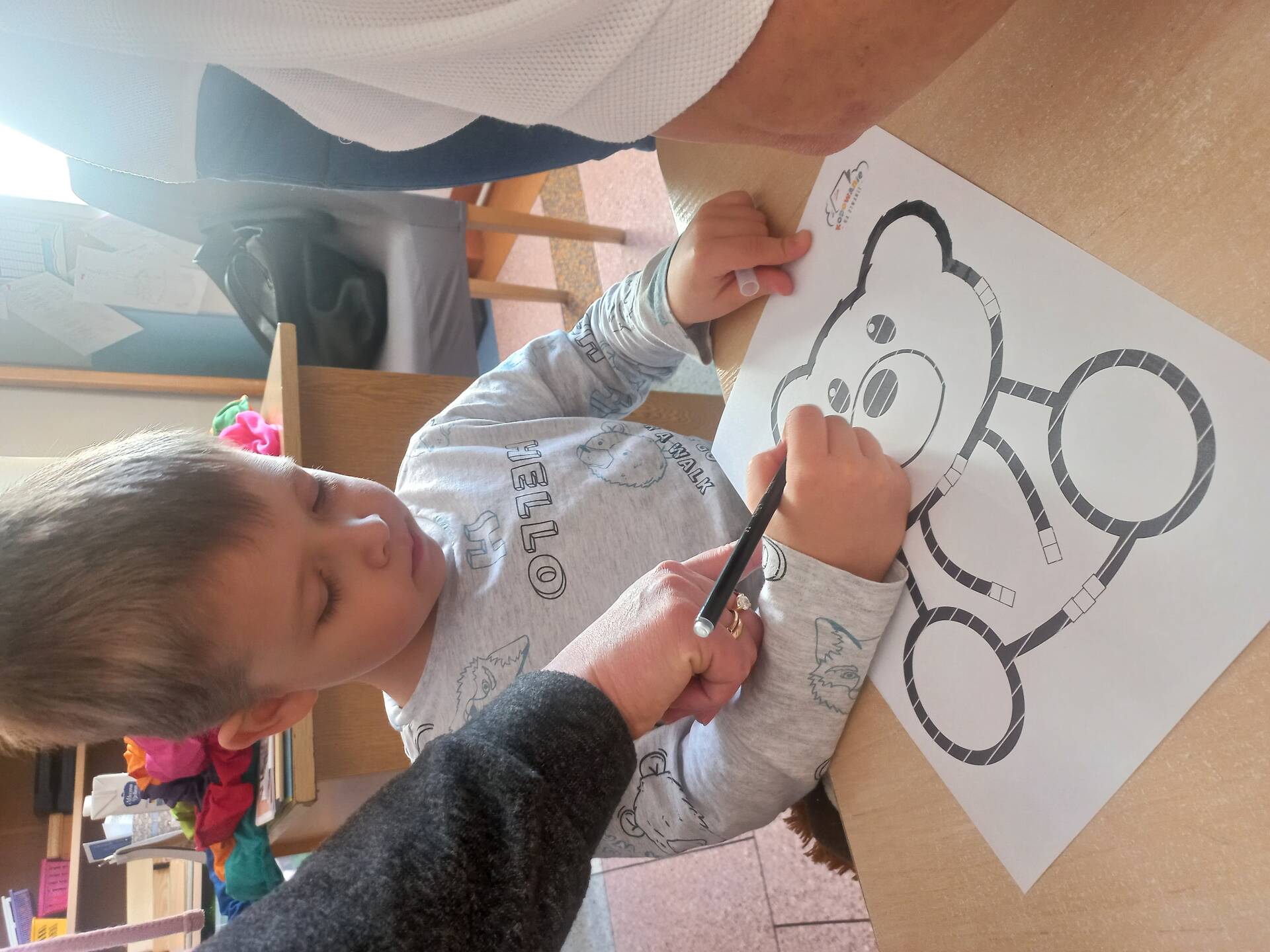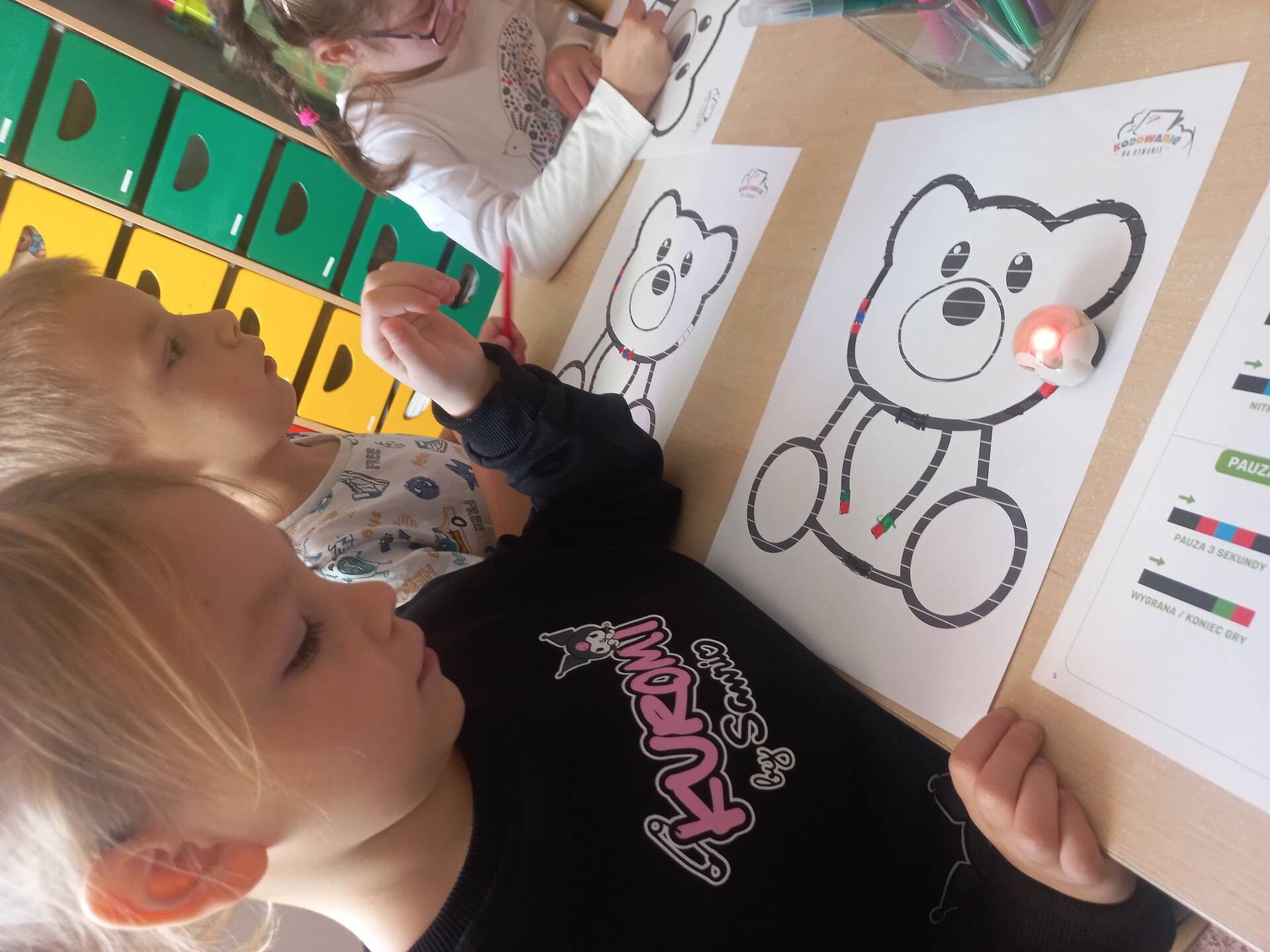 25.11.2024r. w grupie Bratków obchodziliśmy Dzień Pluszowego Misia. Każdy przedszkolak przyniósł swojego ulubionego pluszaka. Obejrzeliśmy film edukacyjny pt. „Historia Pluszowego Misia”. Bardzo wzruszyła nas historia powstania tej zabawki. Wspólnie z misiami ćwiczyliśmy i bawiliśmy się gumą sensoryczną. Pobawiliśmy się również w tradycyjną zabawę „Stary niedźwiedź mocno śpi”. Bardzo podobała nam się zabawa z kodowaniem. Droga w kształcie misia była świetną okazją do nauki kodowania trasy dla robota Ozobota. Świetnie sobie poradziliśmy. Na koniec dnia zrobiliśmy sobie zdjęcie w fotobudce.