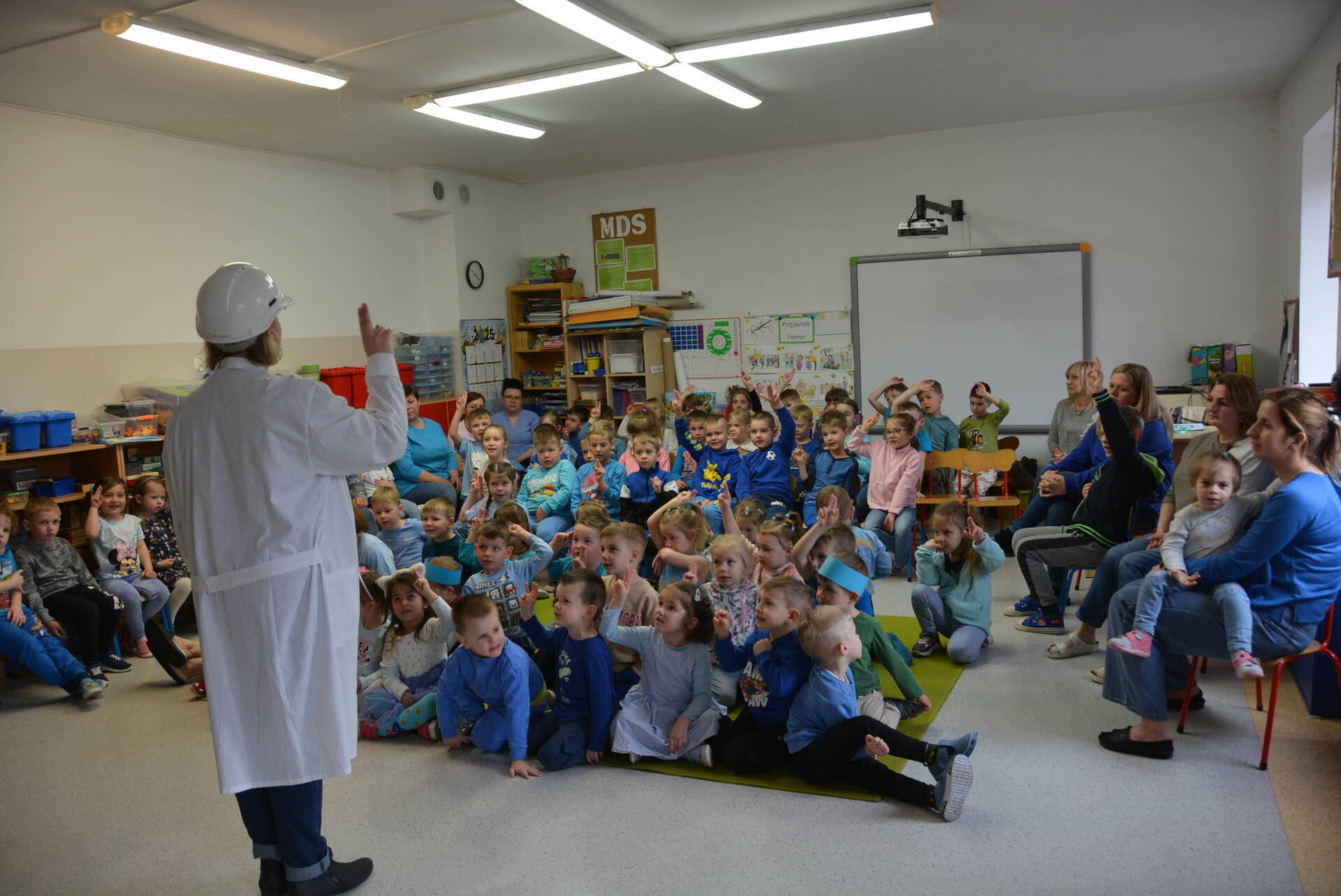 24 marca przedszkolaki spotkały się z panią Agnieszką Kozłowską, kierownik Działu Wodociągowo-Kanalizacyjnego, która opowiedziała dzieciom o zasadach racjonalnego korzystania z zasobów wody oraz o działaniu oczyszczalni ścieków. Wszystkie dzieci złożyły solenną obietnicę, że będą troszczyć się o każdą kropelkę wody i doceniać ten niesamowity dar natury. Dziękujemy, Pani Agnieszko!