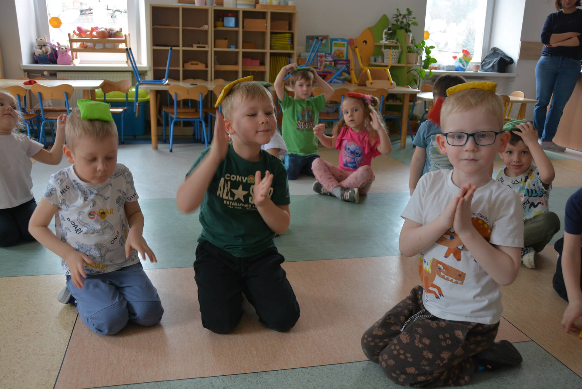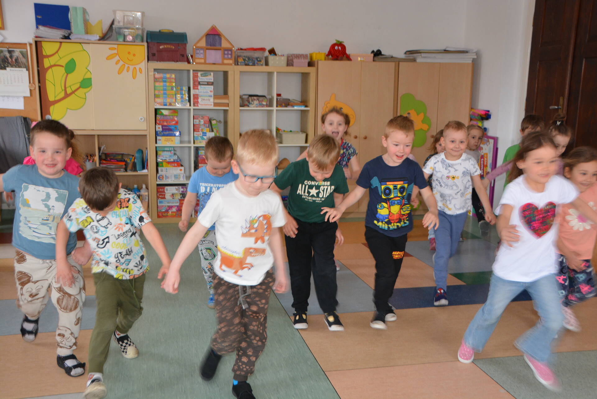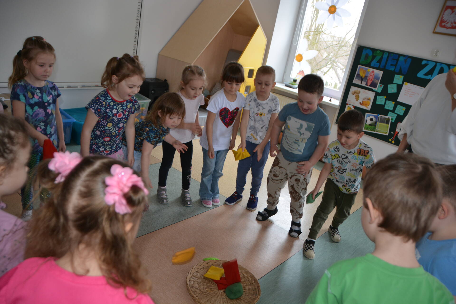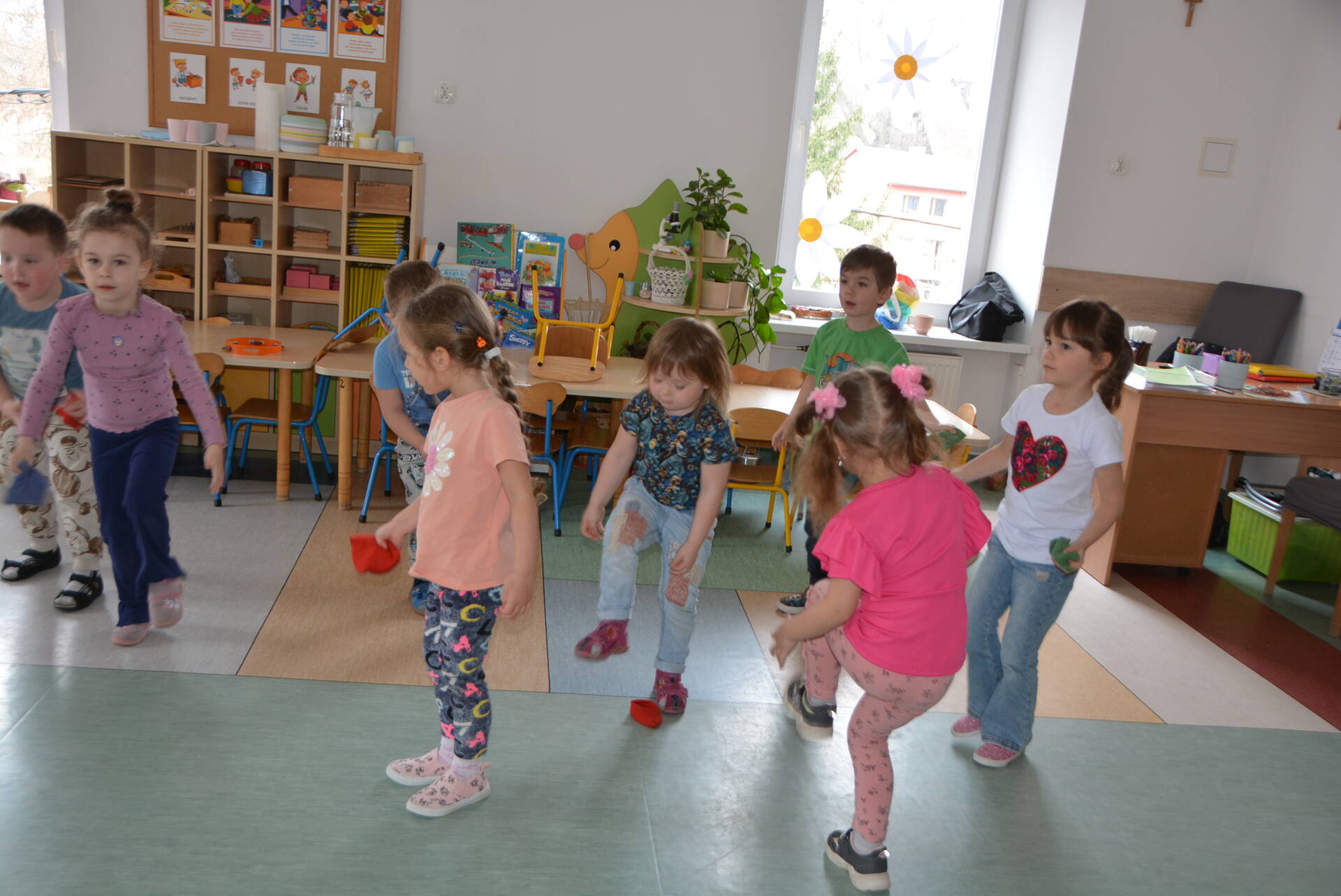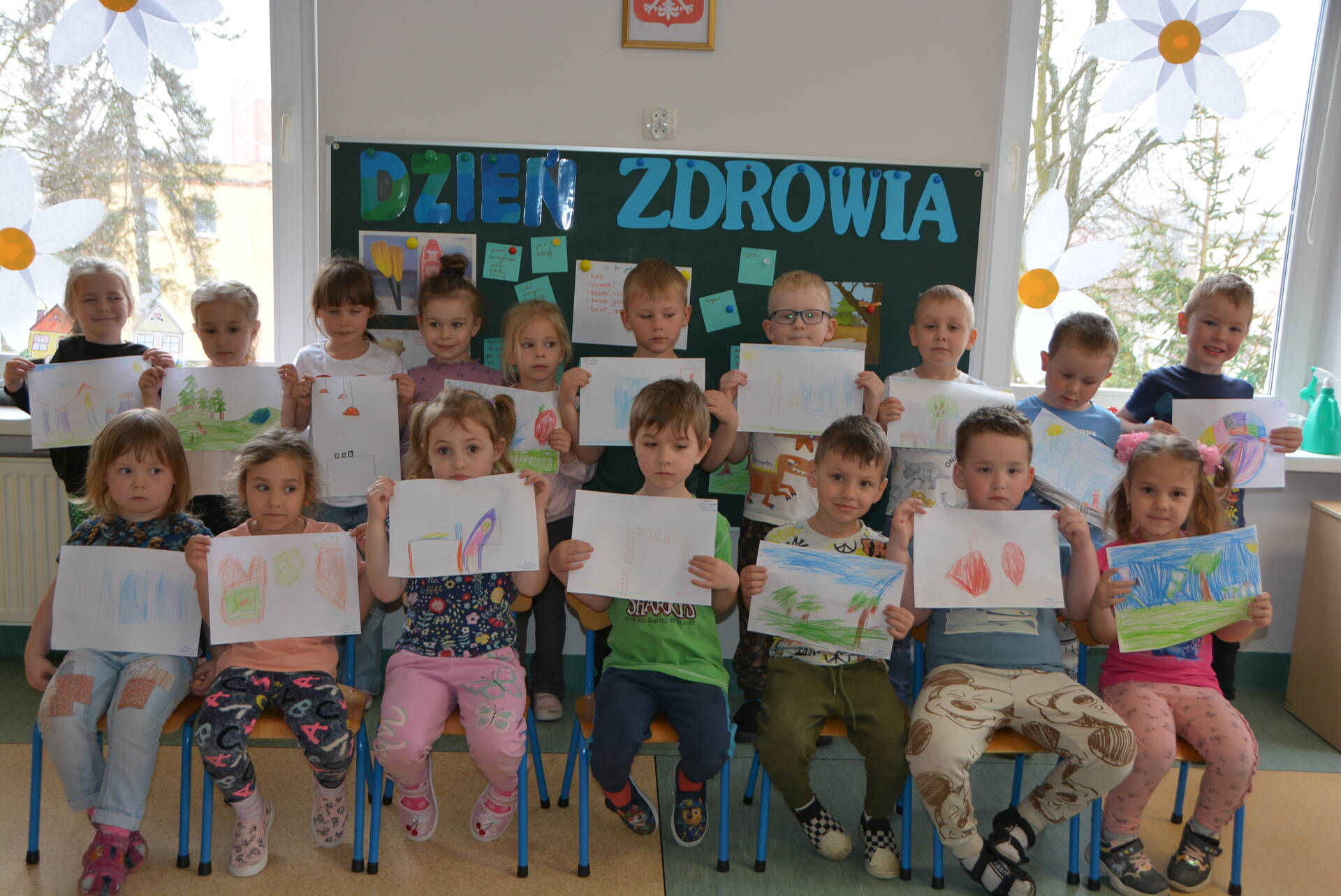 7 kwietnia obchodziliśmy Międzynarodowy Dzień Zdrowia. Stokrotki rozmawiały o tym, czym jest zdrowie i co robić, by je zachować. Rysowały to, co ich zdaniem jest najlepsze dla zdrowia – rysunki przedstawiają między innymi: picie wody, spędzanie czasu na świeżym powietrzu, zdrowe odżywianie, sen. Potem dzieci ćwiczyły z woreczkami.