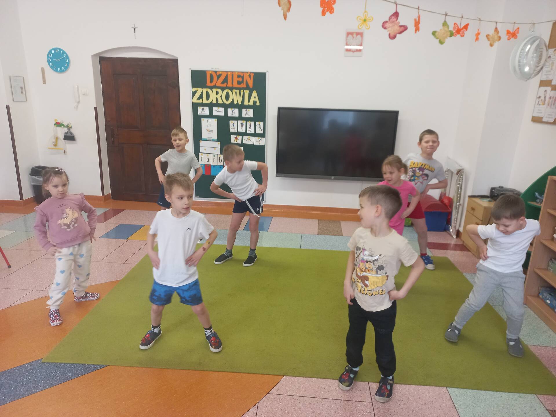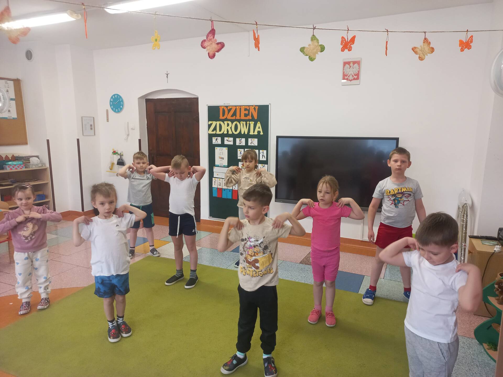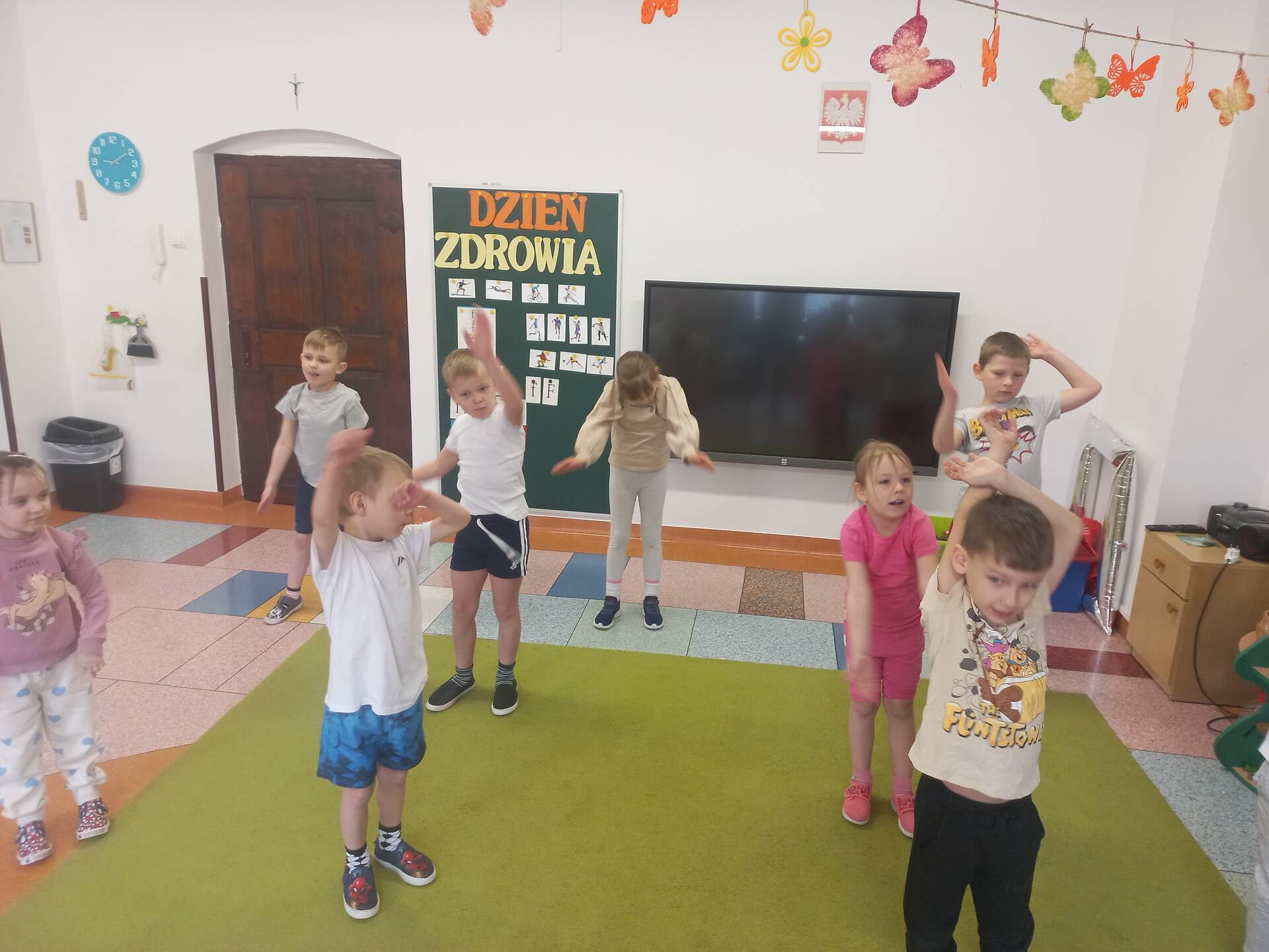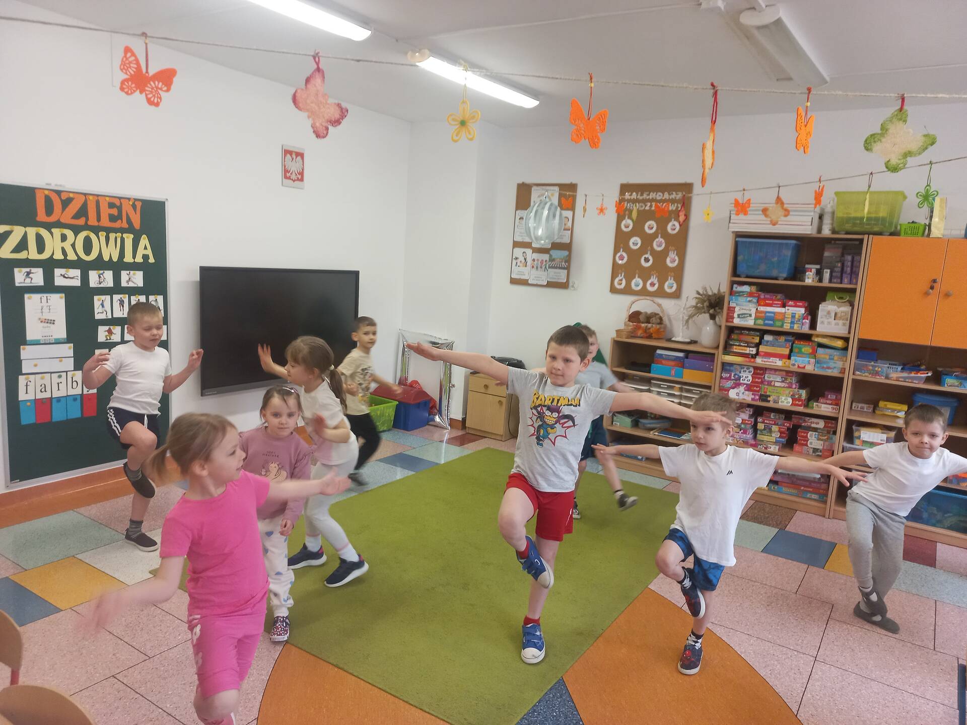 07.04.2025r. obchodzimy Światowy Dzień Zdrowia, który ma na celu promowanie i propagowanie zdrowego stylu życia. Dzieci z grupy Bratki wzięły udział w zabawach sportowych. Na koniec wspólnie z Bławatkami ćwiczyliśmy przy muzyce. Bardzo podobały nam się zajęcia zumby.