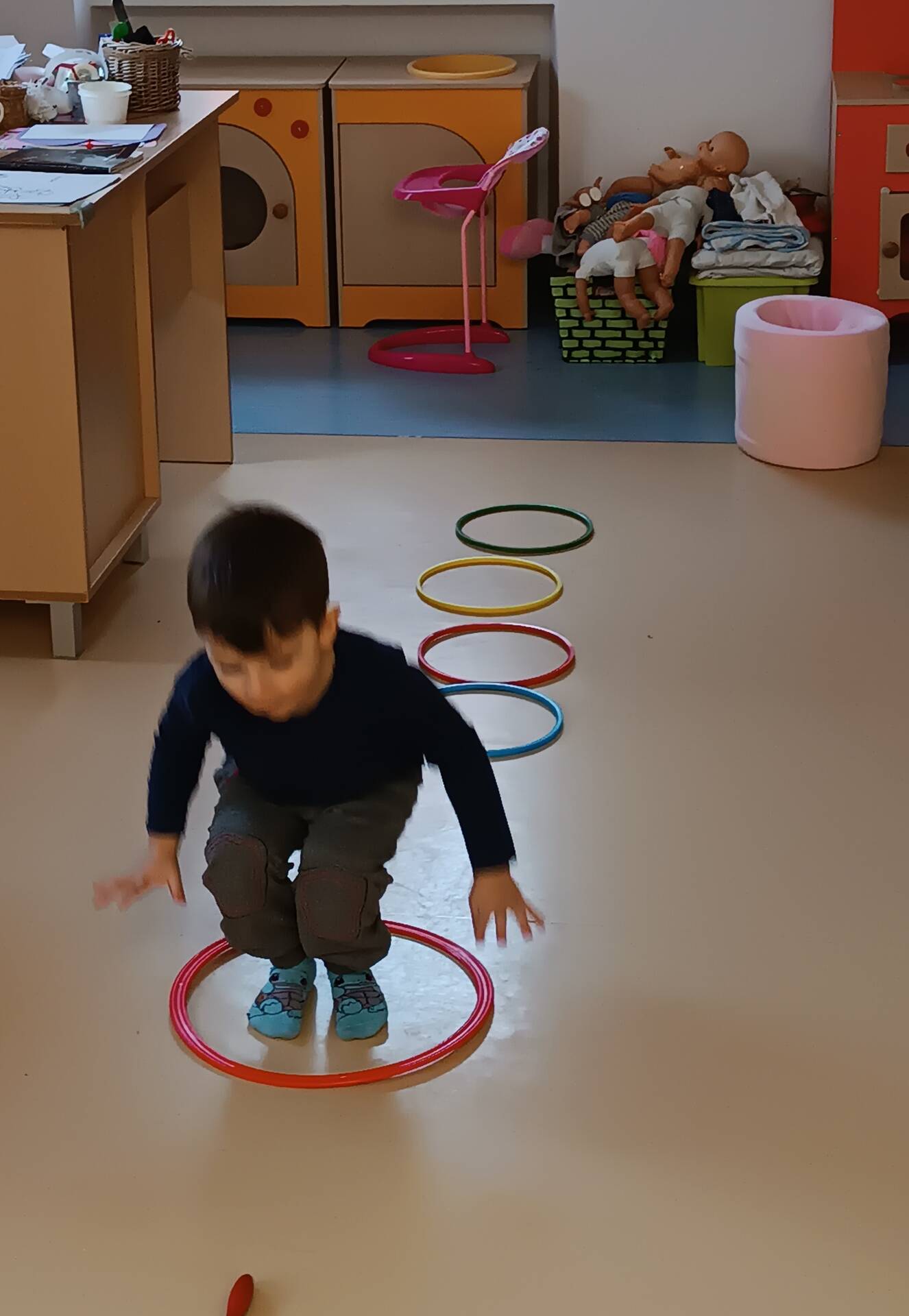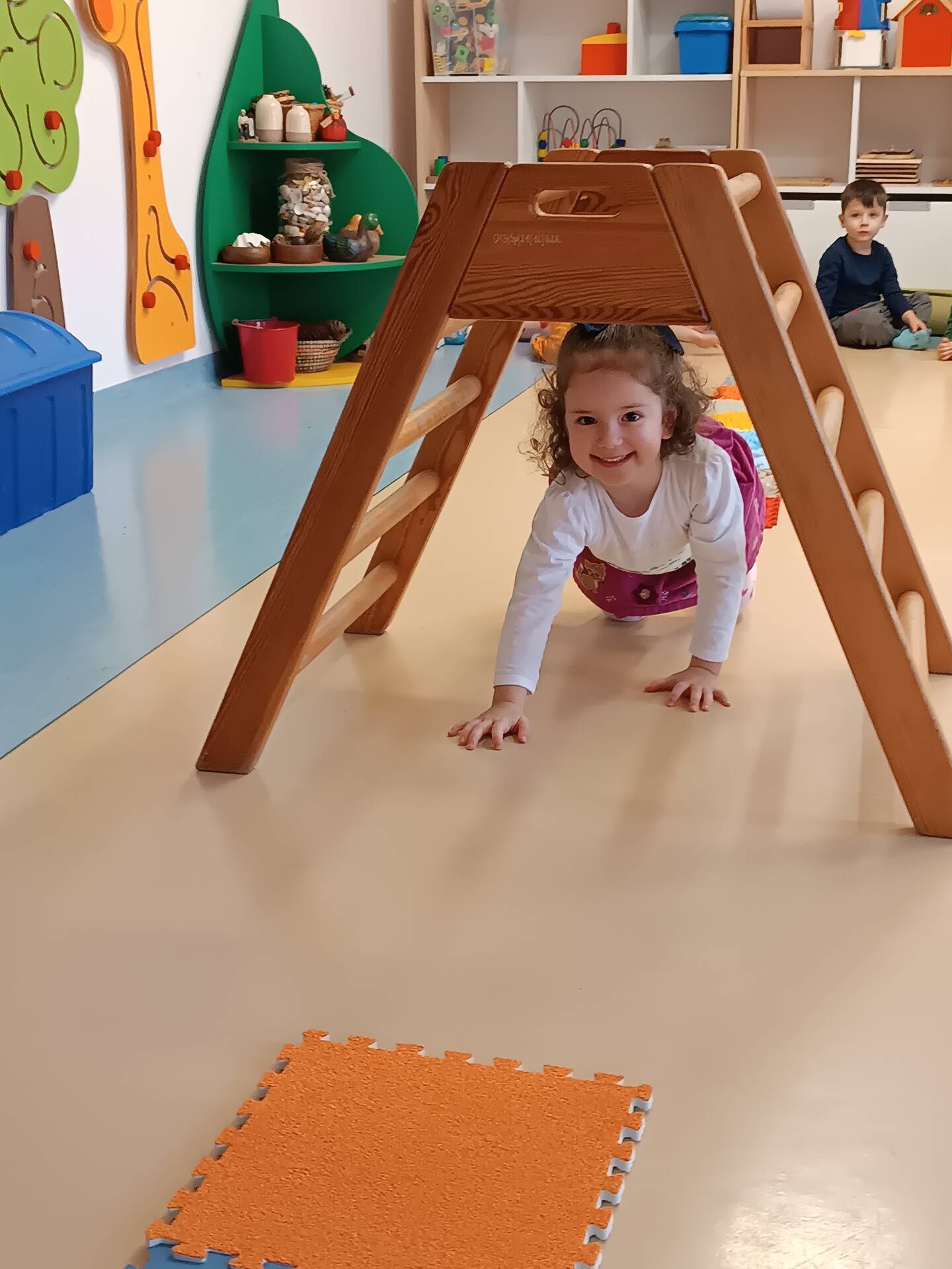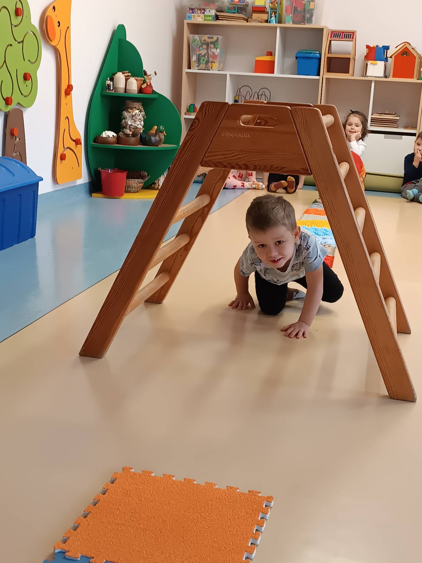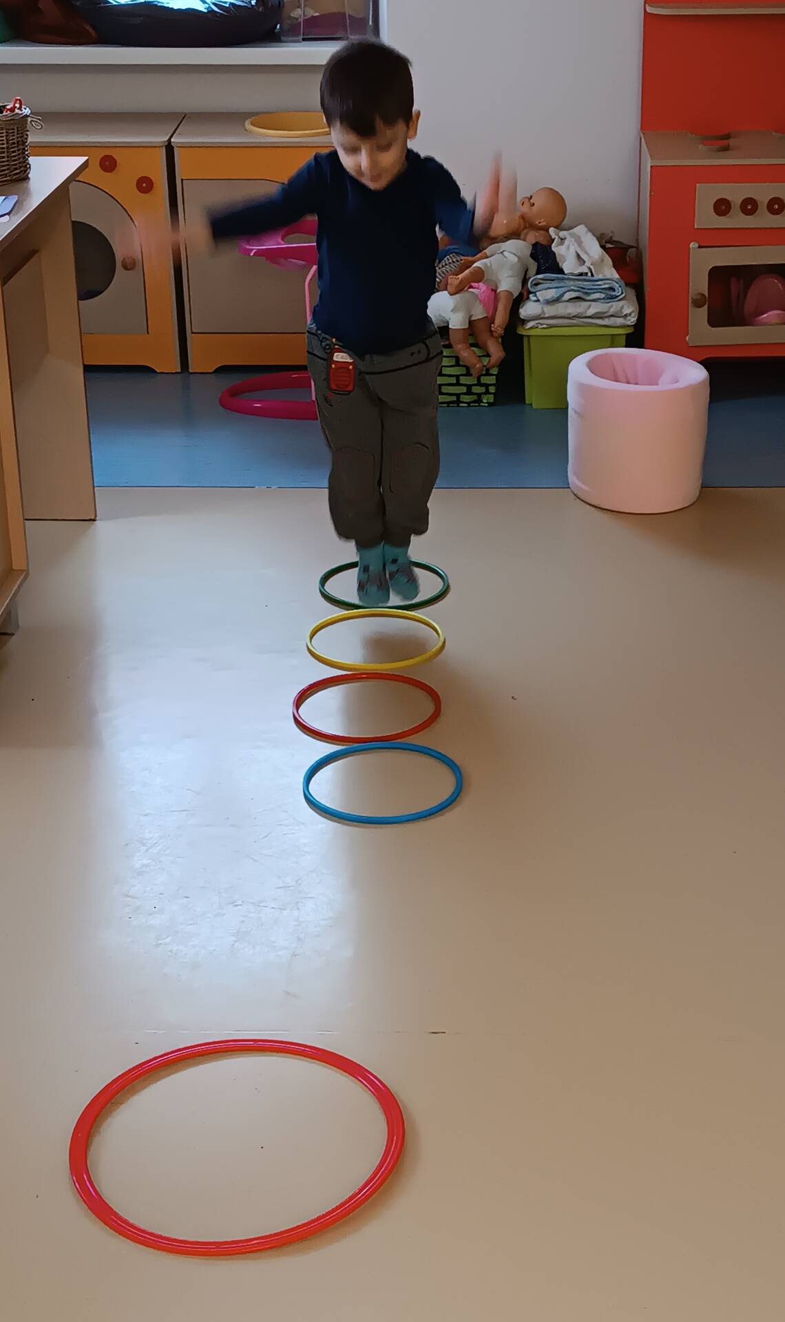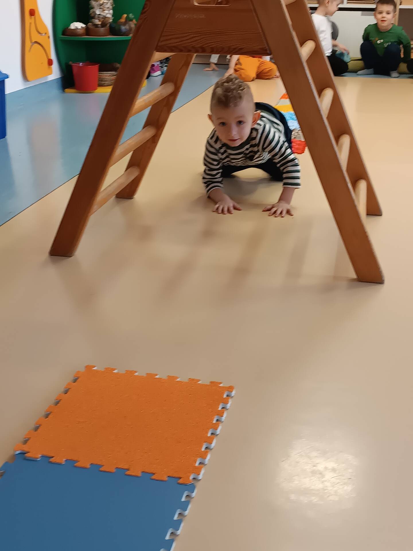 Pierwszy dzień ferii dzieci z gr. Fiołków rozpoczęły bardzo aktywnie biorąc udział w przygotowanym torze przeszkód z użyciem Bukinów sensolyke oraz ścieżek sensorycznych. Rozwijały motorykę dużą oraz korordynację wzrokowo – ruchową.