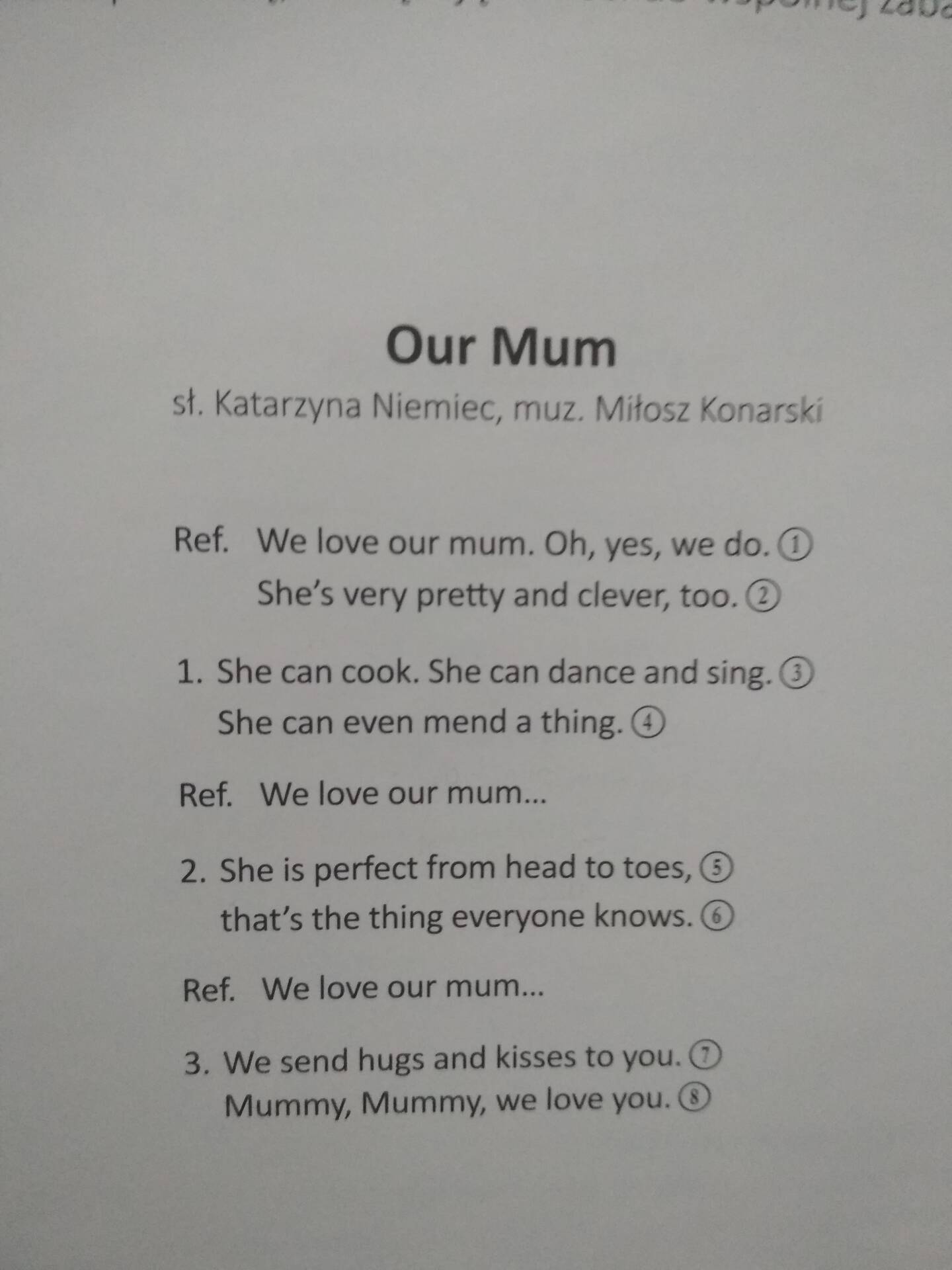 Piosenka i słowa piosenki „We love our mum”.
