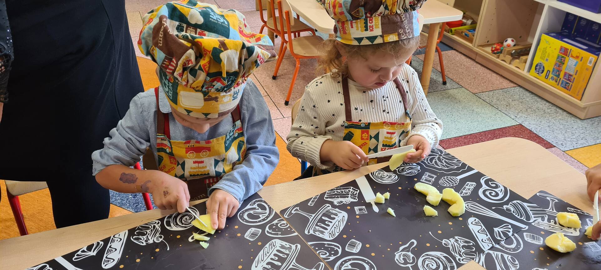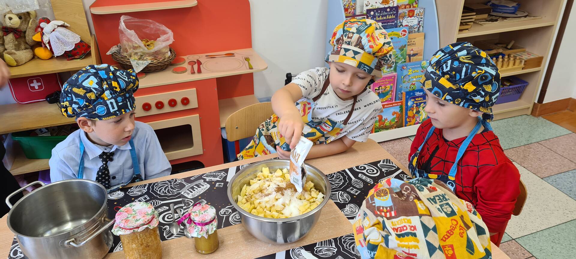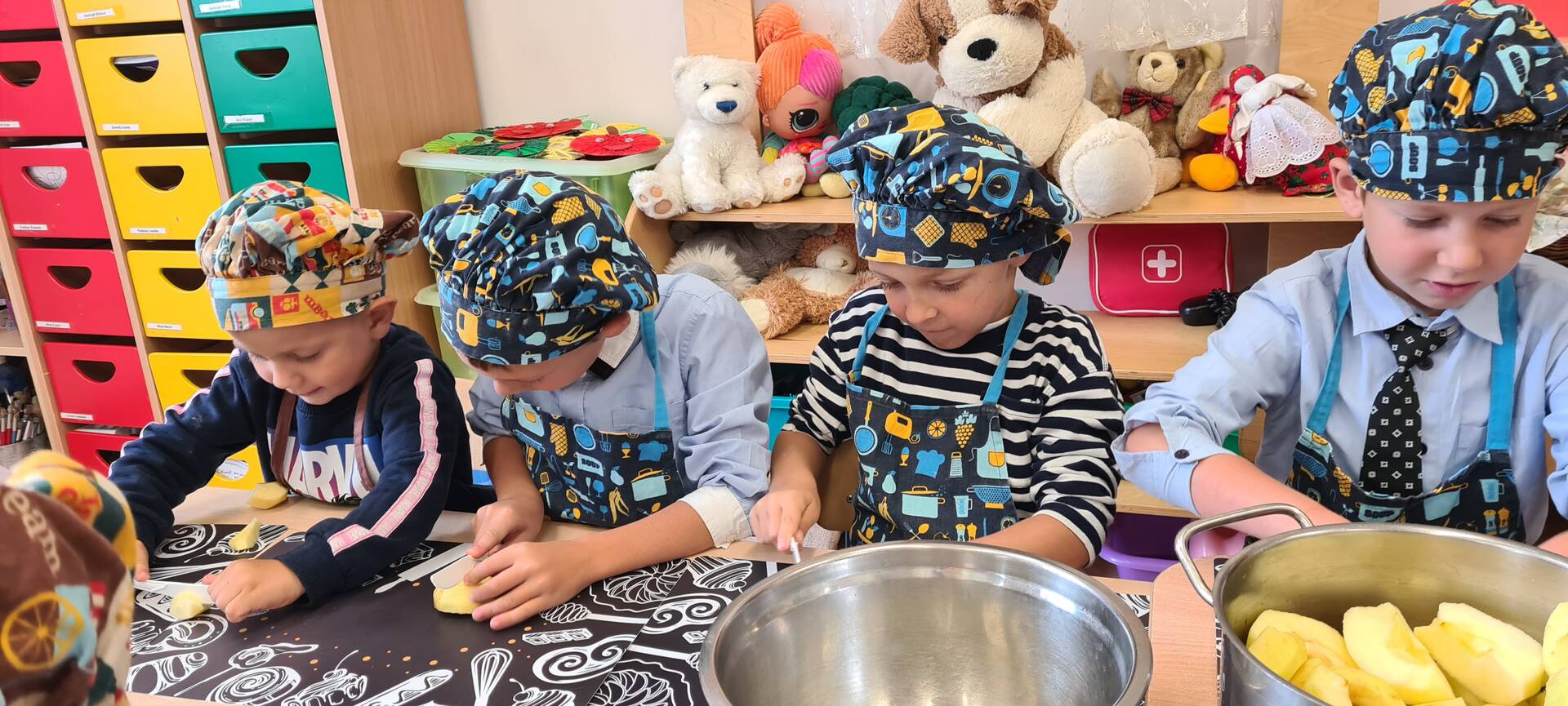 Dzień jabłka w grupie Bratków wypełniony jabłkami po brzegi – krojenie, siekanie, smakowanie, a nawet tworzenie drzew jabłoni – to wszystko sprawia, że dzieci na pewno zapamiętają stare przysłowie: ” jedno jabłko dziennie trzyma z dala doktora ode mnie”. Smacznego i dużo zdrowia!