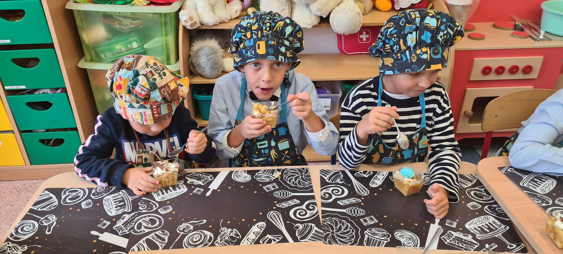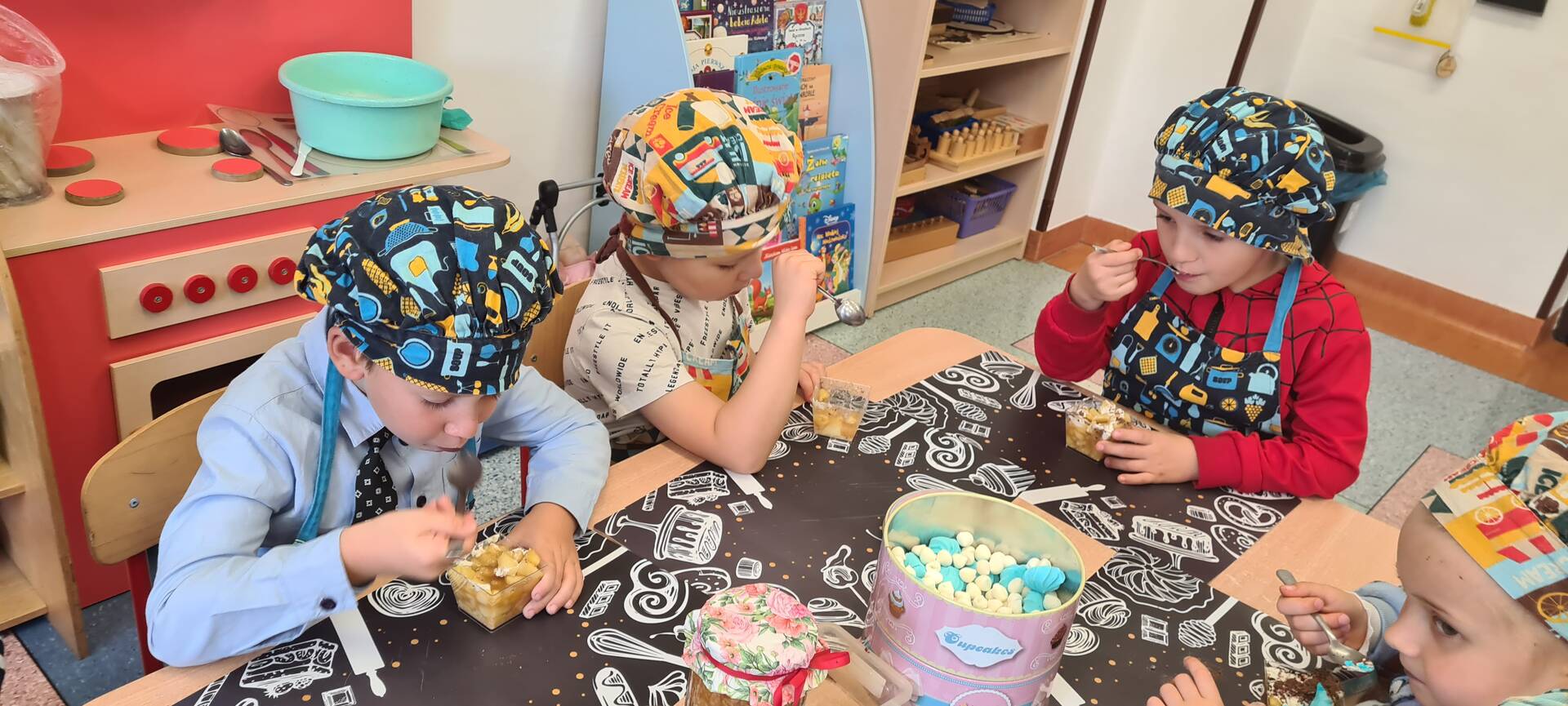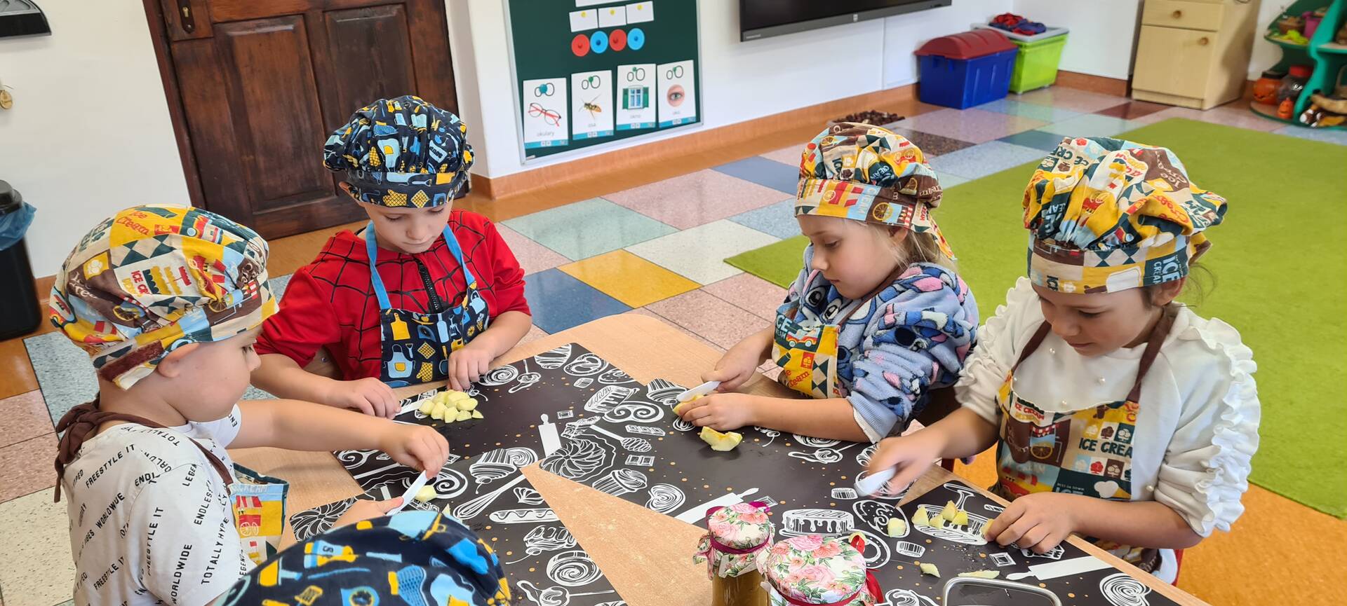 Dzień jabłka w grupie Bratków wypełniony jabłkami po brzegi – krojenie, siekanie, smakowanie, a nawet tworzenie drzew jabłoni – to wszystko sprawia, że dzieci na pewno zapamiętają stare przysłowie: ” jedno jabłko dziennie trzyma z dala doktora ode mnie”. Smacznego i dużo zdrowia!