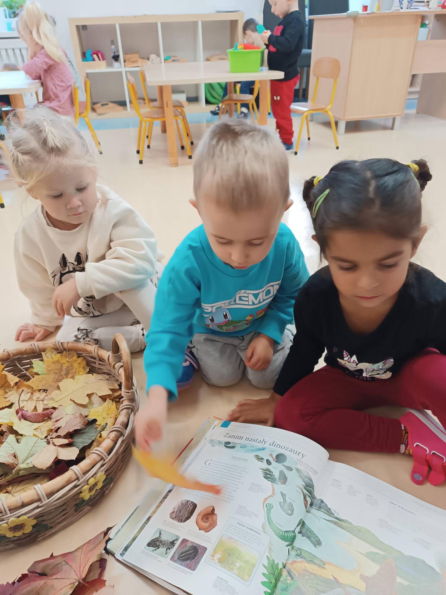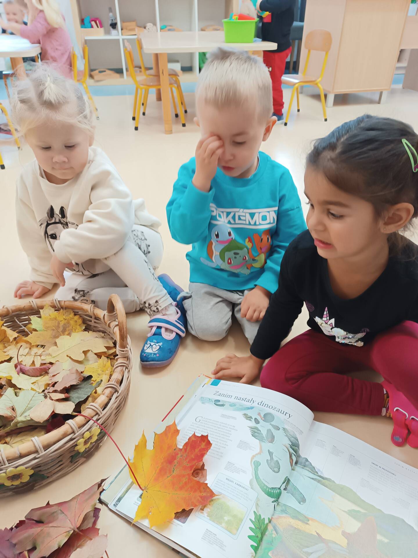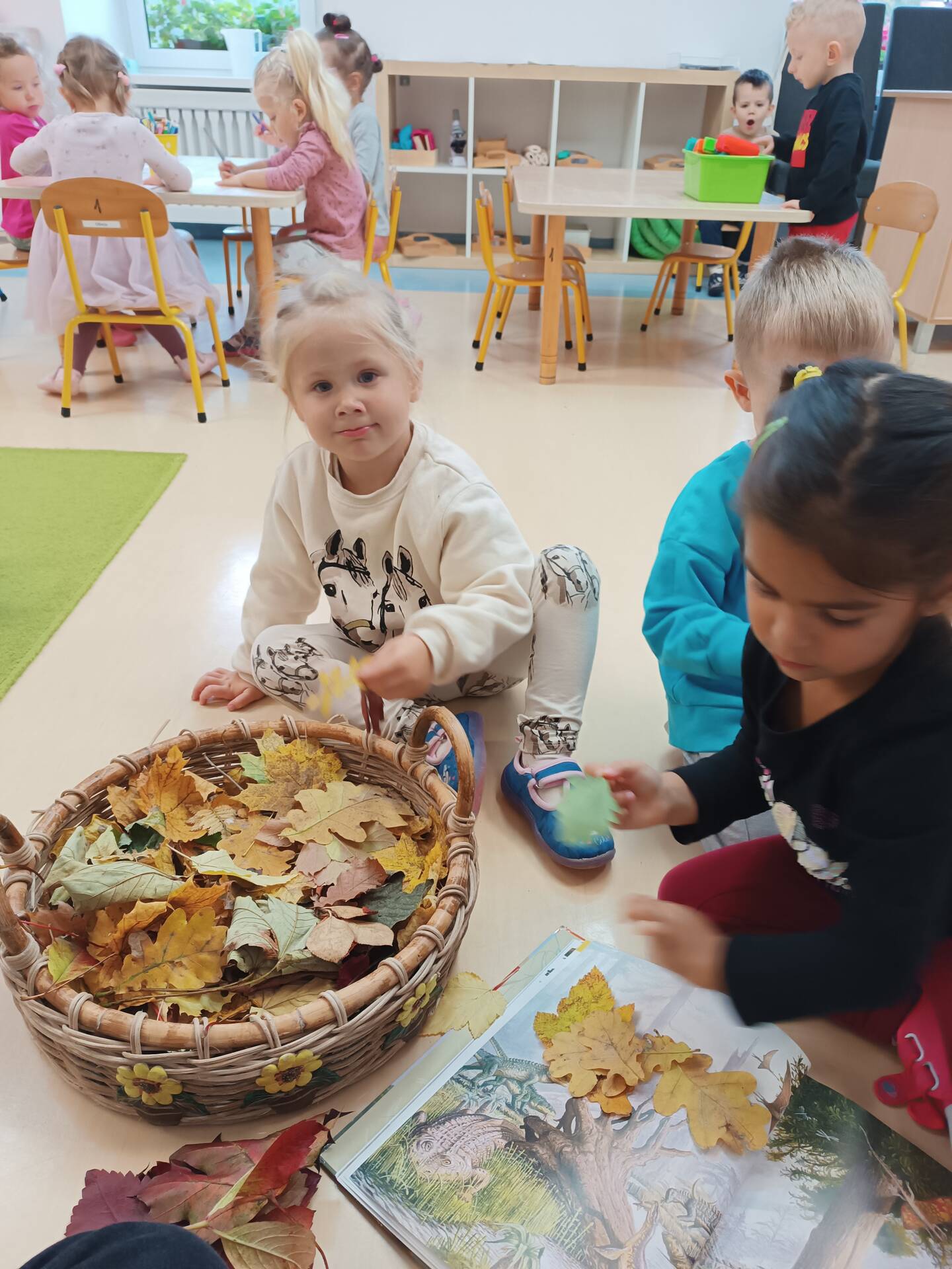 Dzięki uprzejmości  rodziców mogliśmy stworzyć w naszej sali piękny kącik jesienny. Sporo liści zasuszyliśmy w książkach, a z pozostałych darów jesieni niebawem zrobimy las w słoiku.