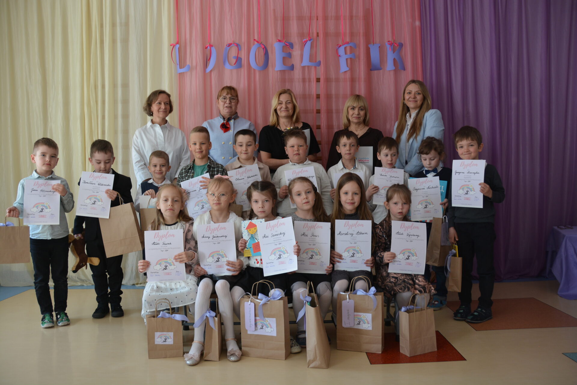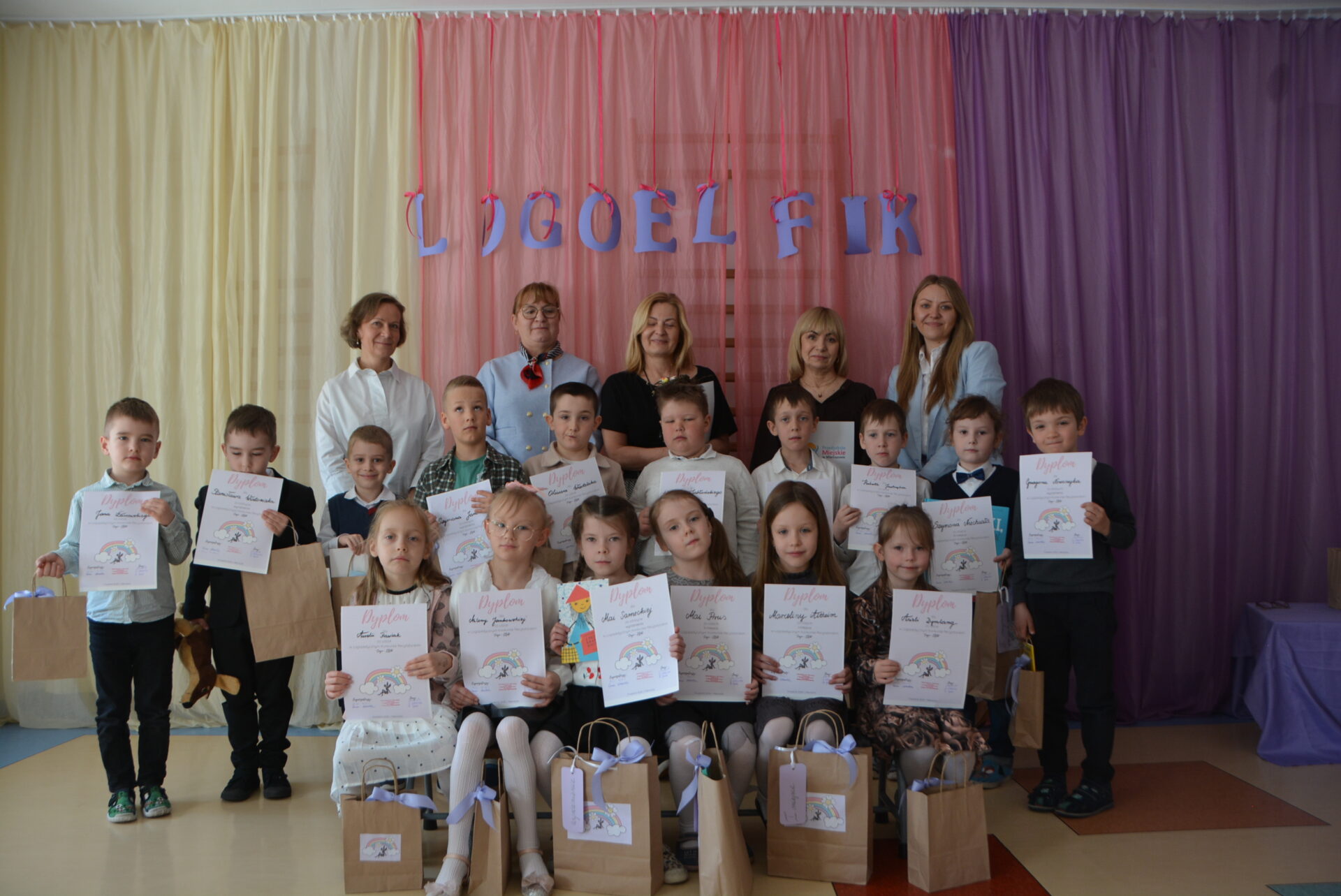 9 kwietnia odbył się Logopedyczny Konkurs Recytatorski LOGO-ELFIK.  Wzięły w nim udział dzieci uczęszczające w tym roku szkolnym na zajęcia logopedyczne w przedszkolu. W jury zasiadły: Grażyna Lektarska, Iwona Schienke i Małgorzata Jasiak. Występ w konkursie to szansa na przezwyciężenie nieśmiałości, oswojenie się z wystąpieniami przed publicznością w bezpiecznej i życzliwej atmosferze, i na prezentację swojej pracy nad wymową. Nasi uczestnicy wykazali się odwagą i wystąpili naprawdę znakomicie. Serdecznie gratulujemy recytatorom i dziękujemy rodzicom za przygotowanie dzieci i inwencję w dobraniu rekwizytów  i ubiorów do wierszy.