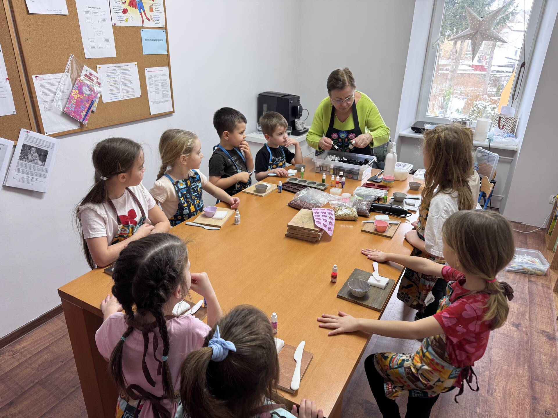Na styczniowych warsztatach gościliśmy babcię Jasia- panią Anię. Pani Ania wprowadziła nas w pachnący i kolorowy świat mydełek. Każde dziecko wykonało wyjątkowe mydełko, które podaruje swoim ukochanym Dziadkom z okazji ich święta – Dnia Babci i Dziadka.