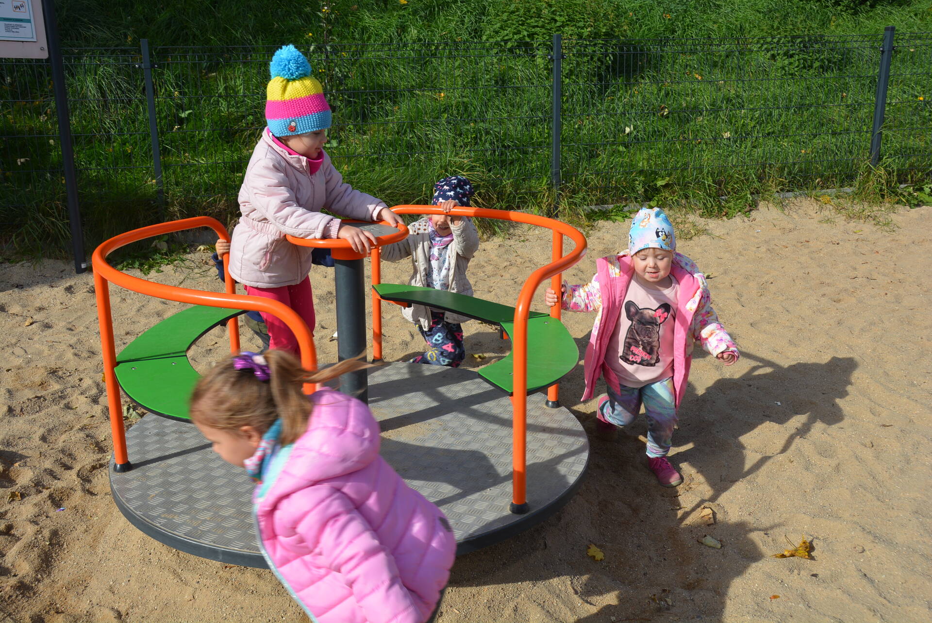 Stokrotki uwielbiają ciepłe, jesienne dni, kiedy można pójść na spacer i pohasać na placu zabaw.