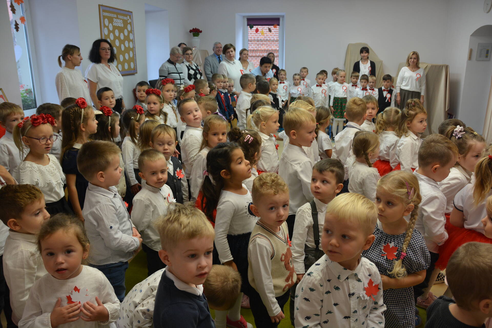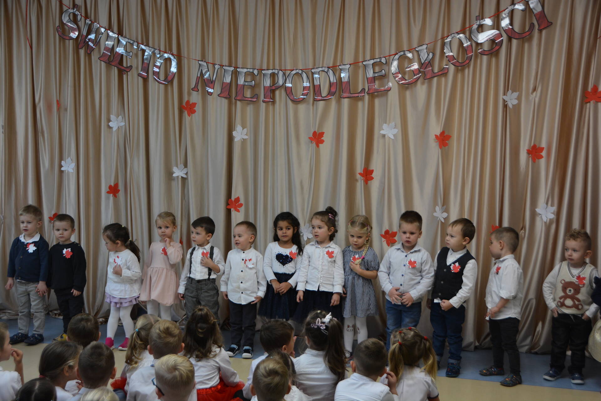 8 listopada 2024r. cała społeczność Przedszkola Miejskiego w Mieroszowie spotkała się, by wziąć udział w Poranku Patriotycznym. Najbardziej podniosłą chwilą było odśpiewanie hymnu narodowego. Następnie zaproszeni goście – przedstawiciele władzy samorządowej i Klubu Seniorów – z radością i wzruszeniem oglądali występy dzieci: recytację wierszy i śpiewanie piosenek o treści patriotycznej. Dziękujemy za wspólne świętowanie. Dzięki takim uroczystościom nasze przedszkolaki z pewnością staną się kiedyś świadomymi obywatelami i patriotami.
