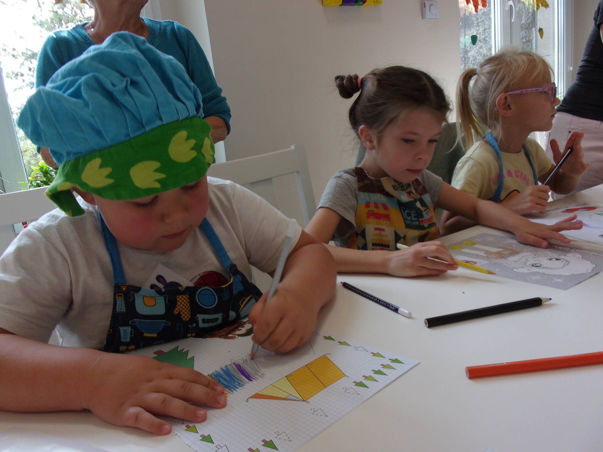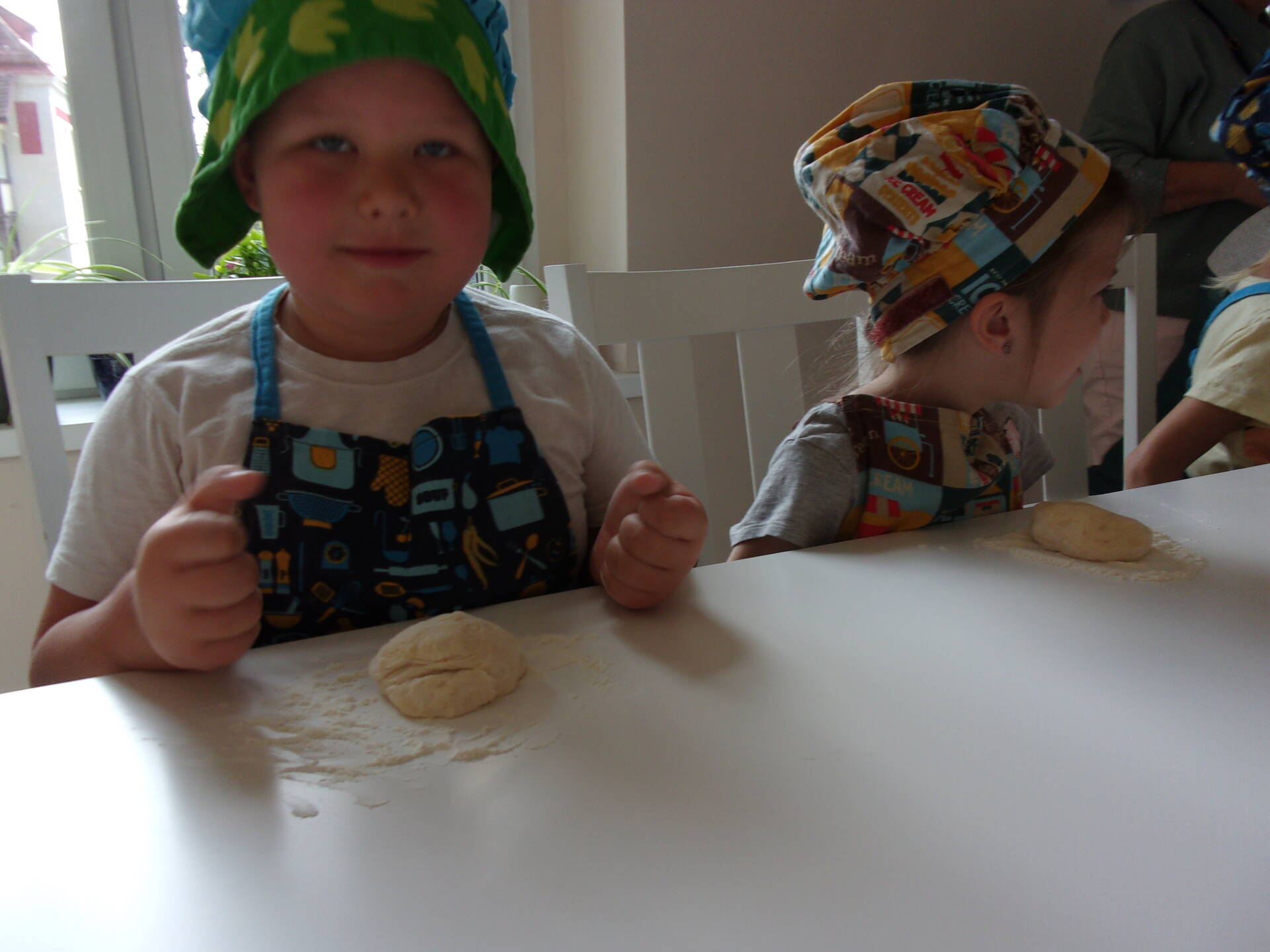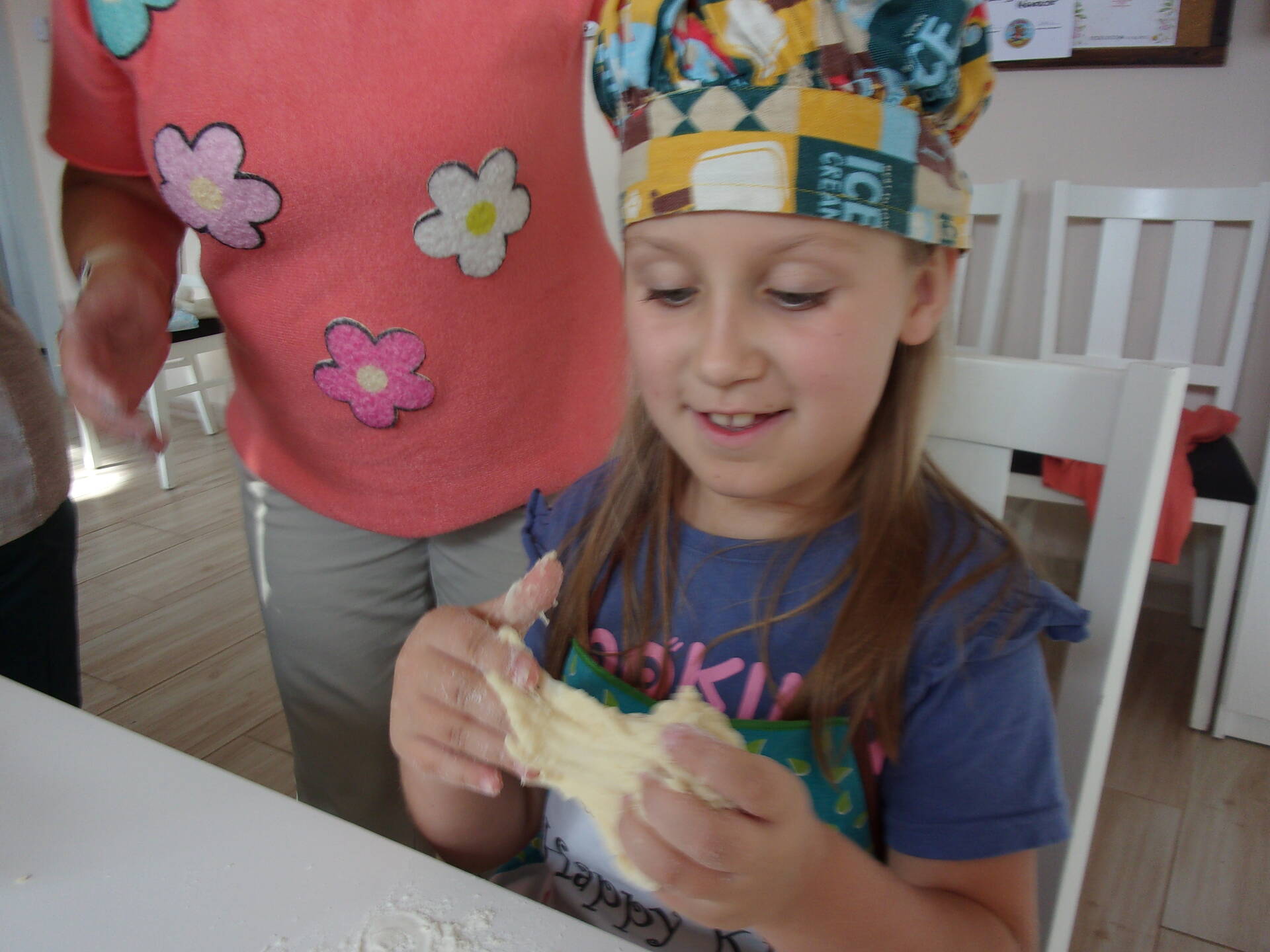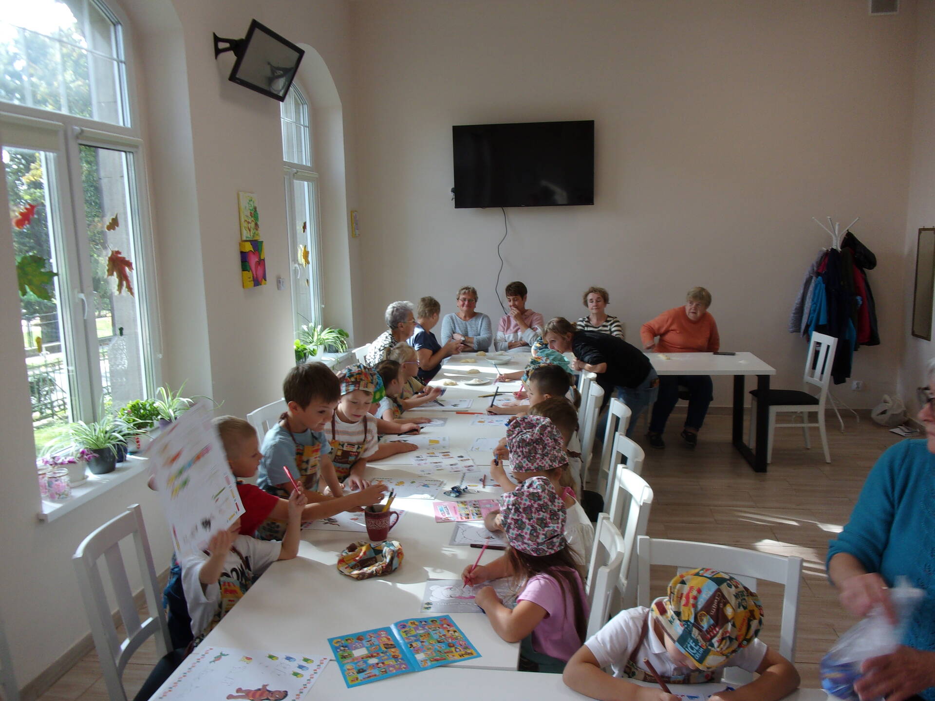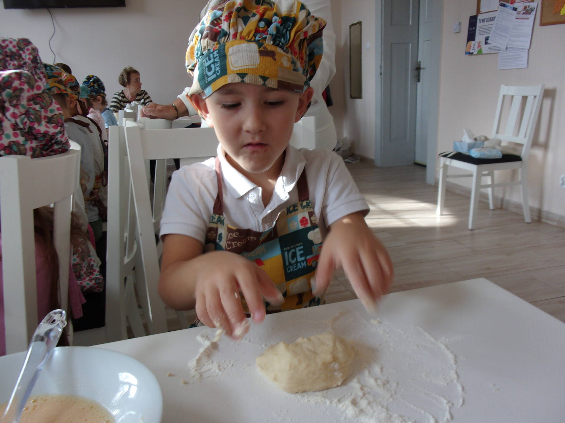 24.09.2025 Gr. V „Niezapominajki” uczestniczyła w warsztatach kulinarnych zorganizowanych przez Stowarzyszenie „Z Seniorami Łatwiej”. Dzieci pod nadzorem doświadczonego piekarza, pana Mikołaja Wiatrowa, wspólnie z seniorami upiekły pyszne drożdżowe bułeczki. Gdy bułki piekły się w piekarniku, Niezapominajki śpiewały seniorom piosenki o jesieni oraz kolorowały obrazki. Na koniec jeszcze wspólne zdjęcie – z pachnącymi wypiekami!