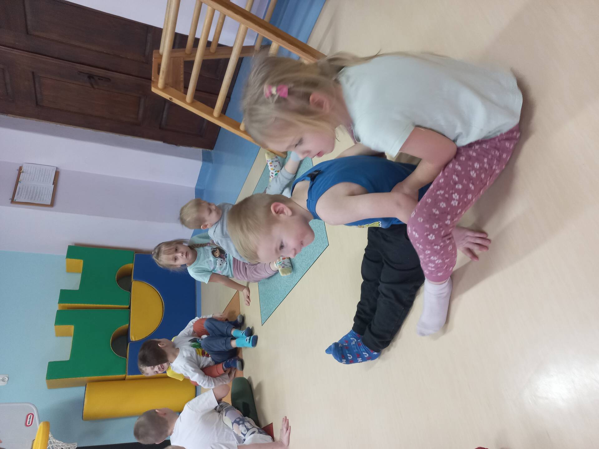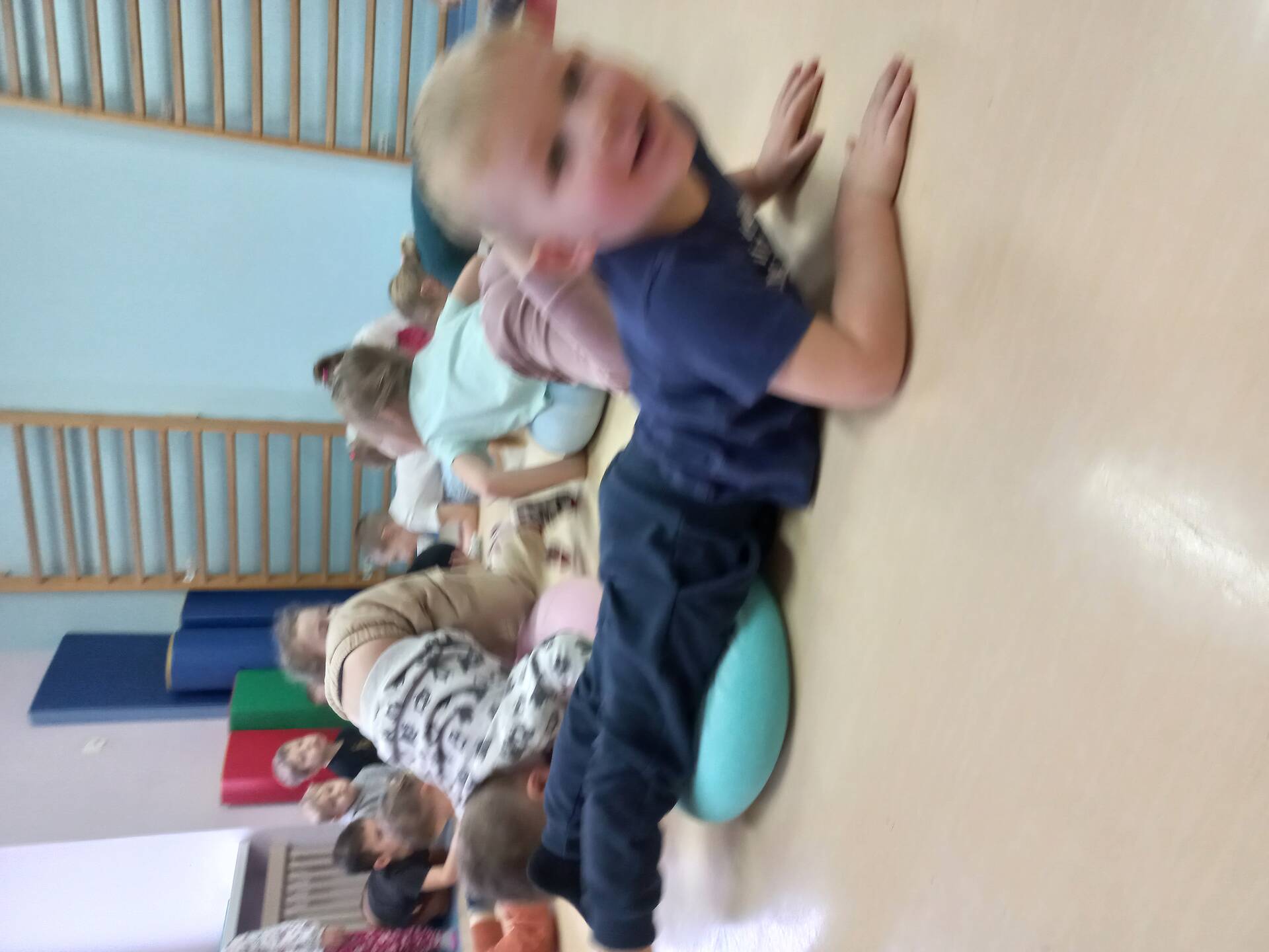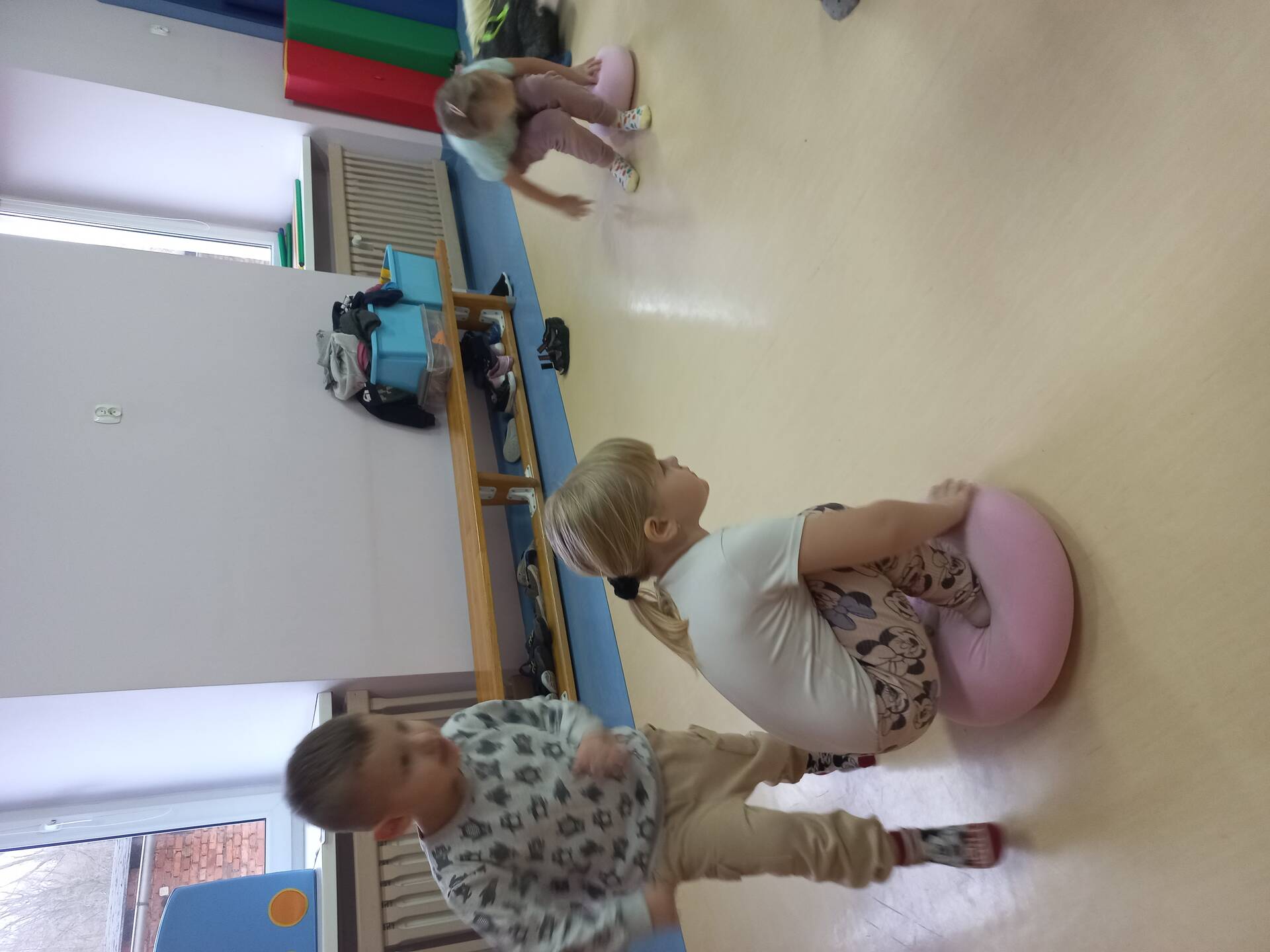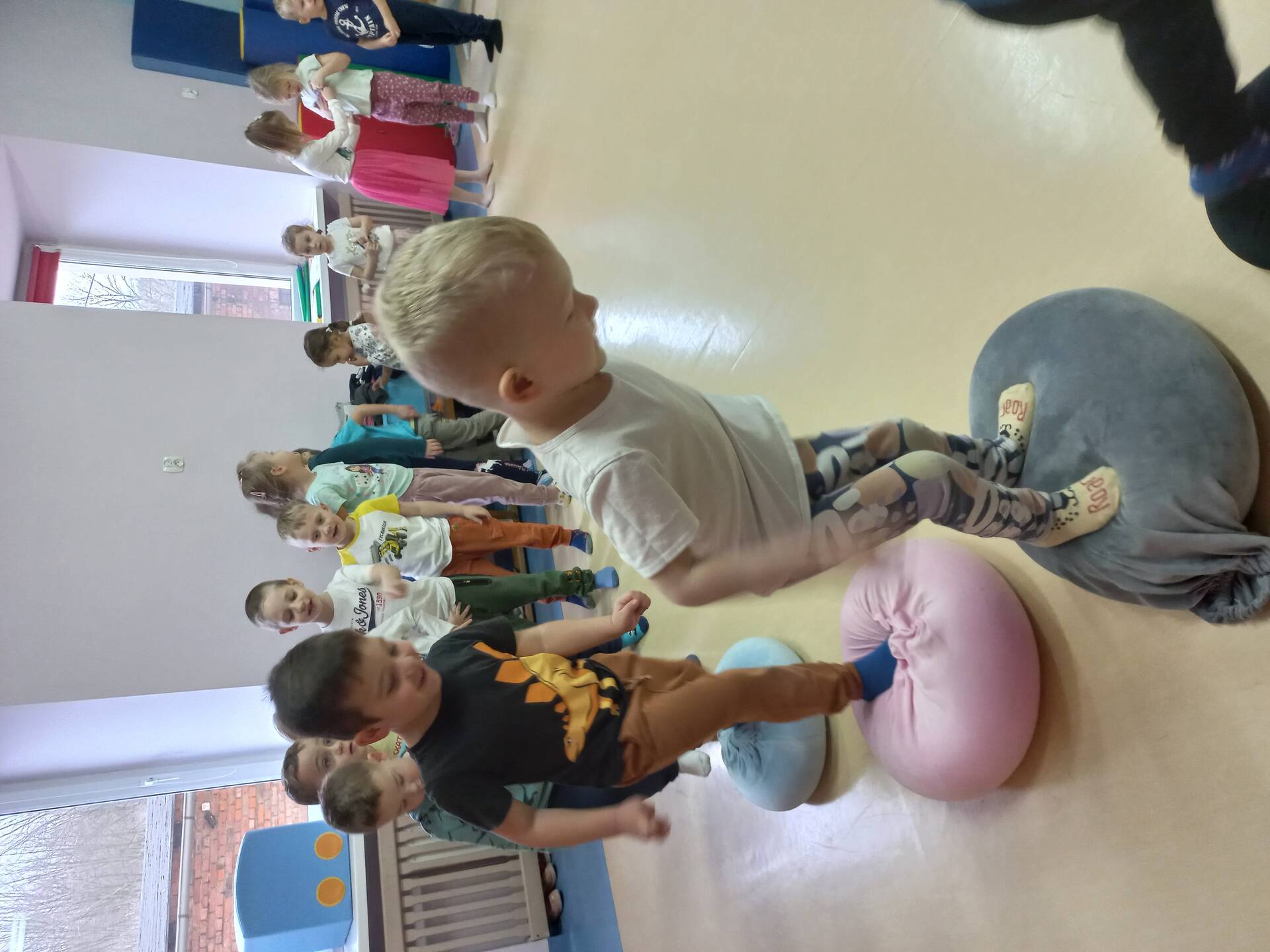 25.01.2024r. Bratki I Fiołki wspólnie bawiły się w zabawy ruchowe z wykorzystaniem kul Sensolyke. Zajęcia zaczęły się od budowania wzajemnych relacji -najlepszą metodą jest Metoda Ruchu Rozwijającego W. Sherborne. Dzieci dobrały się w pary -maluszek ze starszakiem i wspólnie wykonywały ćwiczenia. Takie zabawy są okazją do budowania wzajemnego zaufania i oraz uczą współpracy. Następnie dzieci bawiły się kulami Sensolyke. Wszystkie zabawy mają pozytywny wpływ na integrację sensoryczną. Dzieci toczyły, ugniatały i przeskakiwały. To był bardzo miło spędzony czas.