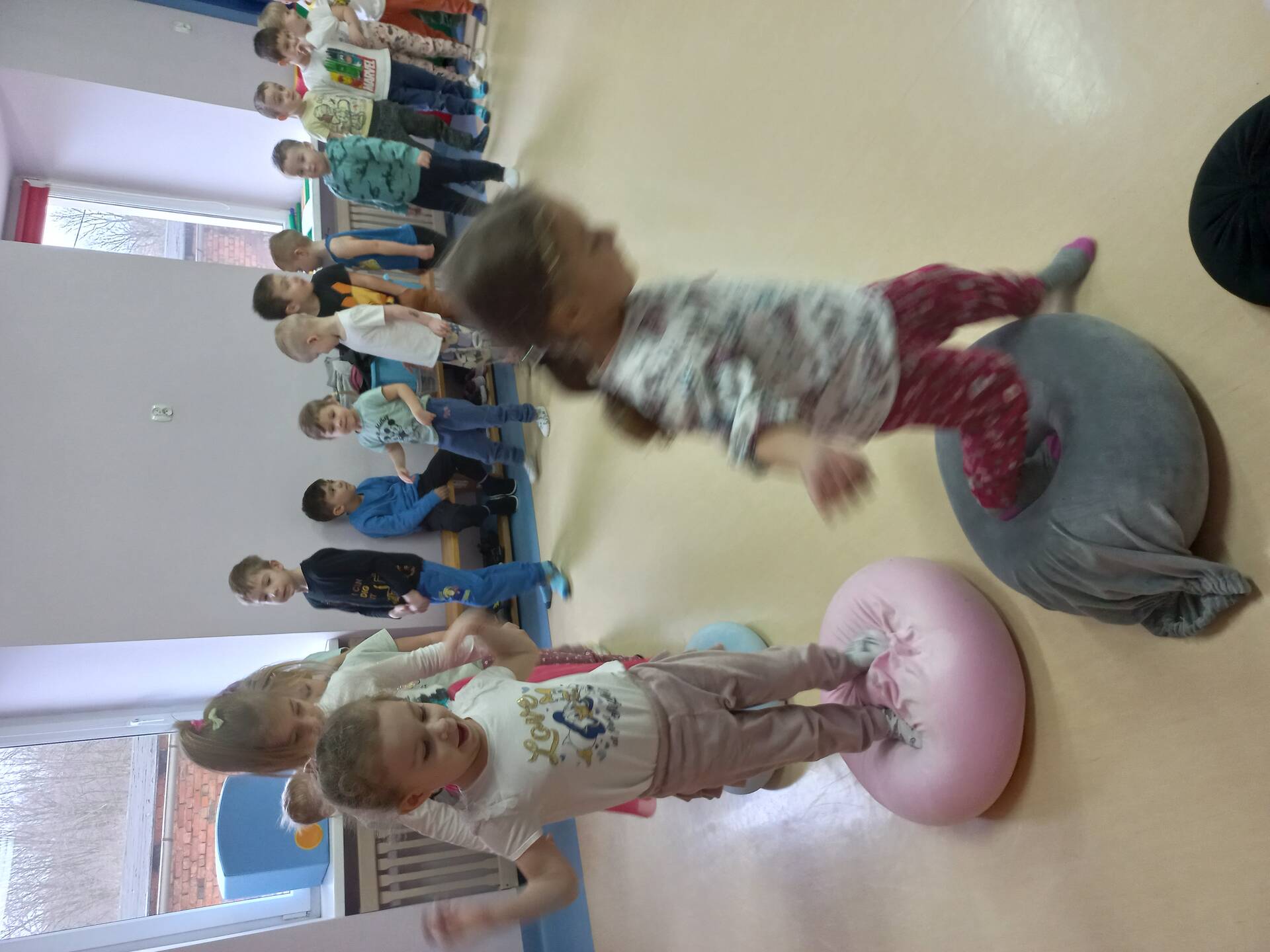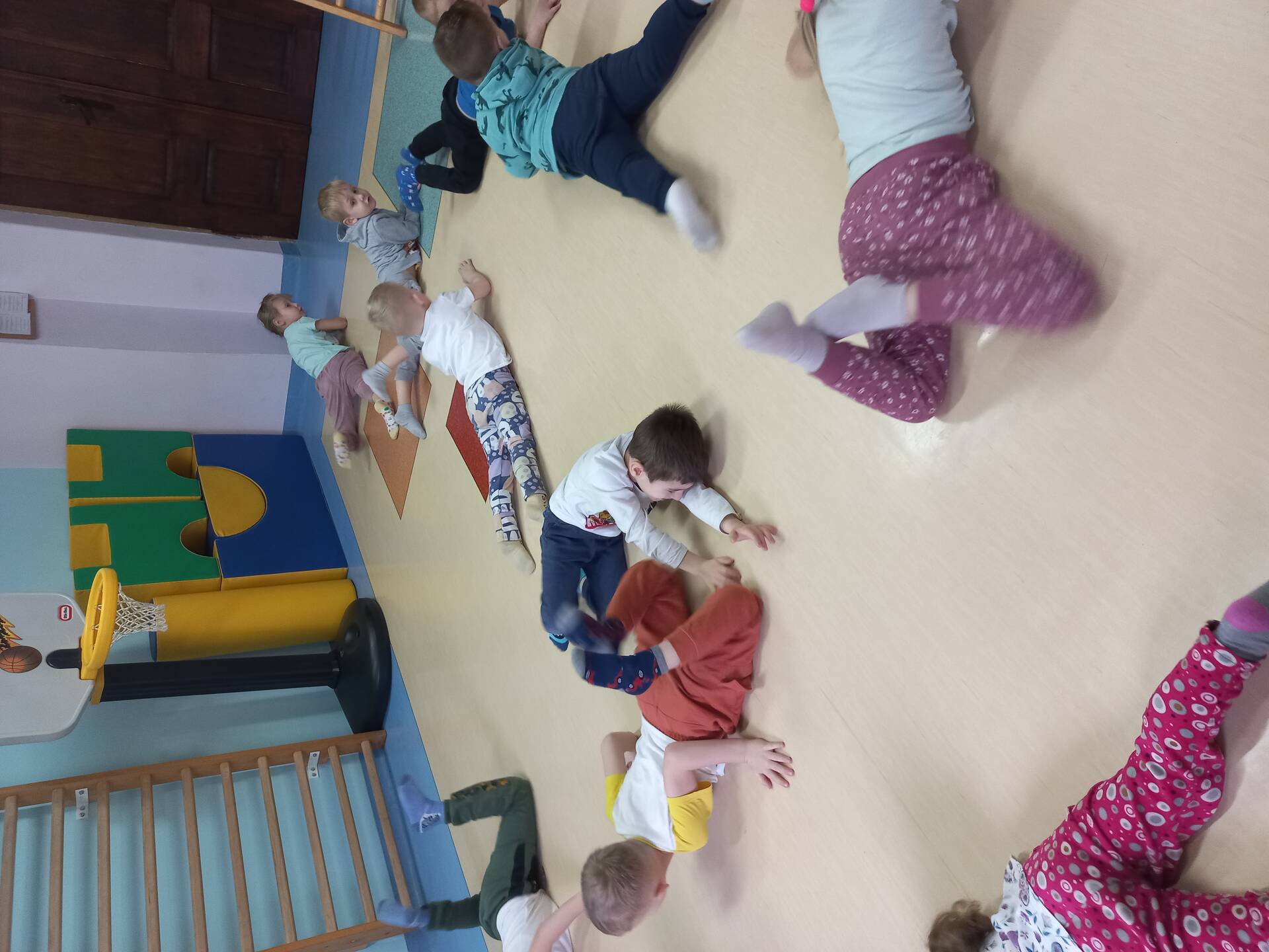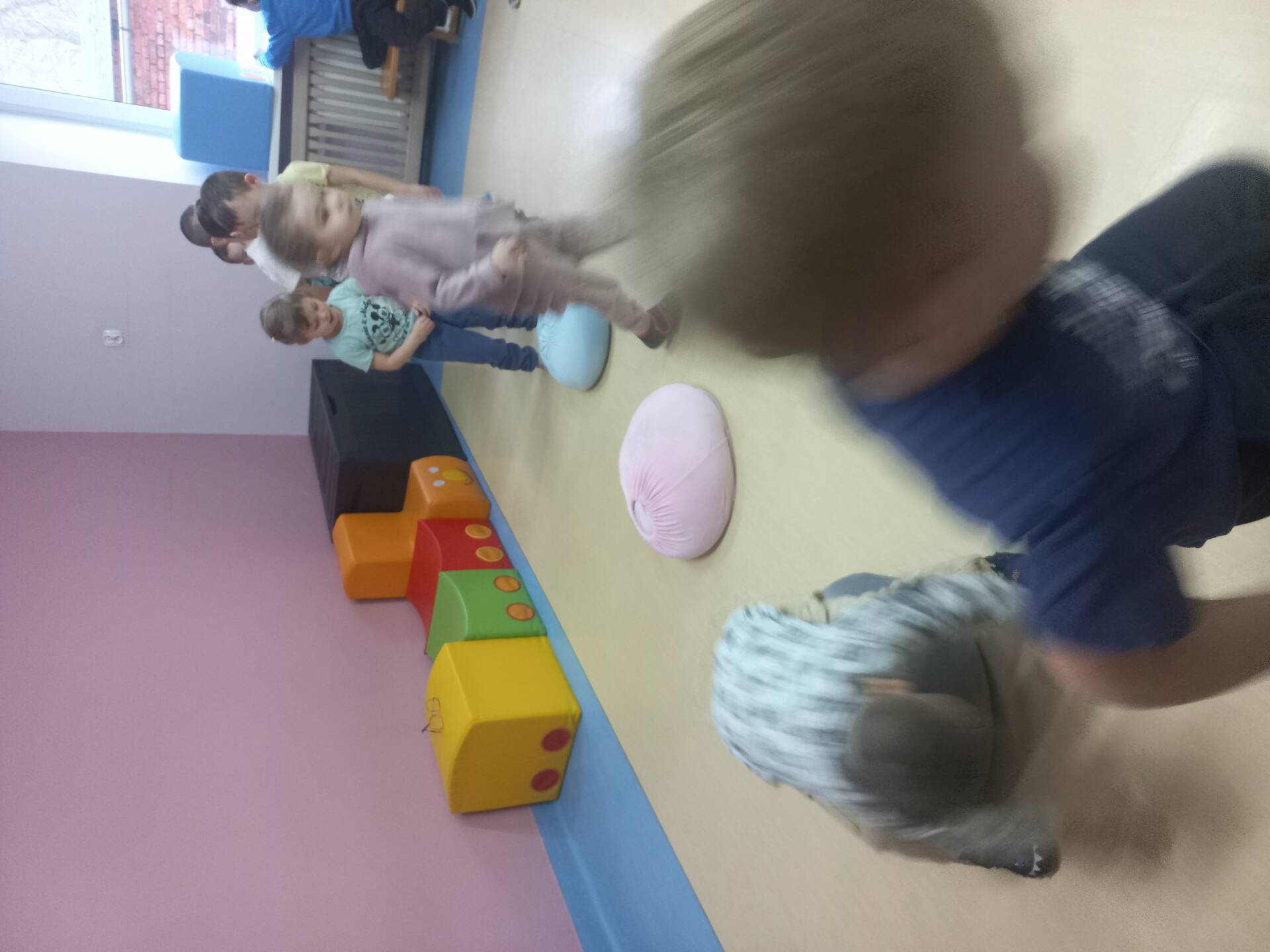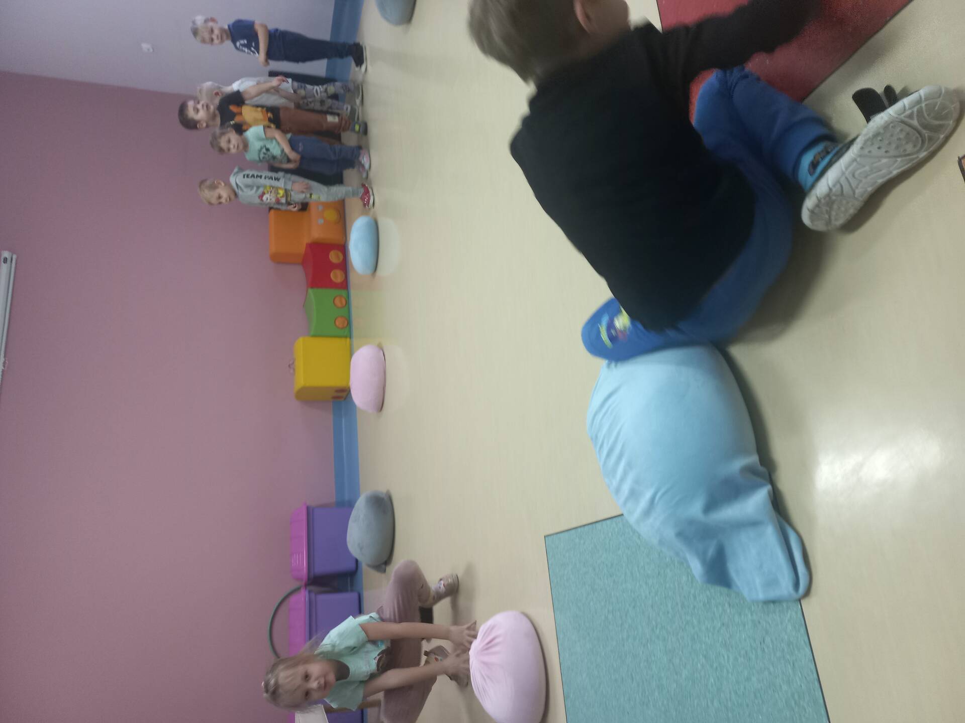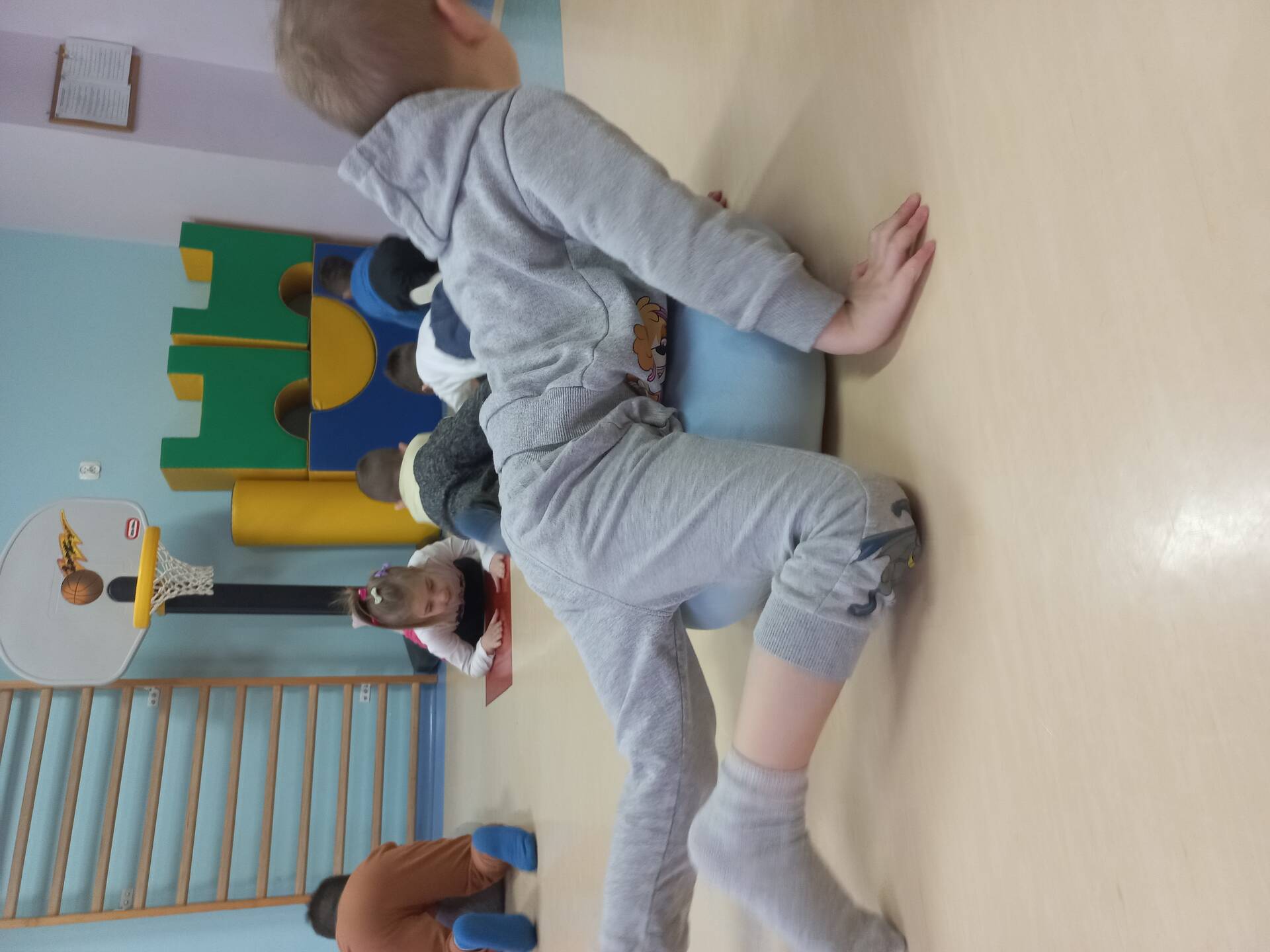 25.01.2024r. Bratki I Fiołki wspólnie bawiły się w zabawy ruchowe z wykorzystaniem kul Sensolyke. Zajęcia zaczęły się od budowania wzajemnych relacji -najlepszą metodą jest Metoda Ruchu Rozwijającego W. Sherborne. Dzieci dobrały się w pary -maluszek ze starszakiem i wspólnie wykonywały ćwiczenia. Takie zabawy są okazją do budowania wzajemnego zaufania i oraz uczą współpracy. Następnie dzieci bawiły się kulami Sensolyke. Wszystkie zabawy mają pozytywny wpływ na integrację sensoryczną. Dzieci toczyły, ugniatały i przeskakiwały. To był bardzo miło spędzony czas.