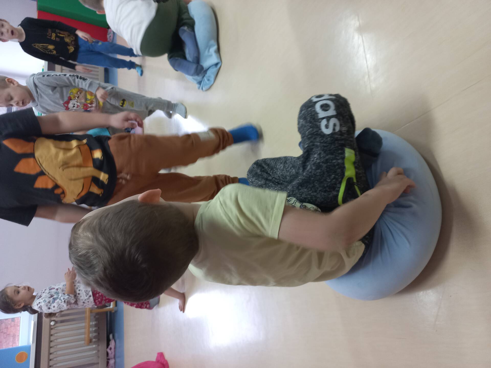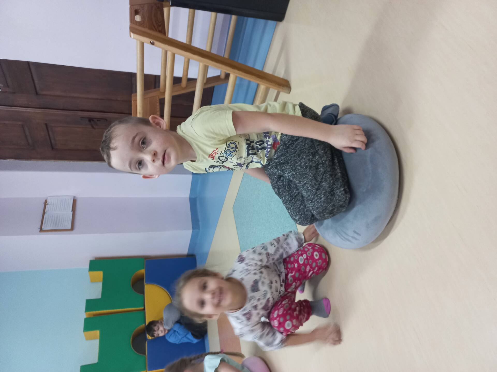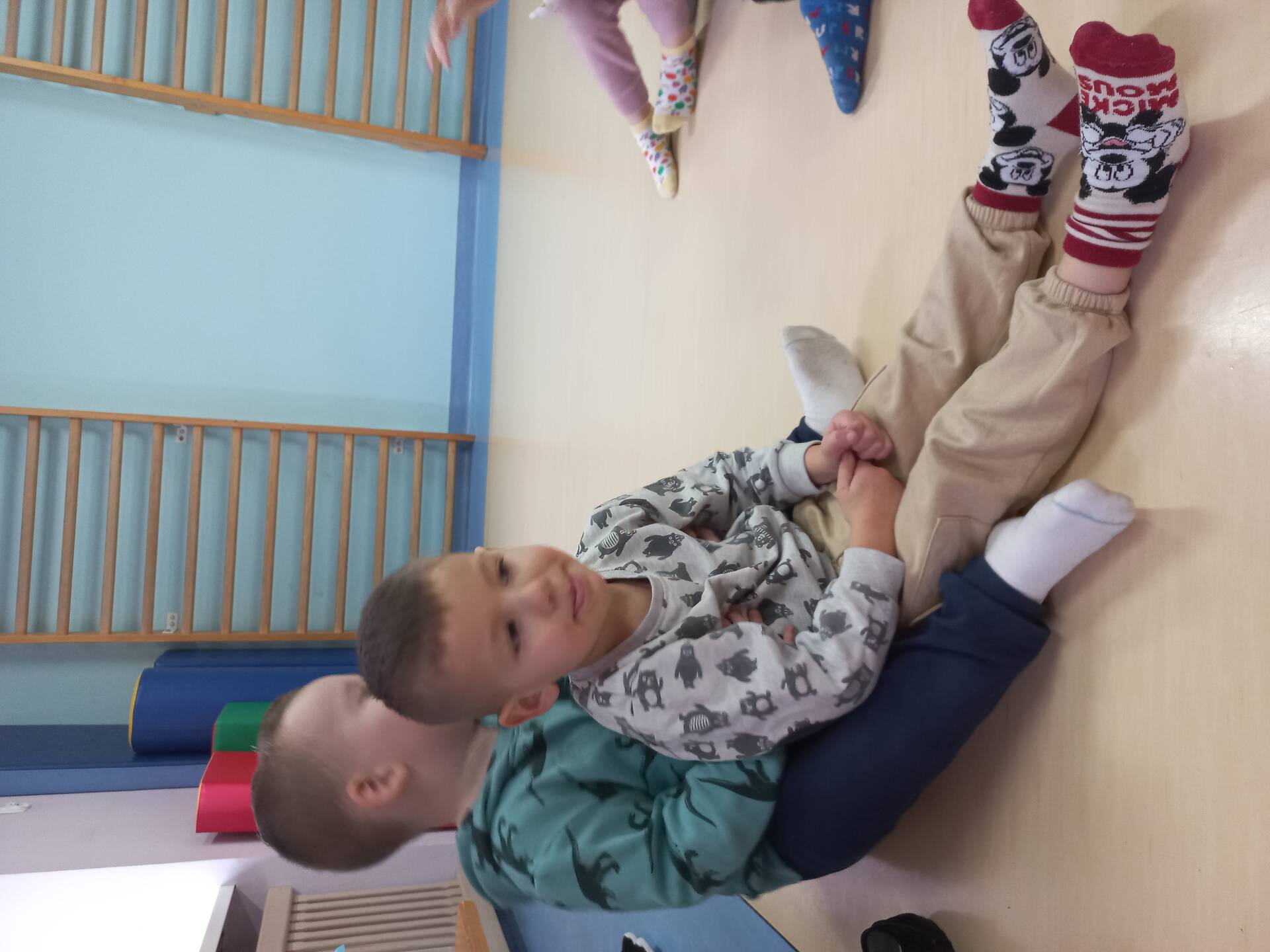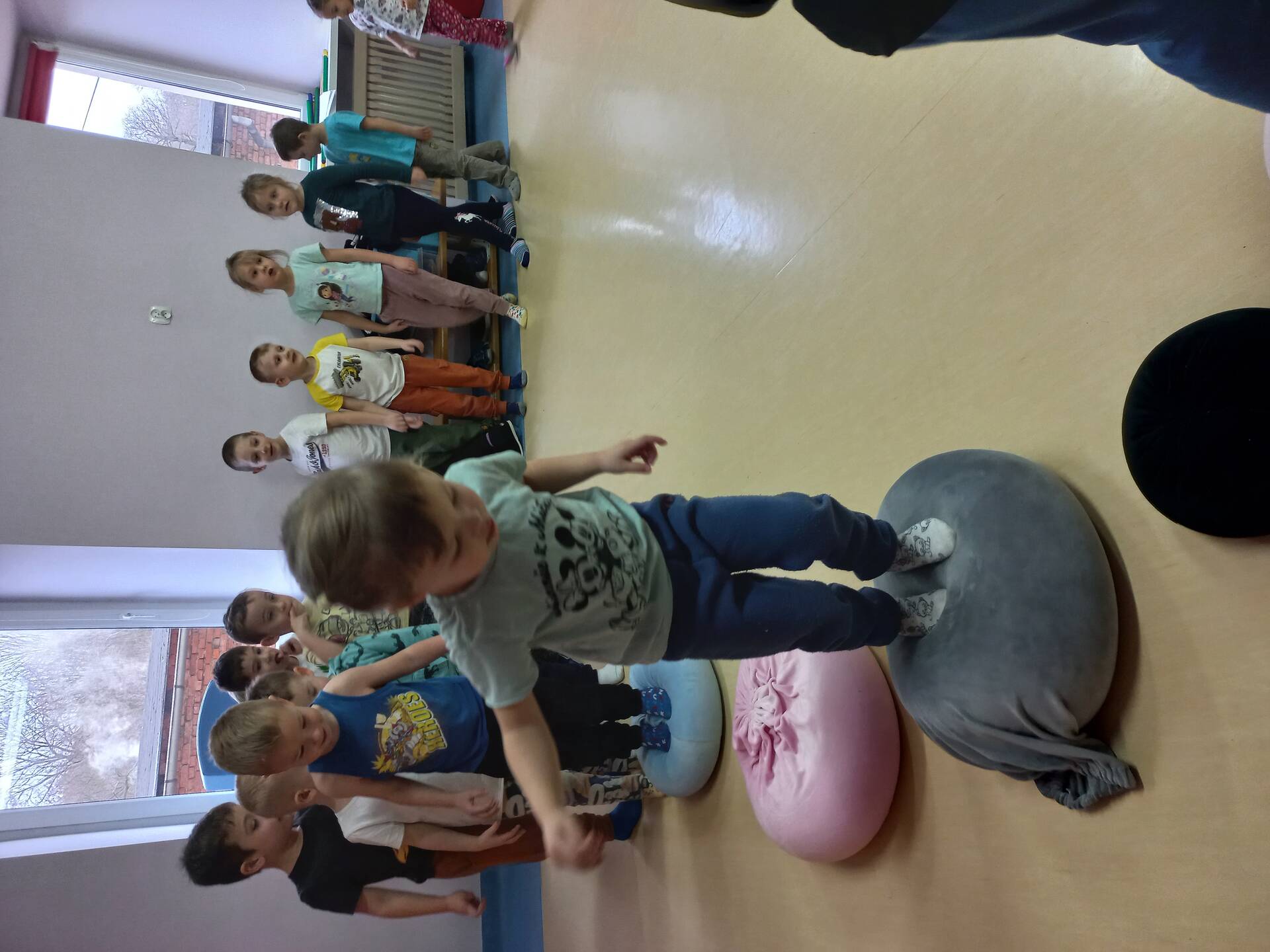 25.01.2024r. Bratki I Fiołki wspólnie bawiły się w zabawy ruchowe z wykorzystaniem kul Sensolyke. Zajęcia zaczęły się od budowania wzajemnych relacji -najlepszą metodą jest Metoda Ruchu Rozwijającego W. Sherborne. Dzieci dobrały się w pary -maluszek ze starszakiem i wspólnie wykonywały ćwiczenia. Takie zabawy są okazją do budowania wzajemnego zaufania i oraz uczą współpracy. Następnie dzieci bawiły się kulami Sensolyke. Wszystkie zabawy mają pozytywny wpływ na integrację sensoryczną. Dzieci toczyły, ugniatały i przeskakiwały. To był bardzo miło spędzony czas.