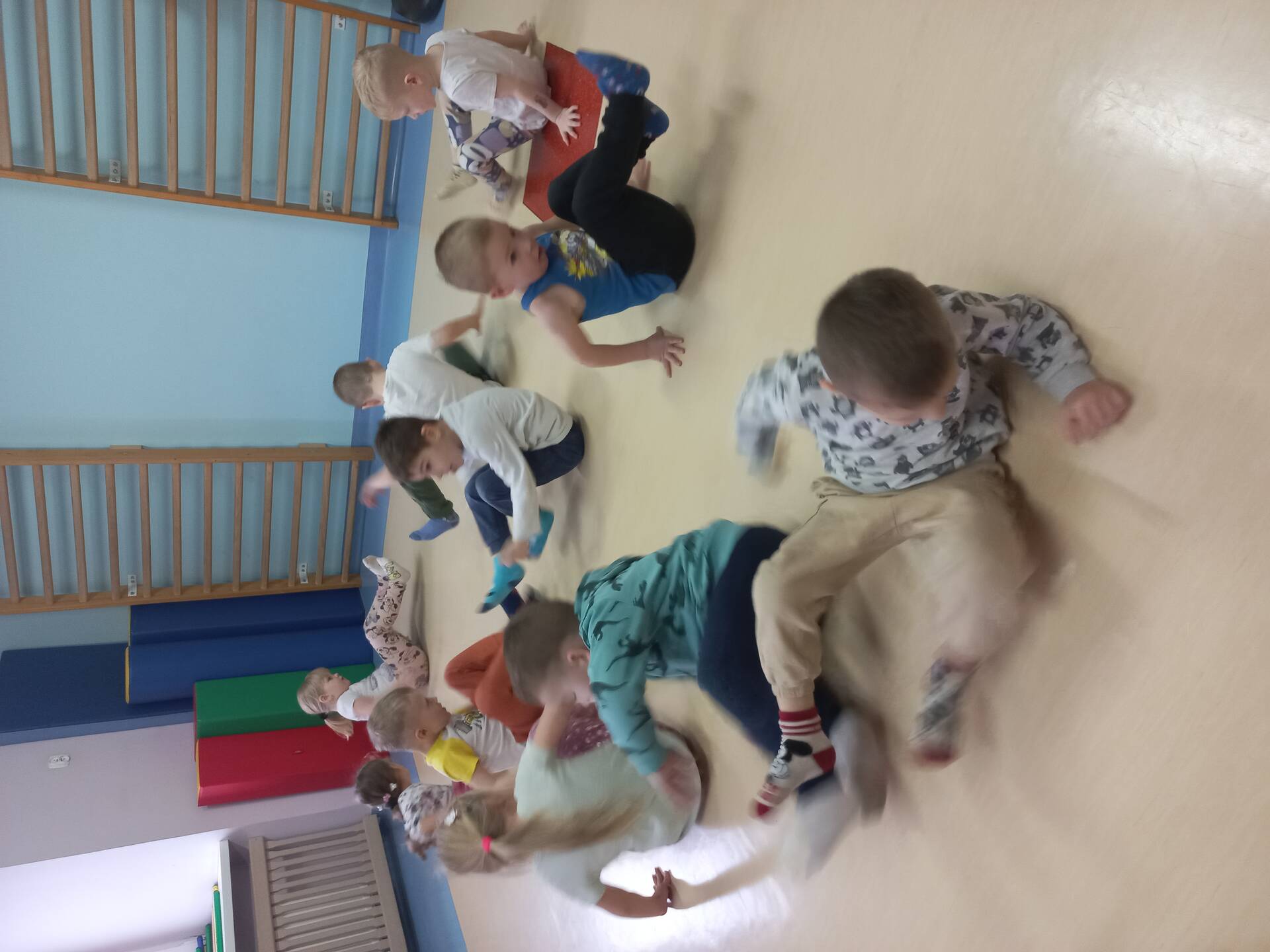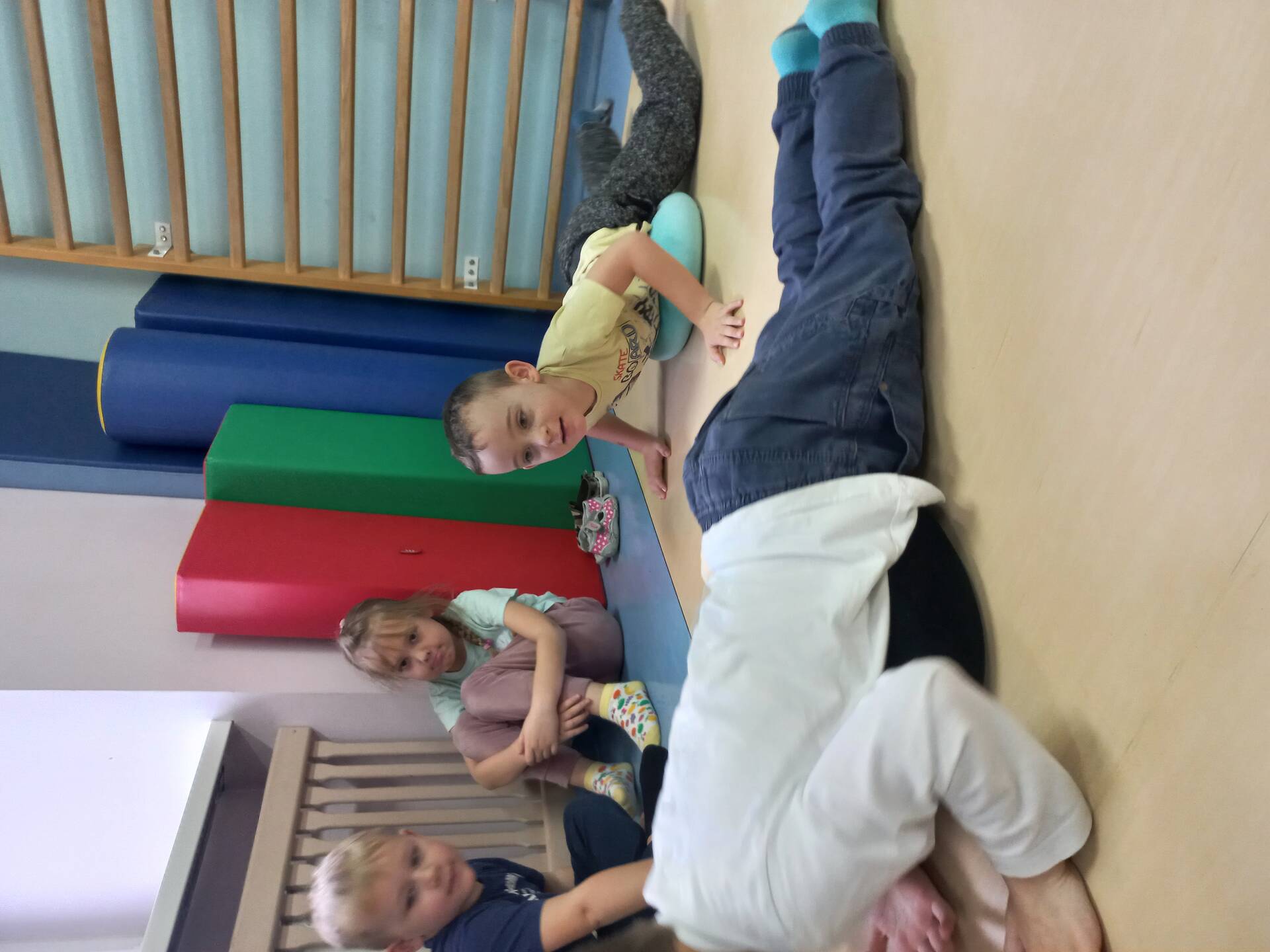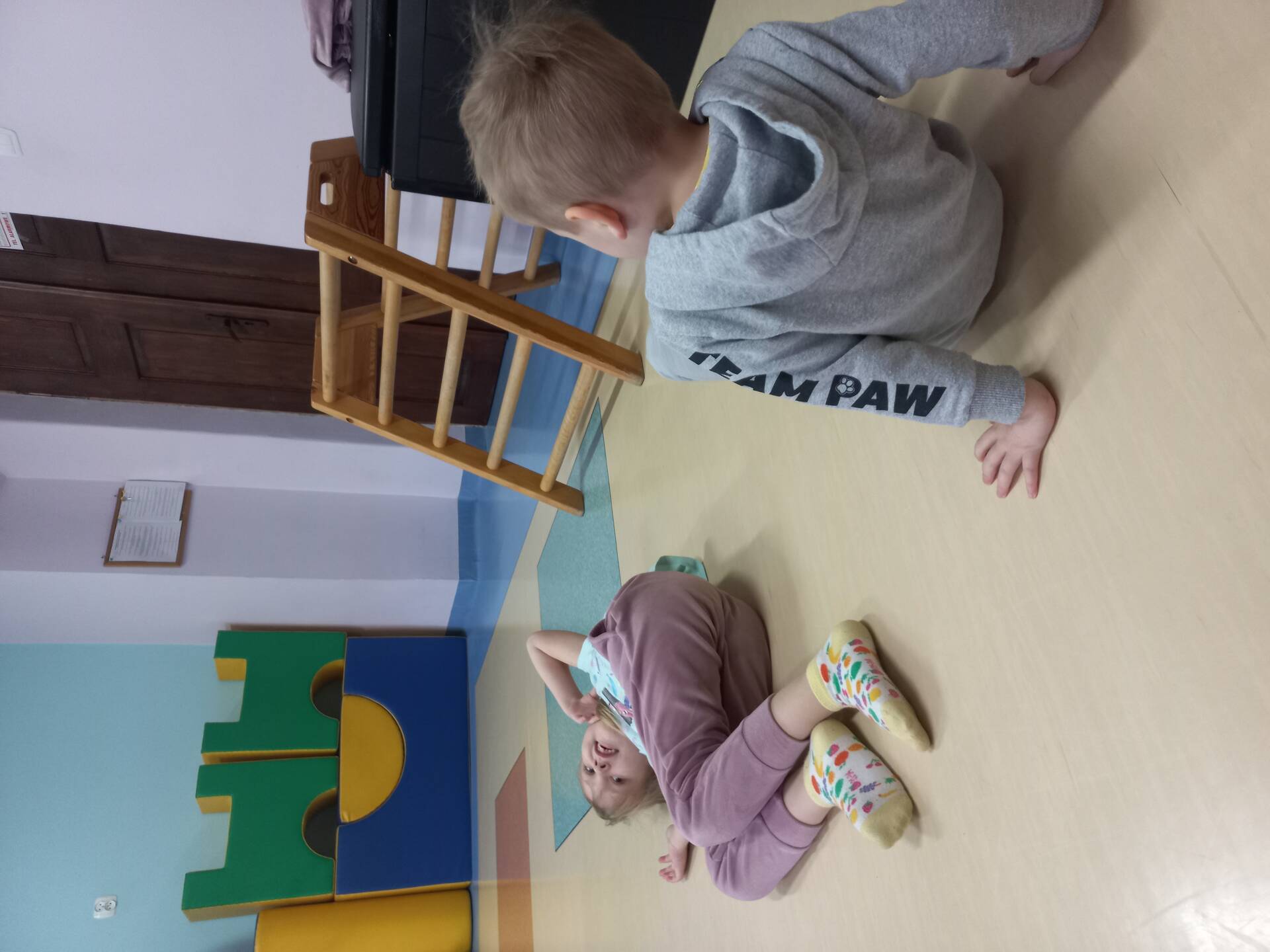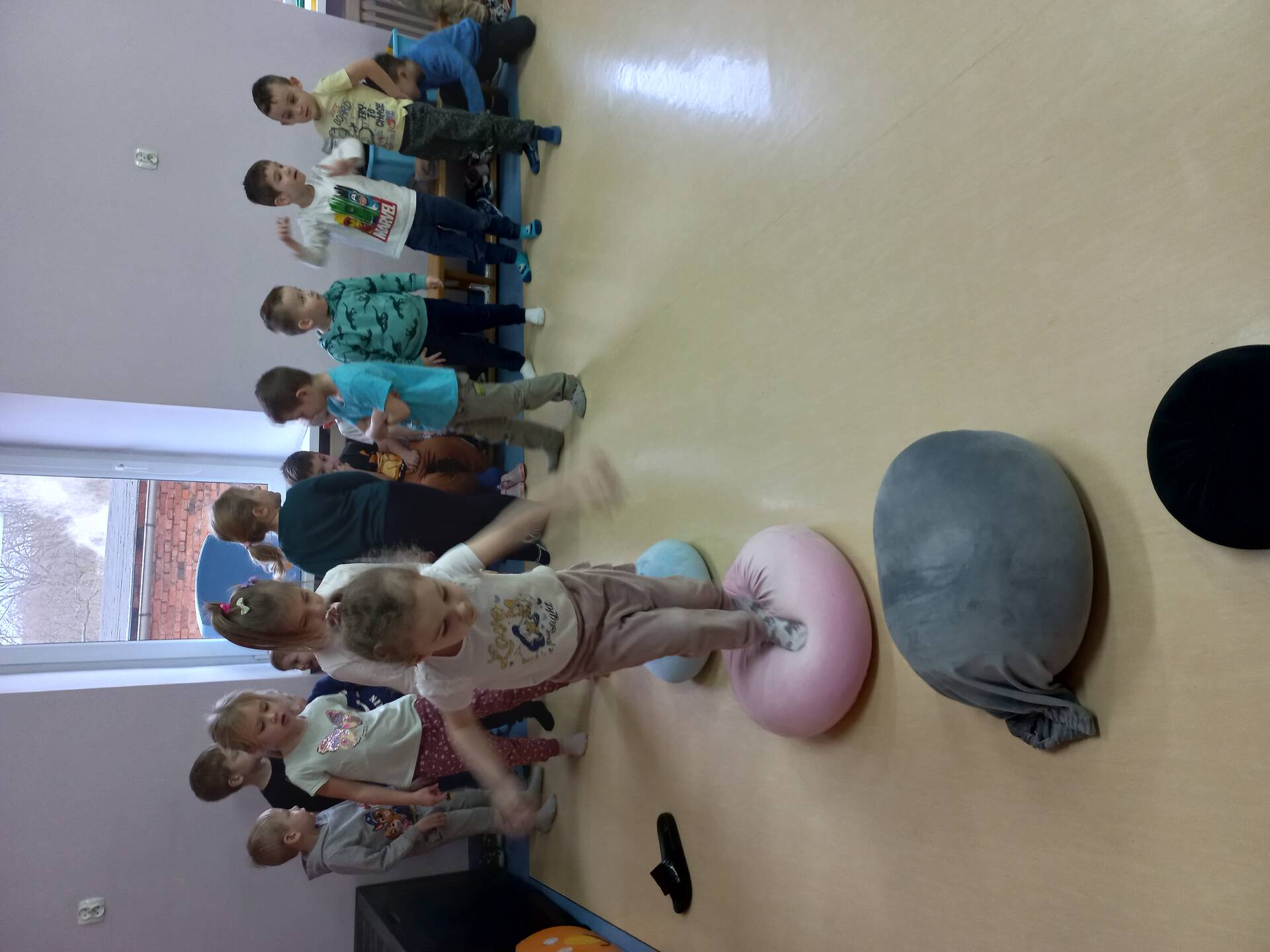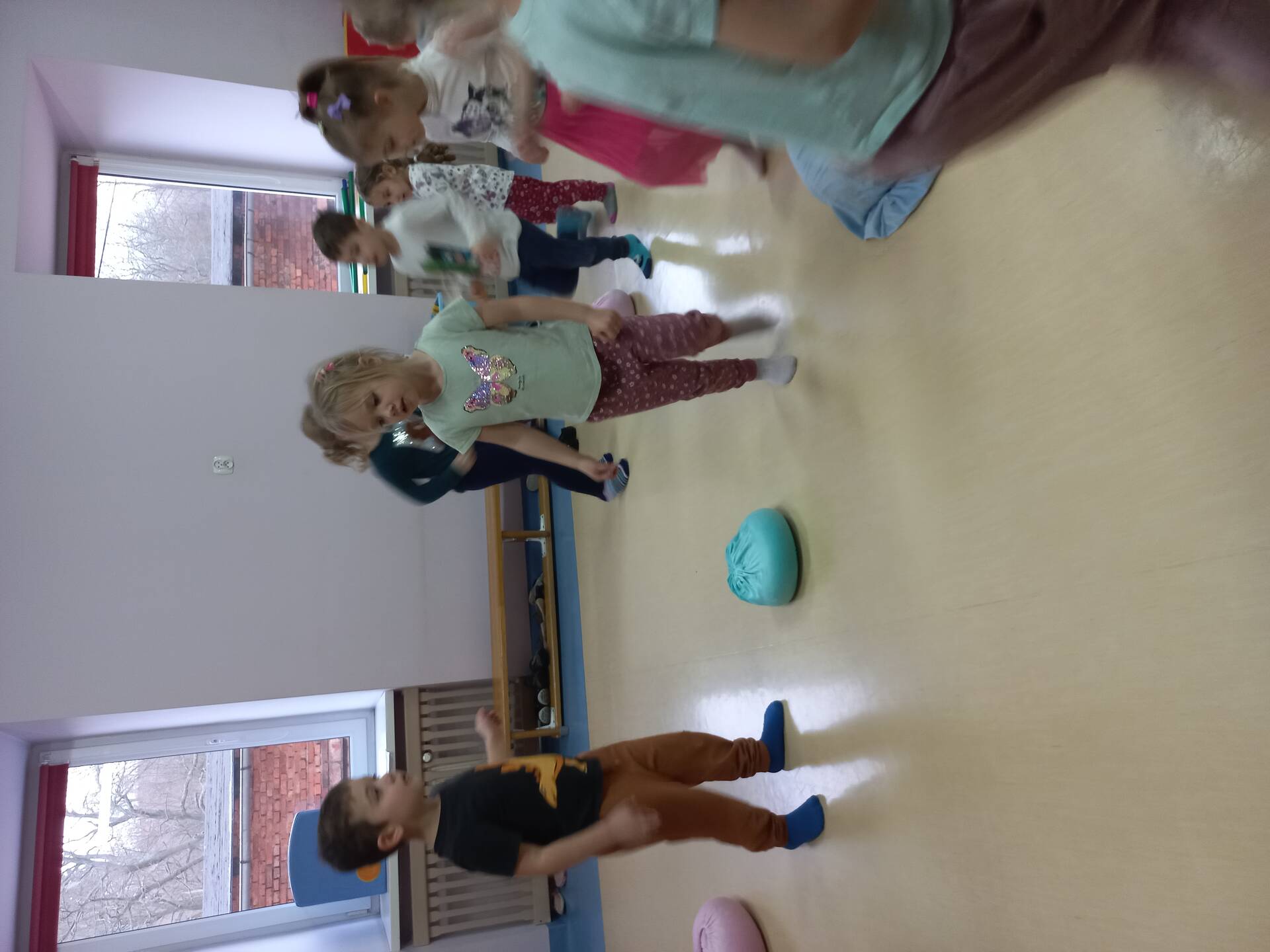 25.01.2024r. Bratki I Fiołki wspólnie bawiły się w zabawy ruchowe z wykorzystaniem kul Sensolyke. Zajęcia zaczęły się od budowania wzajemnych relacji -najlepszą metodą jest Metoda Ruchu Rozwijającego W. Sherborne. Dzieci dobrały się w pary -maluszek ze starszakiem i wspólnie wykonywały ćwiczenia. Takie zabawy są okazją do budowania wzajemnego zaufania i oraz uczą współpracy. Następnie dzieci bawiły się kulami Sensolyke. Wszystkie zabawy mają pozytywny wpływ na integrację sensoryczną. Dzieci toczyły, ugniatały i przeskakiwały. To był bardzo miło spędzony czas.