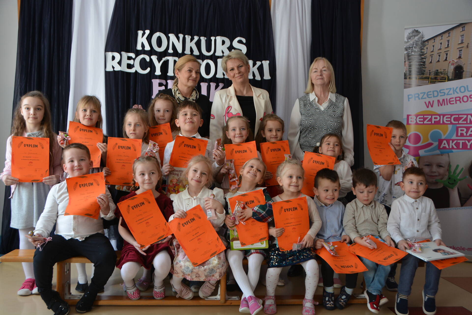 28 marca 2025r. w przedszkolu odbył się pierwszy etap Gminnego Konkursu Recytatorskiego „Elfik”. Reprezentanci grup wystąpili przed jury w składzie: Bogusława Nawrot, Marta Grzeszczyk i Iwona Schienke. Wszystkie dzieci zaprezentowały pięknie przygotowane recytacje wierszy. Oto wyniki obrad jury;