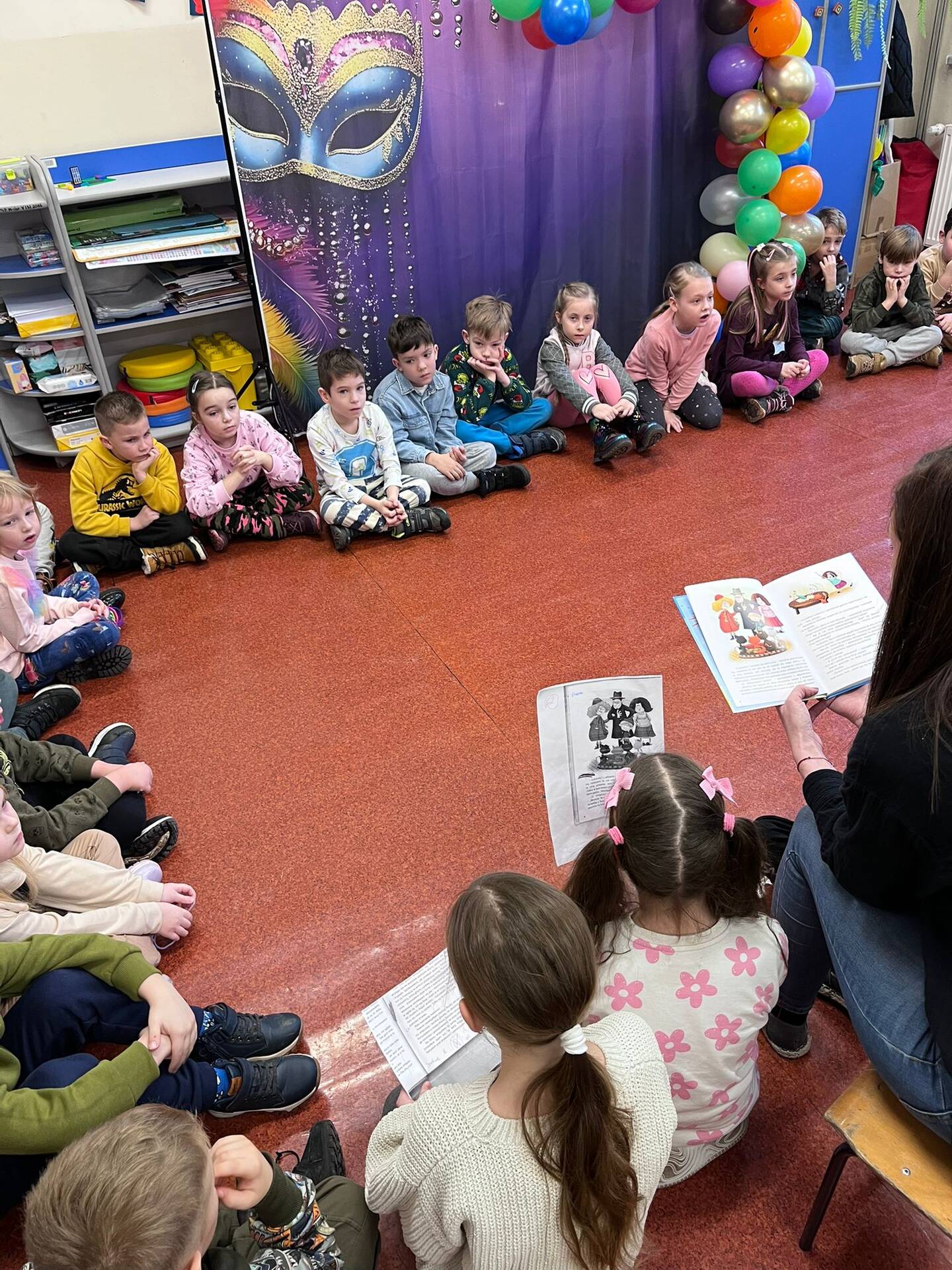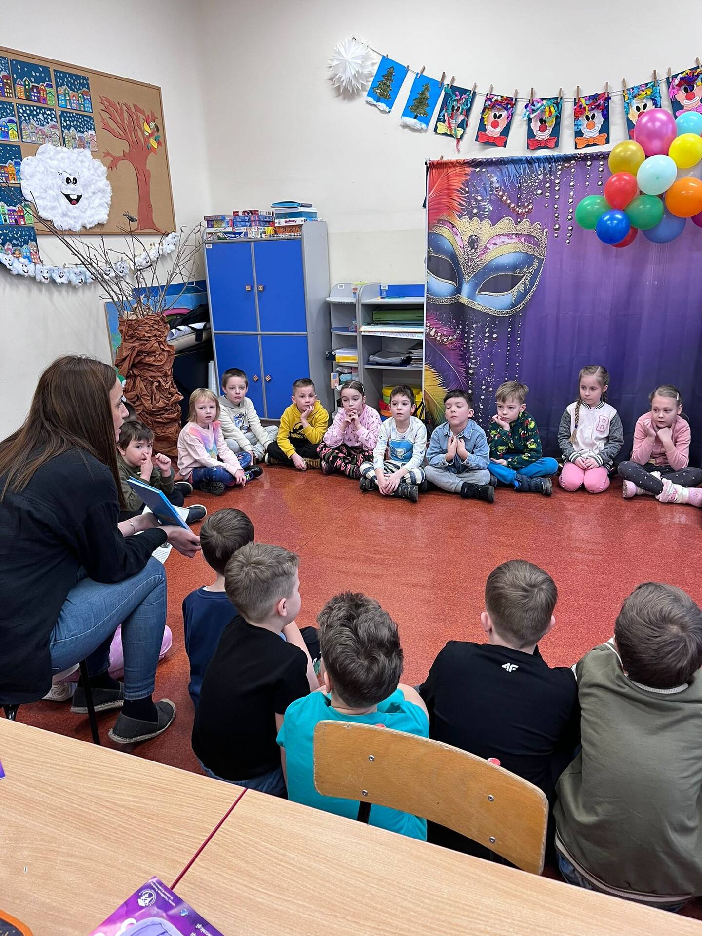 29.01.2025r. w grupie Niezapominajek rozpoczęła się akcja promująca czytelnictwo pt. „Rodzinne czytanie”. Na zaproszenie Pani Justyny – Mamy Hani, przedszkolaki wybrały się do Publicznej Szkoły Podstawowej w Mieroszowie, aby wysłuchać czytania książki W. Cichonia „Cukierku, Ty łobuzie”. Ślicznie dziękujemy Pani Justynie za udział w akcji.