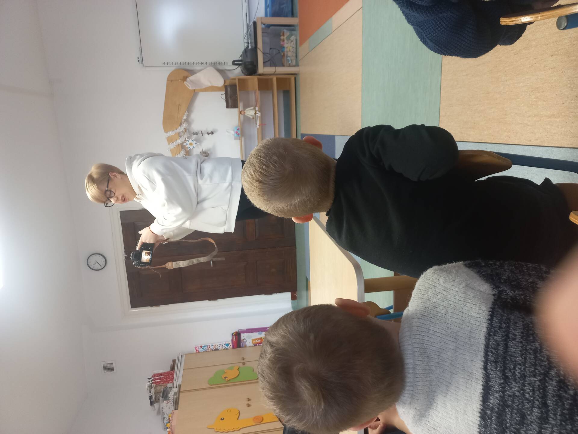 7 stycznia 2025r. odwiedziła nas p. Edyta Kucharska, która w ramach „Rodzinnego czytania” przybliżyła nam przygody Franklina. Tematyka opowiadania nie była przypadkowa -bohater książki znalazł aparat fotograficzny. Mama Wojtka opowiedziała nam o swojej pracy fotografa i w ramach niespodzianki każdemu zrobiła zdjęcie portretowe. Ślicznie dziękujemy za miło spędzony czas.