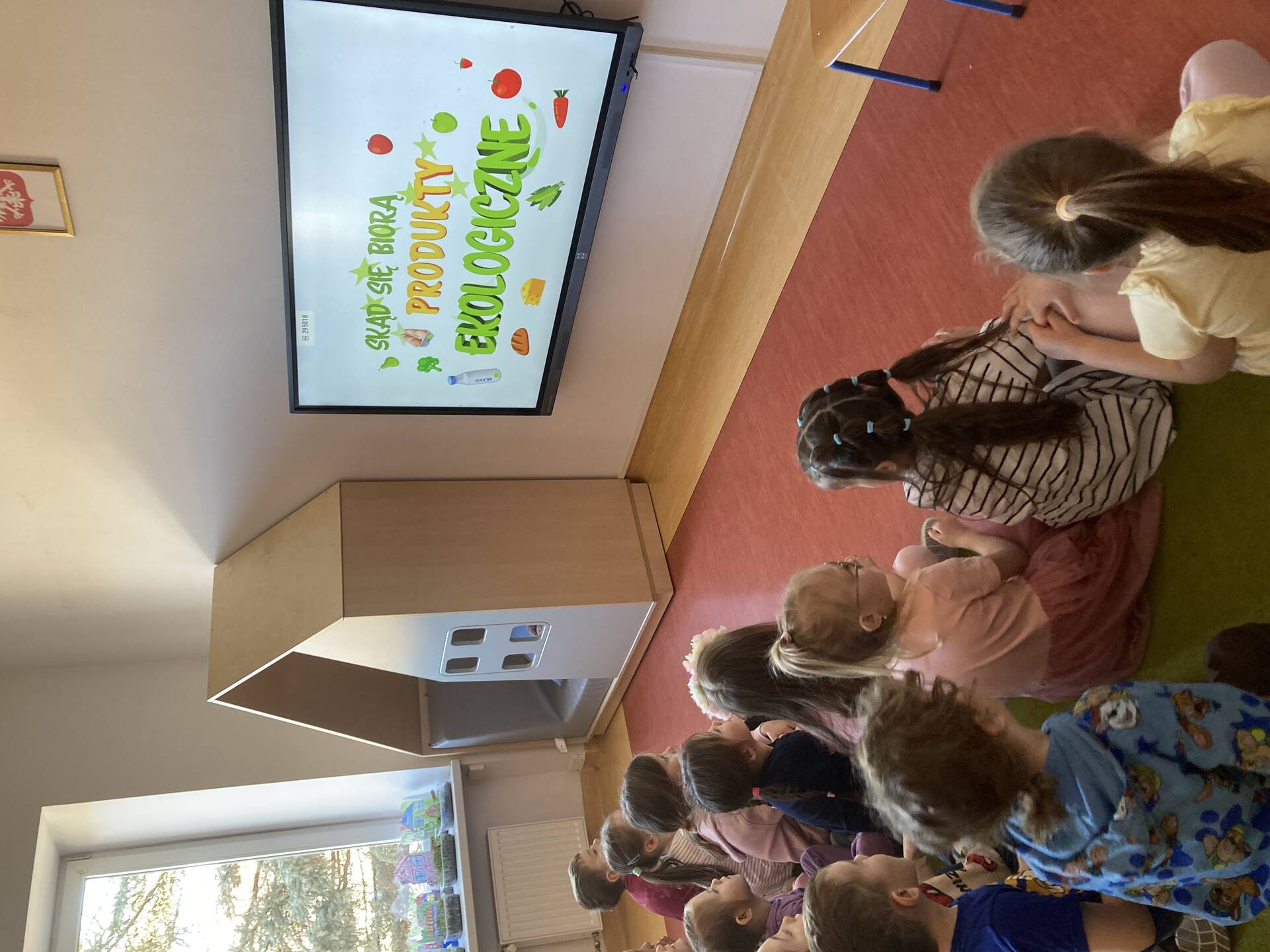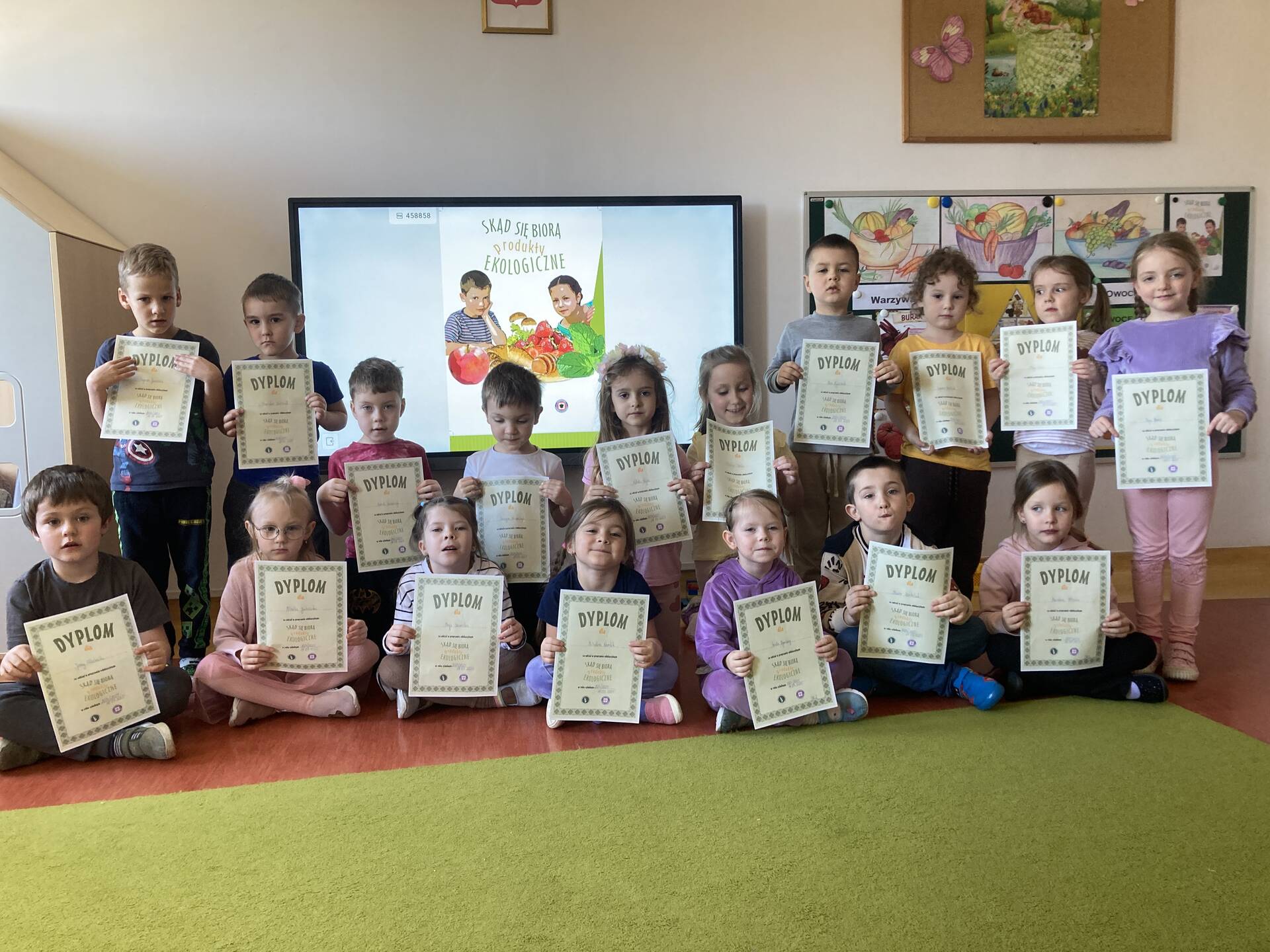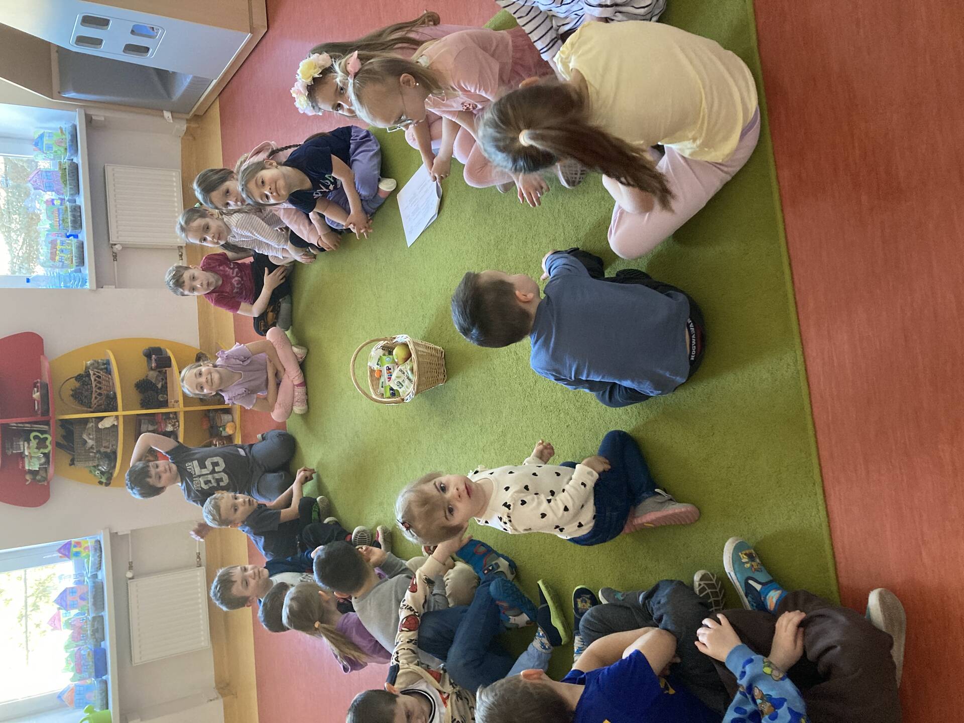 W dniach 17 – 21 . 2025 w grupie III Bławatki (5 latki)  realizowany był  program Powiatowej Stacji Sanitarno-Epidemiologicznej „Skąd się biorą produkty ekologiczne?” Program ma na celu kształtowanie prozdrowotnych nawyków wśród dzieci poprzez promocję zbilansowanej i urozmaiconej diety, niskoprzetworzonej, ekologicznej żywności oraz właściwych nawyków w zakresie higieny. Dzieci obejrzały film o tym, jak rozpoznać produkty ekologiczne i poznały piramidę zdrowego żywienia. Program zakończył się wspólnym balem witaminkowym wszystkich dzieci z przedszkola.