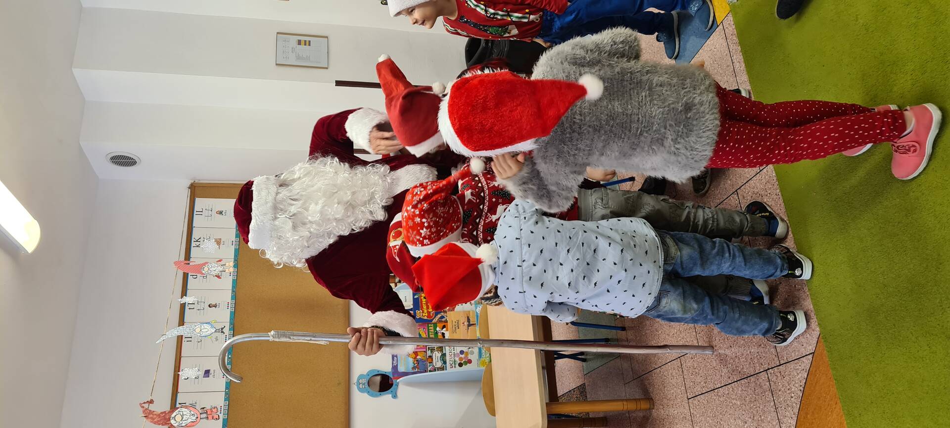 Bratki recytowały wierszyk, a Święty Mikołaj obdarował dzieci wspaniałymi prezentami.