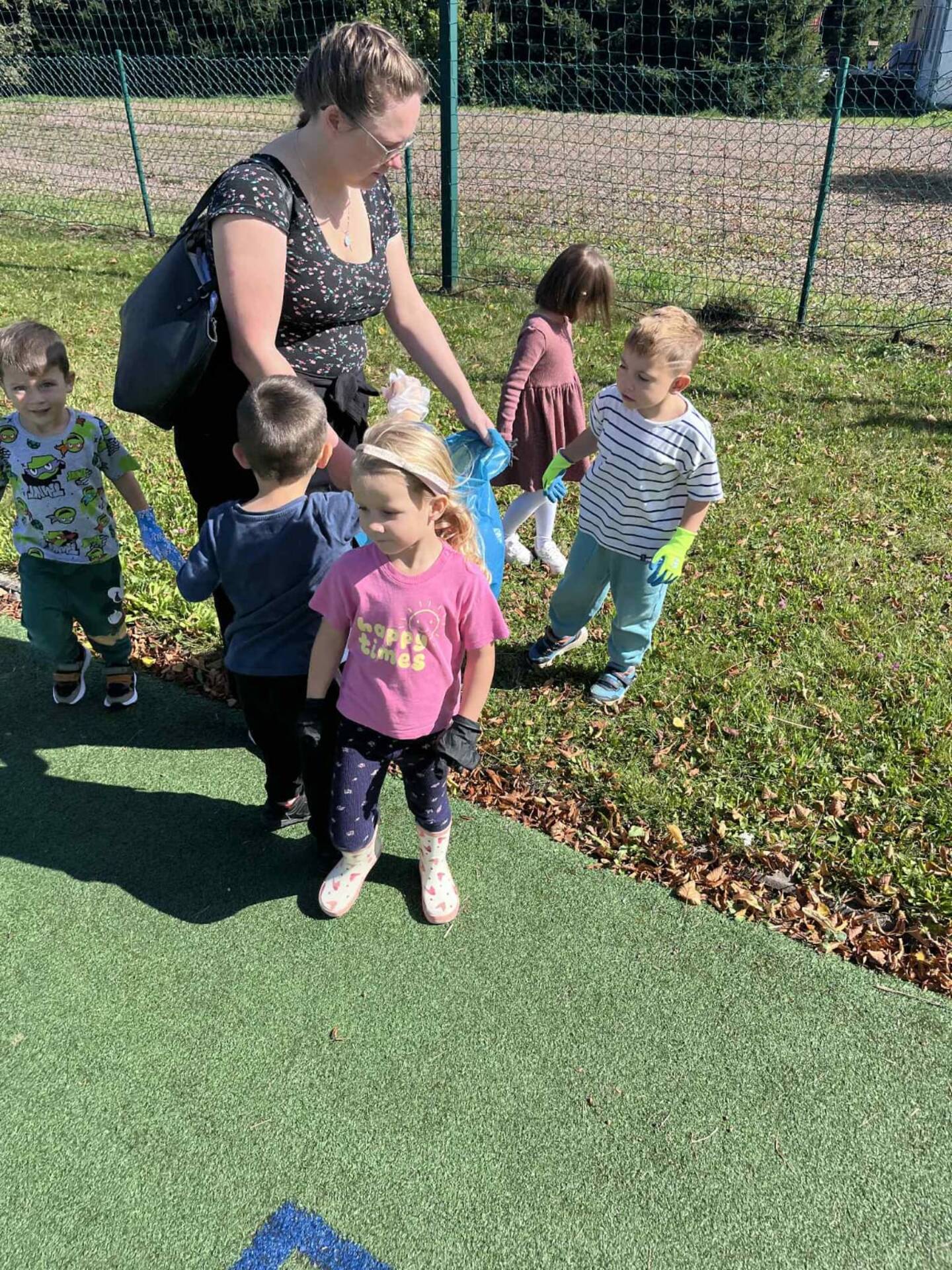 W piątek 19 września dzieci z grupy Stokrotek wzięły udział w ogólnopolskiej akcji Sprzątania Świata, która w tym roku odbyła się pod hasłem „ W naturę z kulturą”. Wspólnie udaliśmy się na boisko przy ul. Hożej , które obraliśmy jako cel naszych porządków. Po skończonym sprzątaniu przyszedł czas na odrobinę zabawy i powrót do naszego przedszkola.