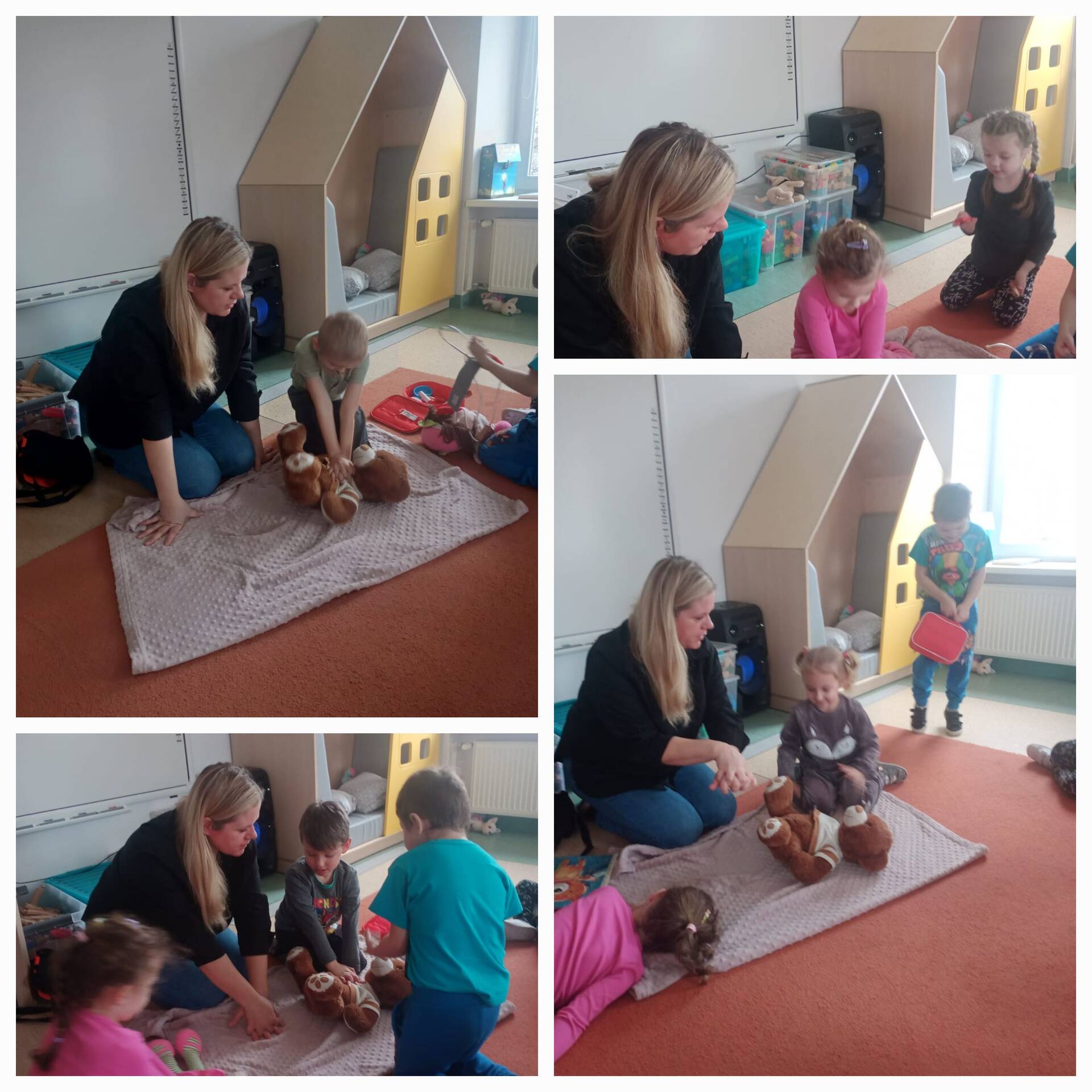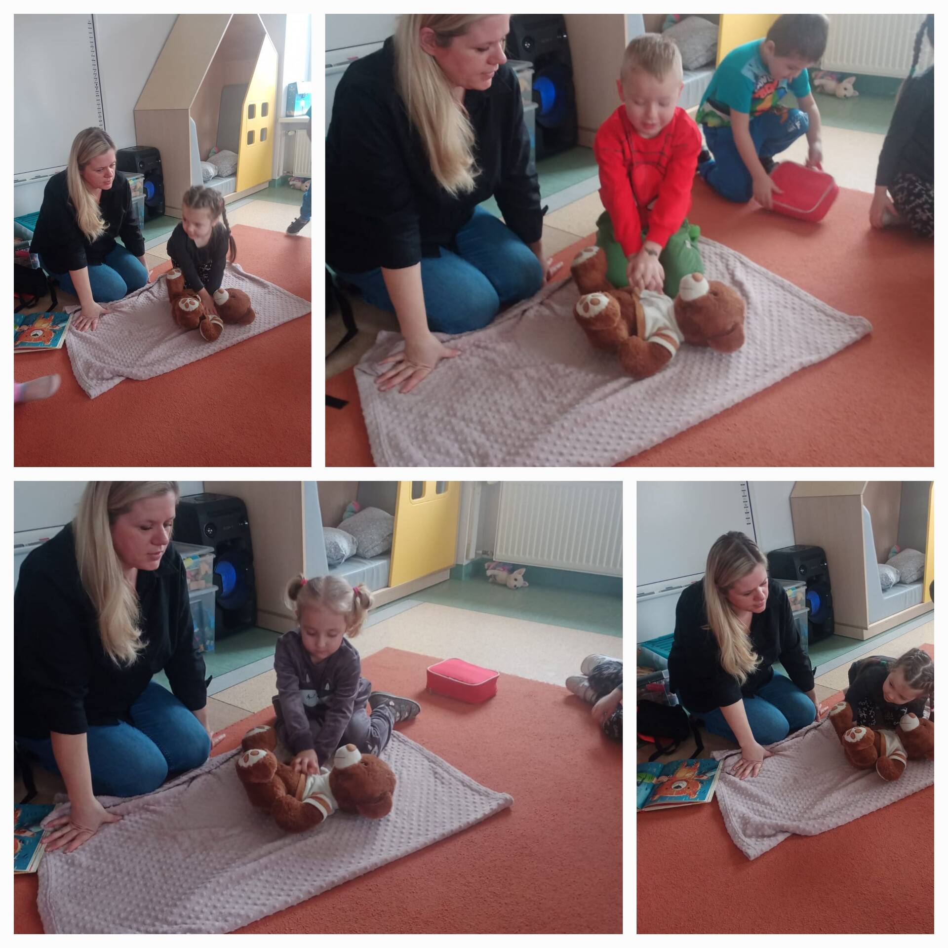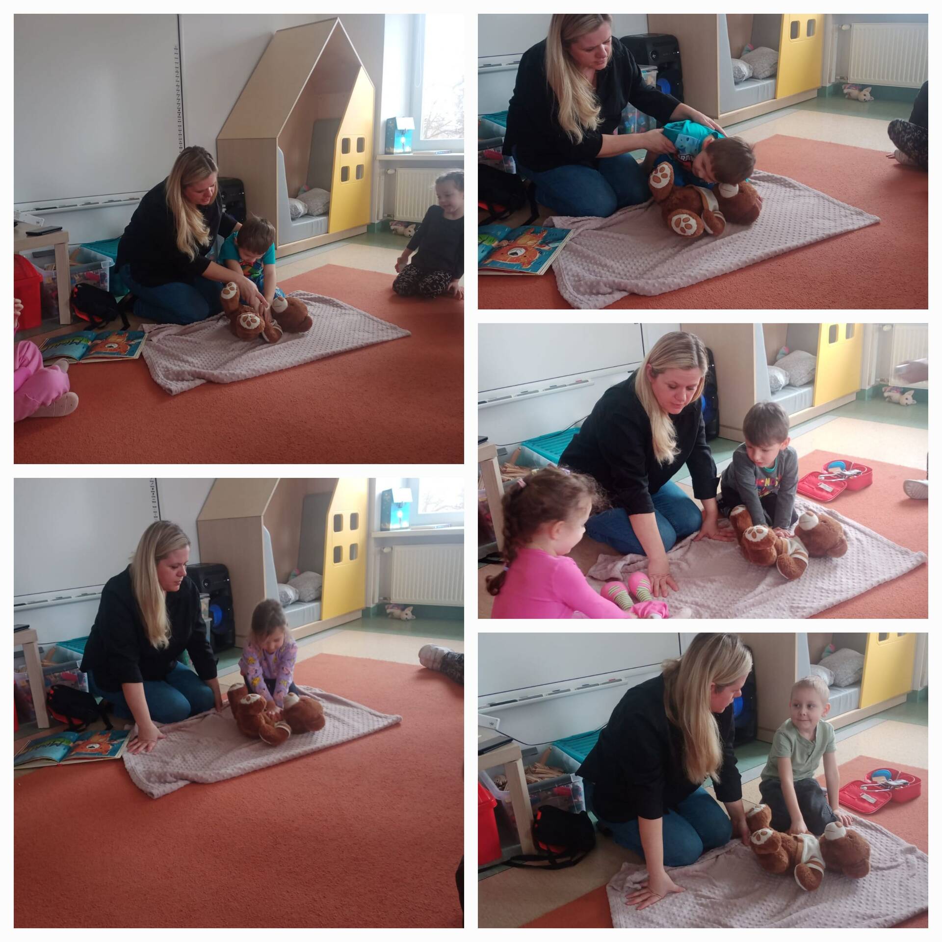 13.02.2025r. w naszej grupie odbyły się warsztaty z udzielania pierwszej pomocy. Stokrotki wysłuchały książki „Łukasz ratuje misia, czyli jak udzielać pierwszej pomocy”. Przypomnieliśmy sobie numer alarmowy i przećwiczyliśmy wzywanie pomocy. Następnie każdy spróbował uratować misia, który miał wypadek. Teraz wiemy jak udzielać pierwszej pomocy.