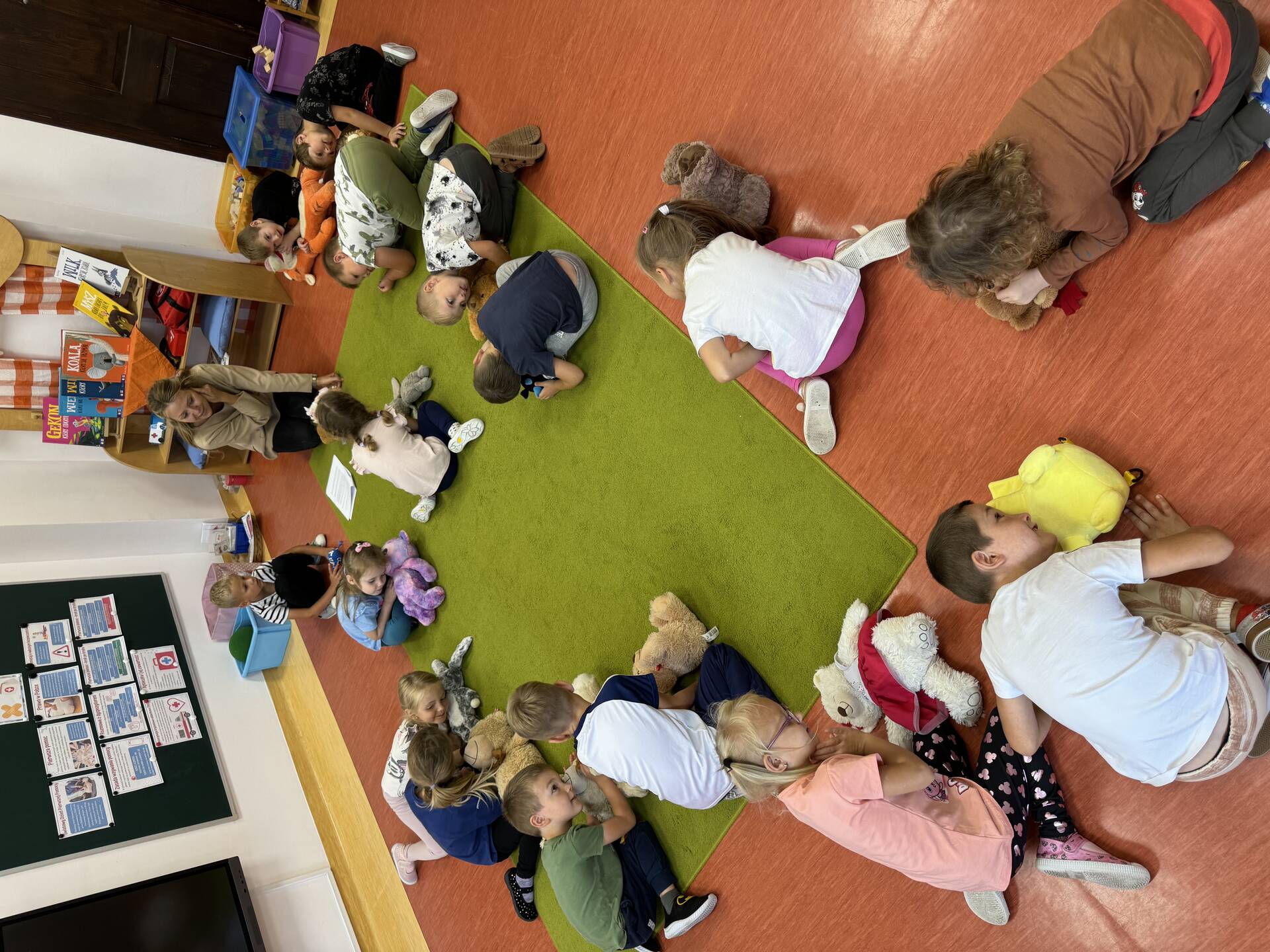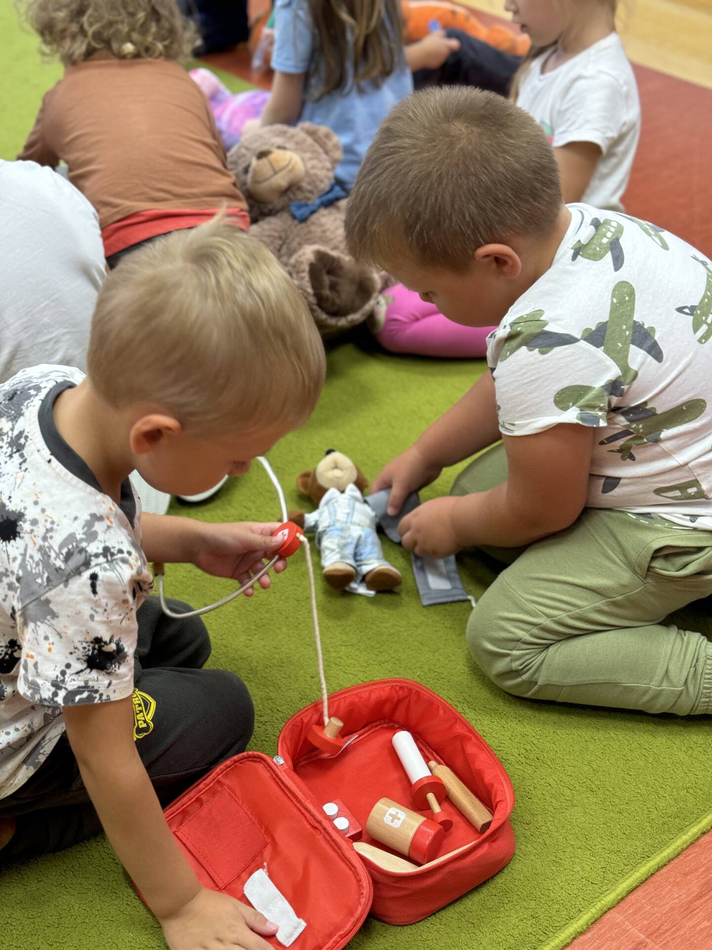 Dziś uczyliśmy się, jak udzielić pierwszej pomocy przedmedycznej- dzieci ratowały swoje misie. Ćwiczyły resuscytację oraz bezpieczną pozycję. Wiedzą, pod jaki numer należy zadzwonić, jeśli potrzebna jest pomoc służb ratunkowych 1️⃣1️⃣2️⃣ Poznały również takie pojęcie jak „korytarz życia”.