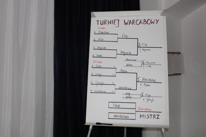 15.04.2026r. odbył się Turniej Warcabowy. Do rywalizacji stanęło ośmioro uczestników. Turniej został rozegrany w dwóch kategoriach wiekowych: 5-latków i 6-latków. Zwycięzcy z poszczególnych kategorii zawalczyli o tytuł Mistrza Warcabów.