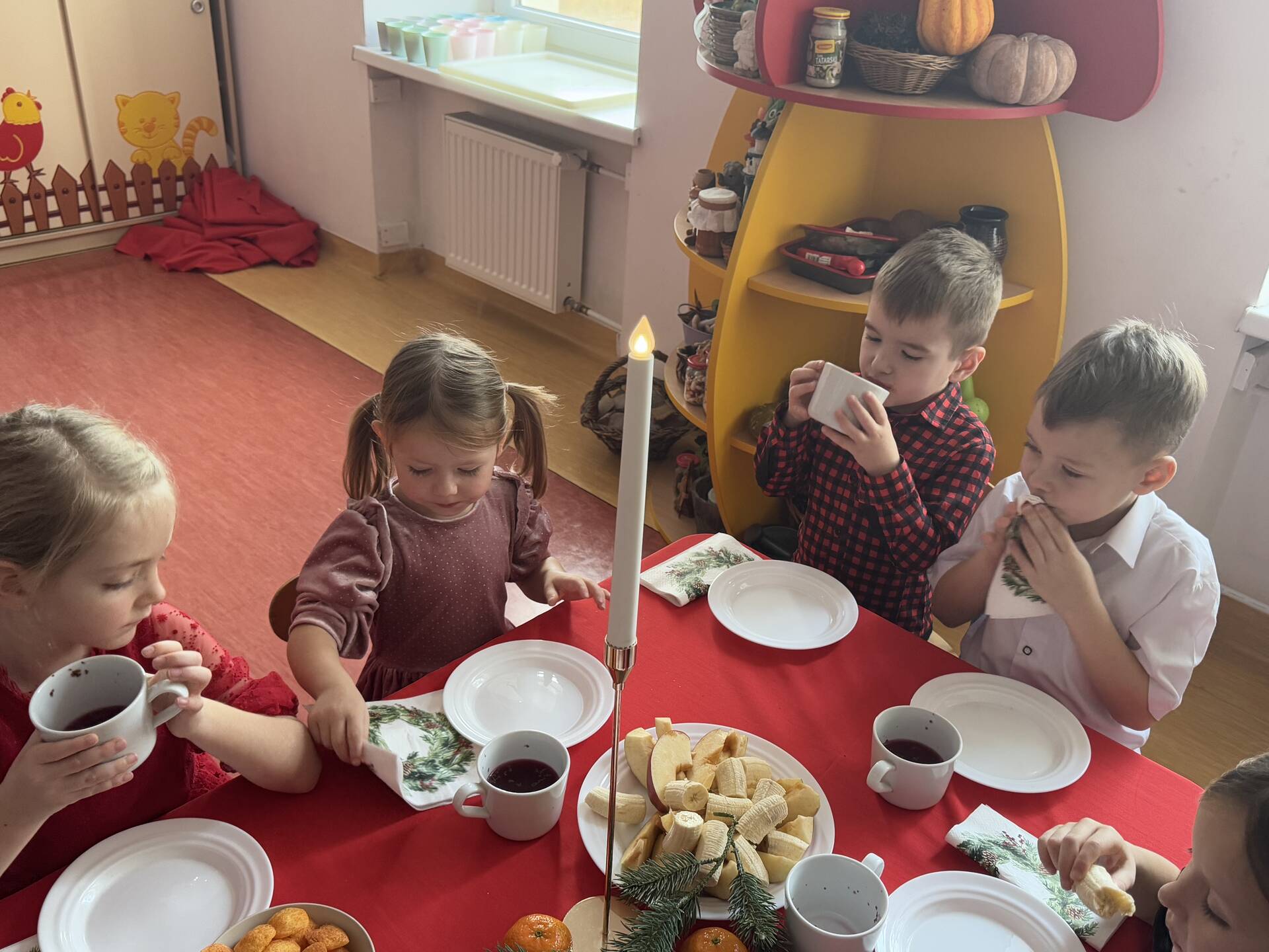 Po obejrzeniu przedstawienia jasełkowego przygotowanego przez gr. V „Niezapominajki” zasiedliśmy do świątecznego stołu. To był bardzo miły dzień!