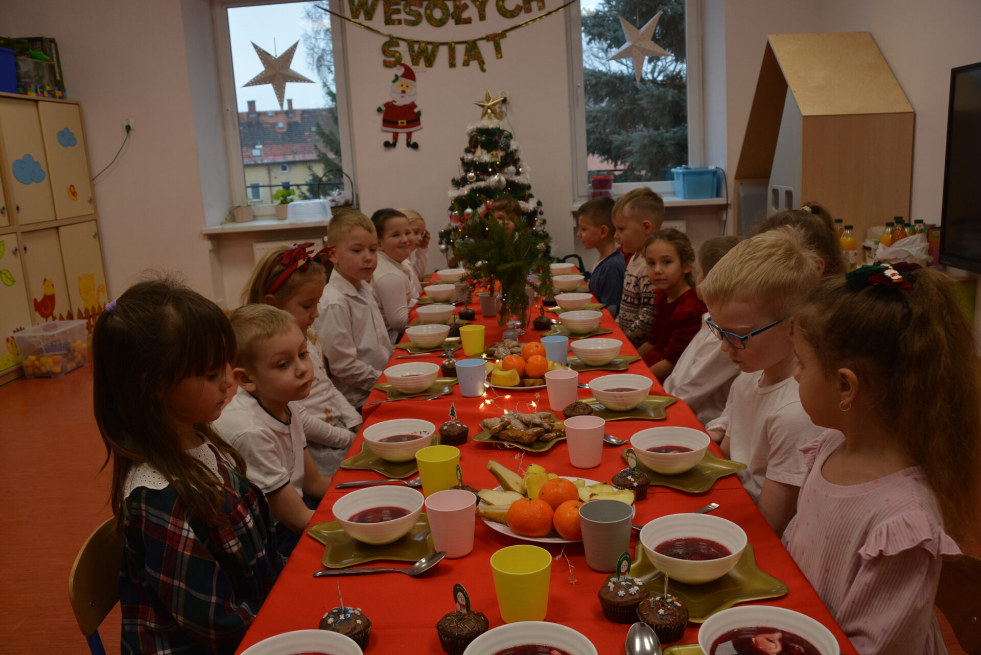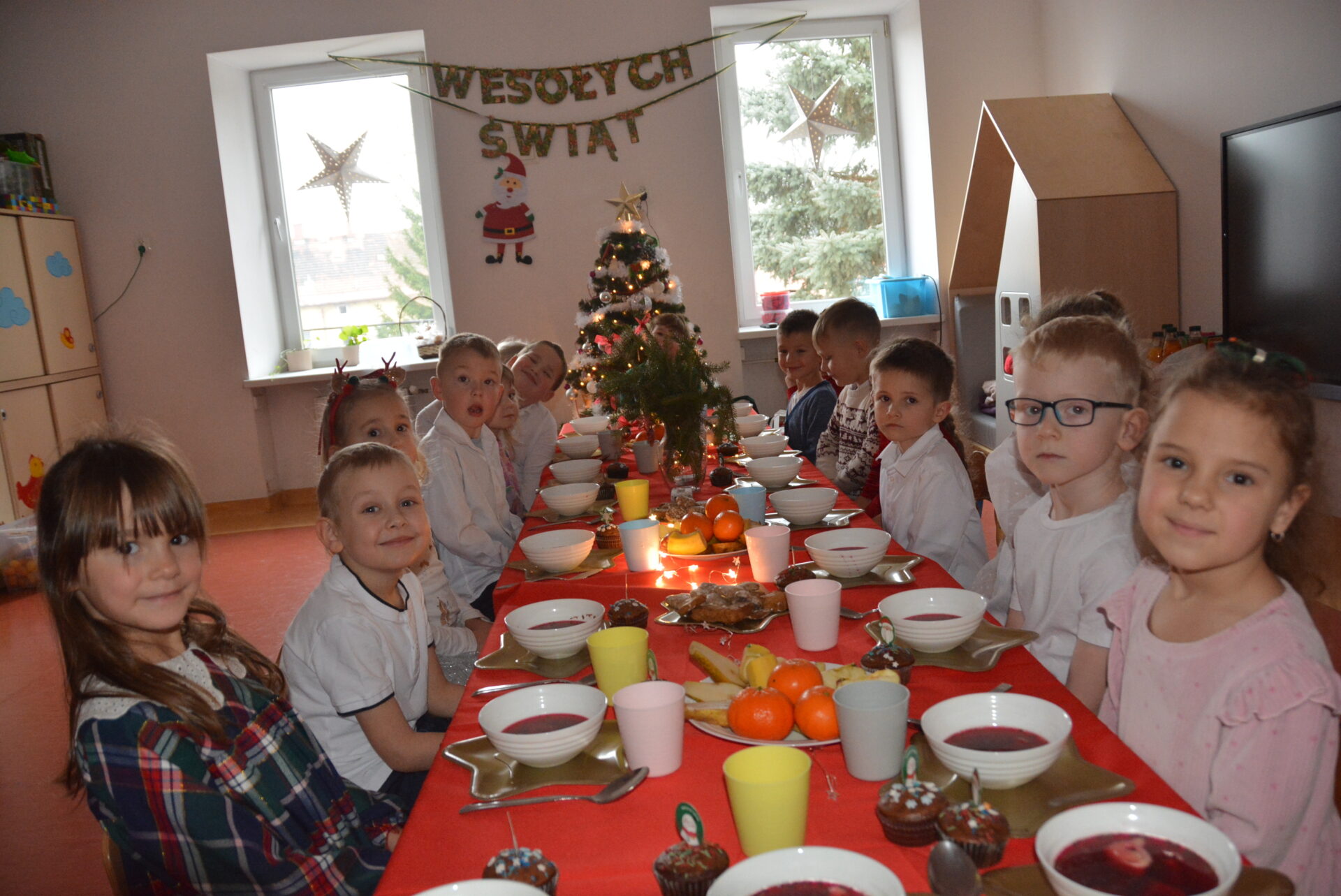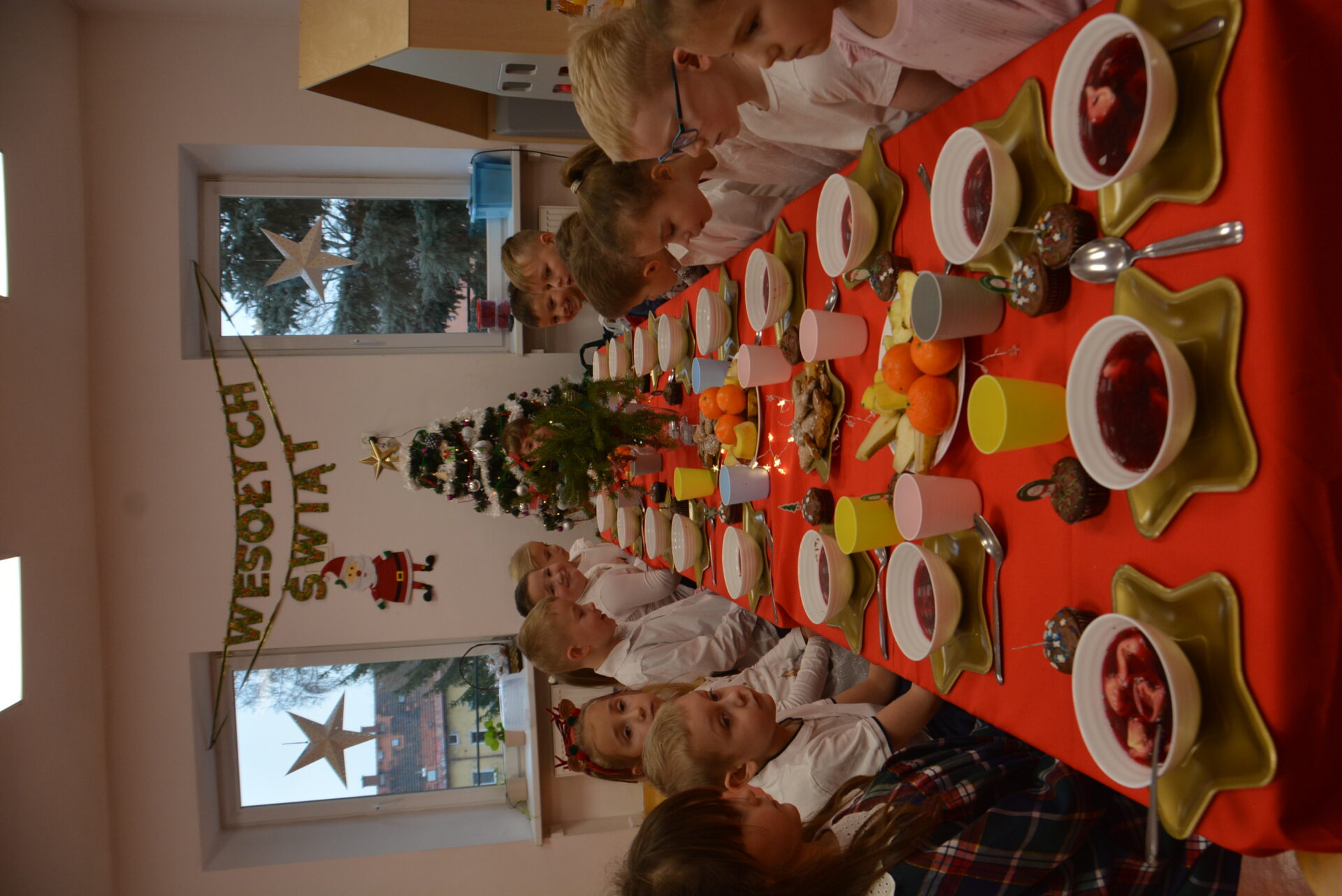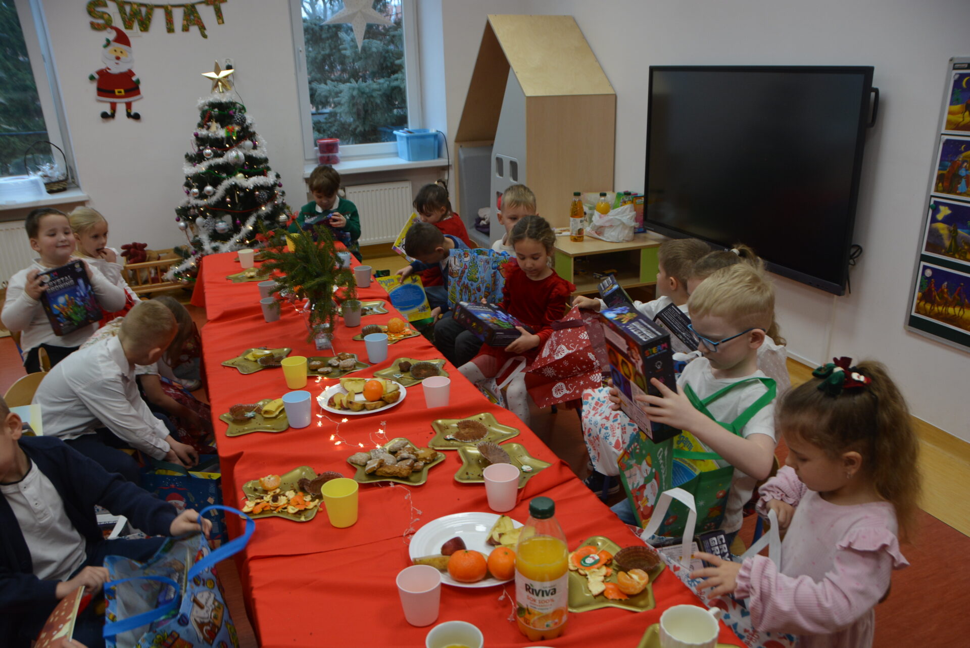 19 grudnia, po obejrzeniu przedszkolnych jasełek, Bławatki uczestniczyły w grupowej Wigilii i cieszyły się prezentami. W imieniu dzieci dziękujemy św. Mikołajowi i rodzicom za udział w organizacji poczęstunku i paczek. Życzymy spokojnych, radosnych świąt.