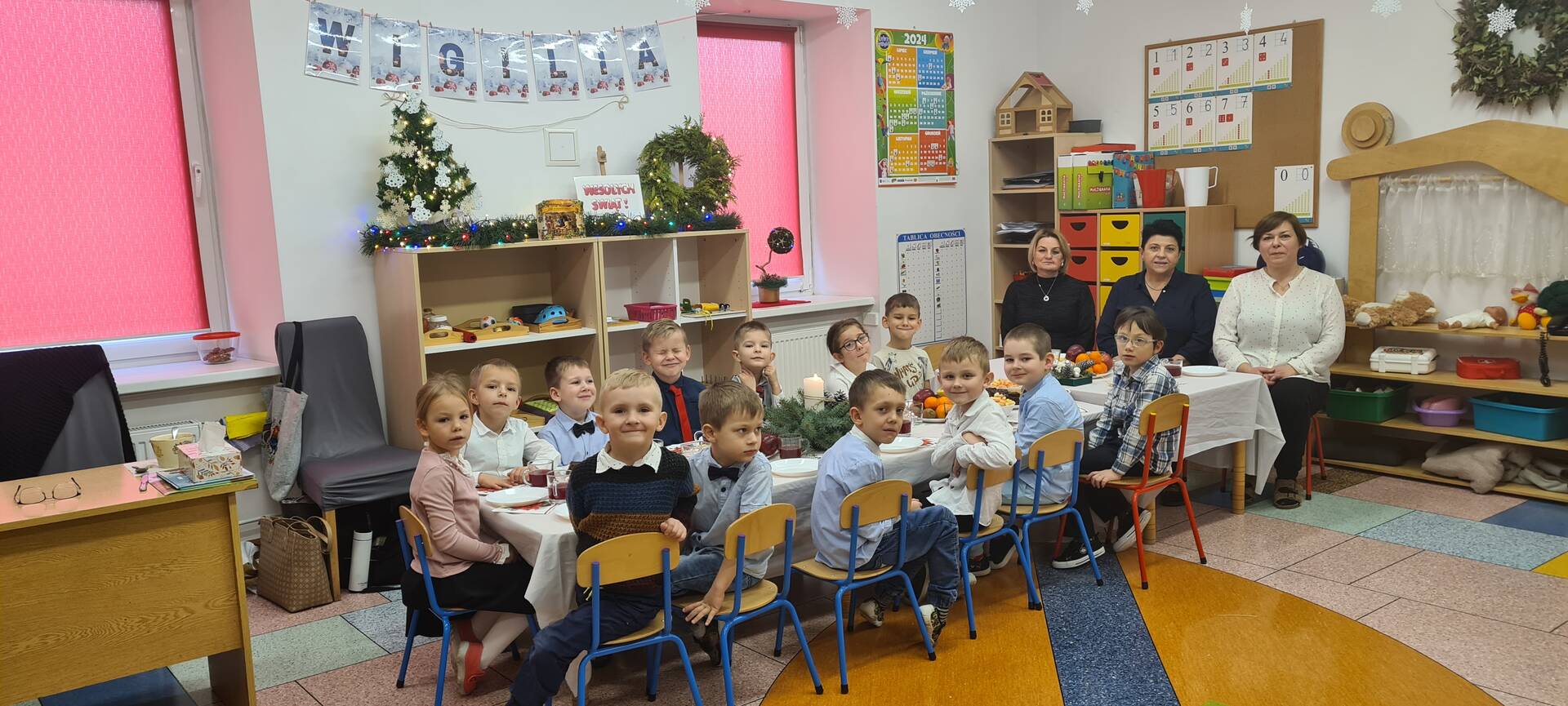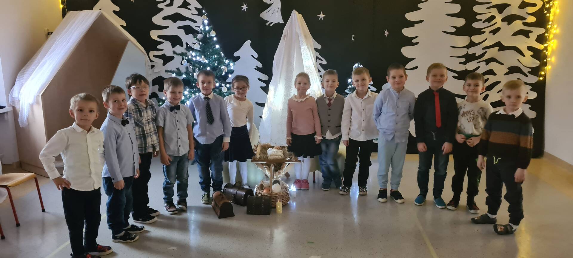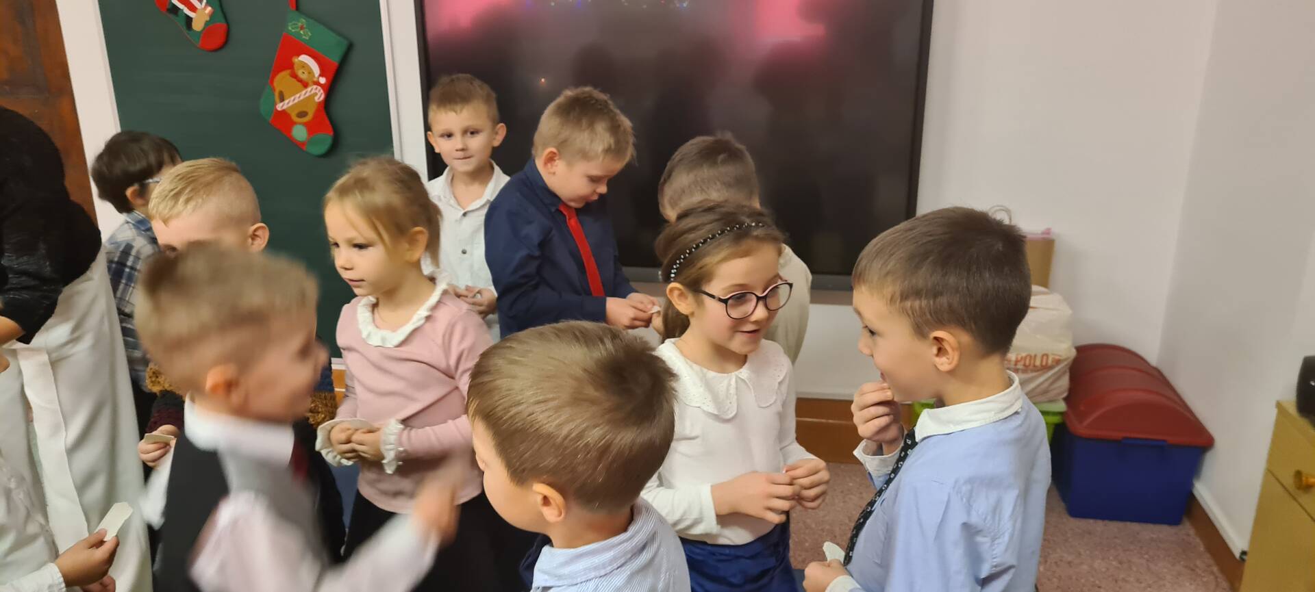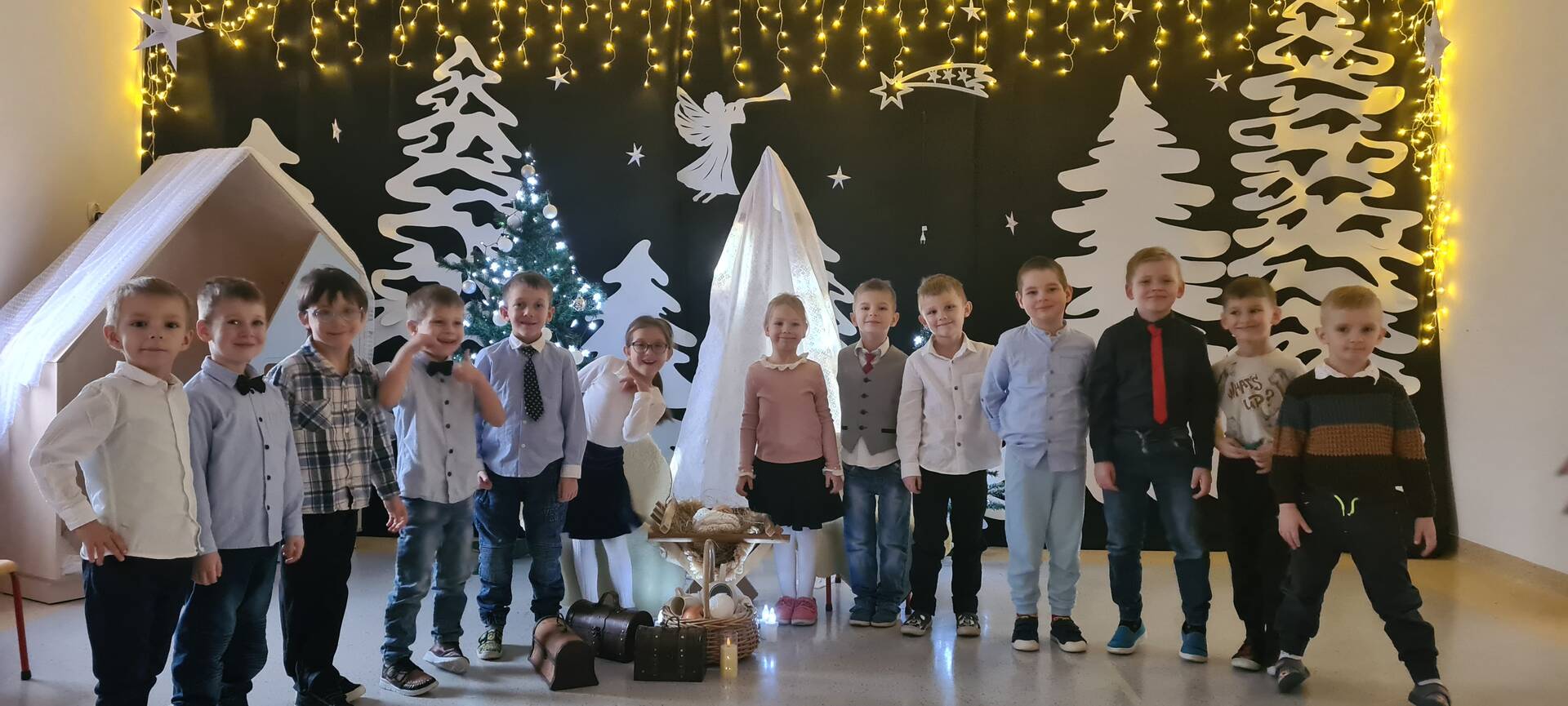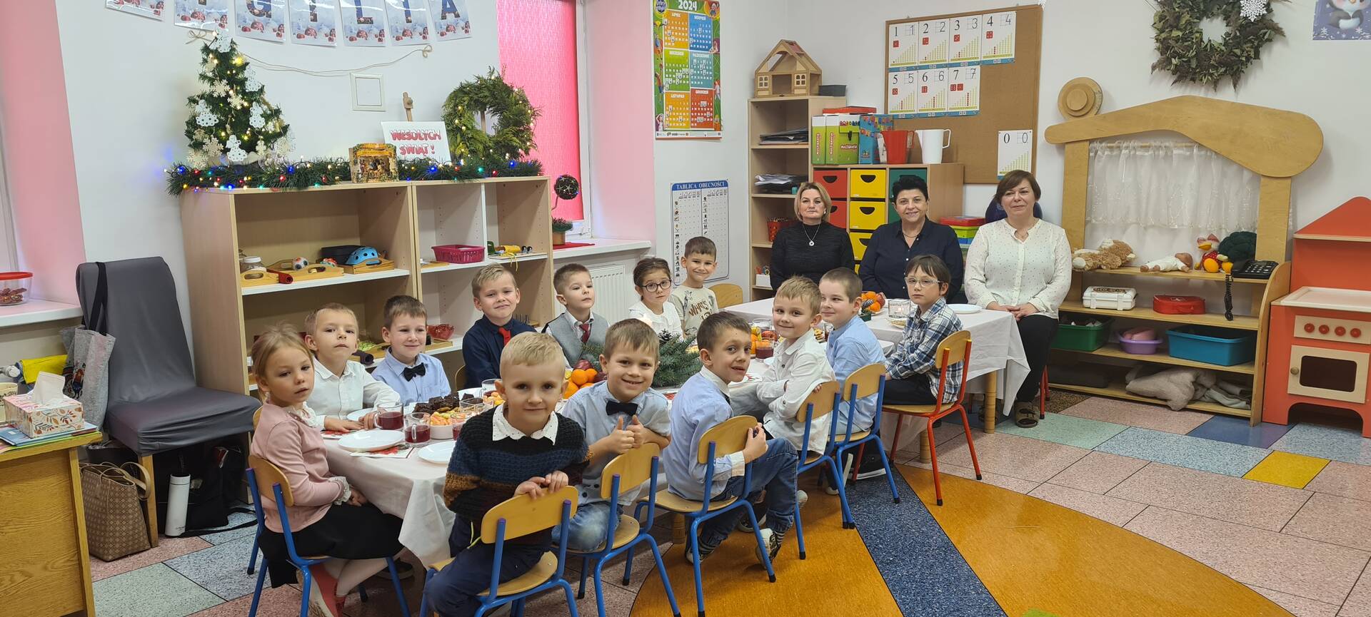 W dzień przedszkolnej wigilii panowała radosna atmosfera. Świąteczne dekoracje, dzieci w galowych strojach i przepiękne jasełka, w wykonaniu Niezapominajek, wprowadzały nastrój oczekiwania na wyjątkowe wydarzenie.