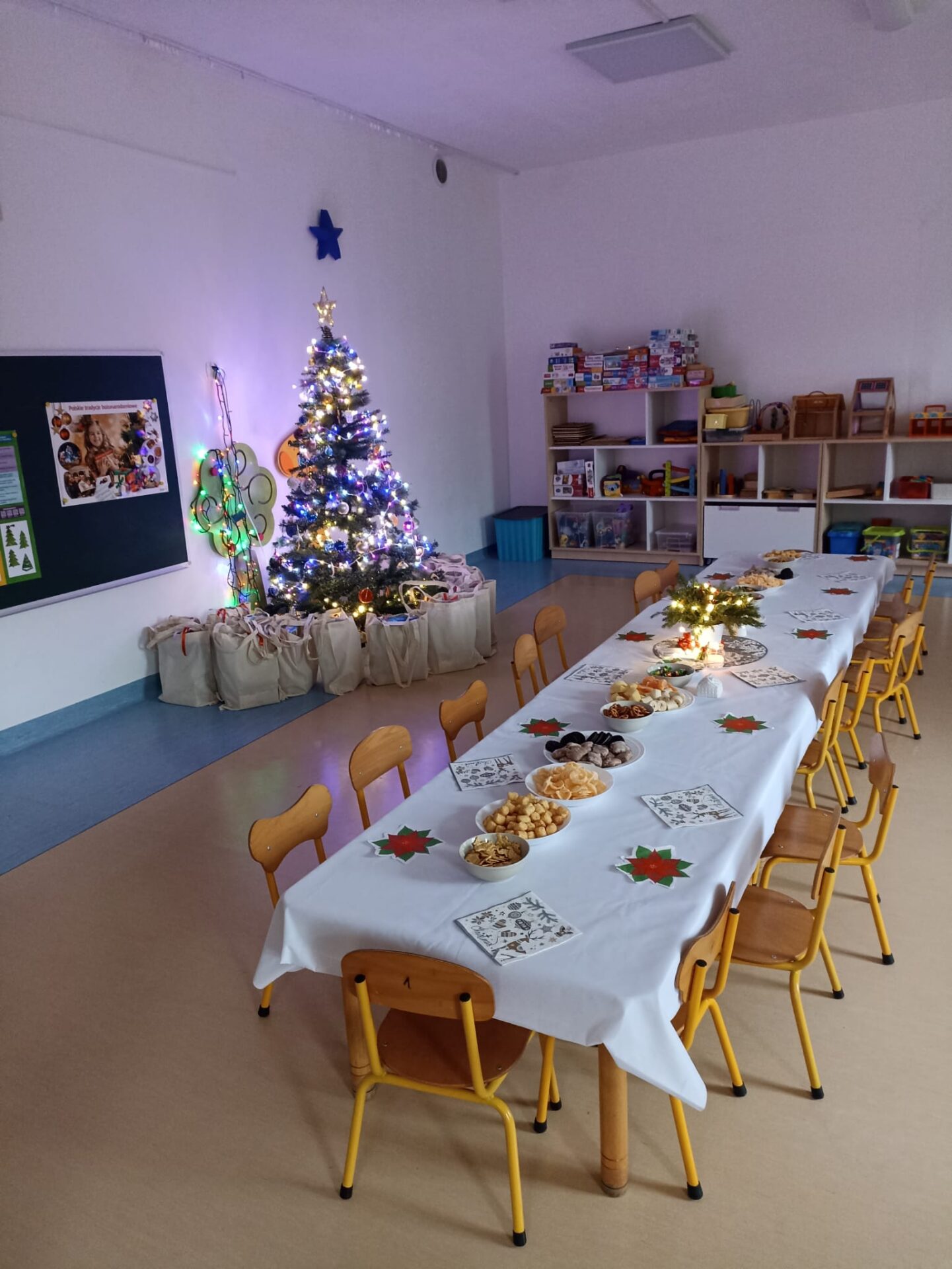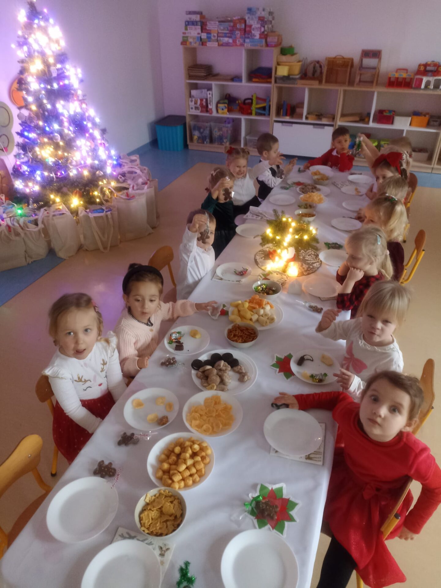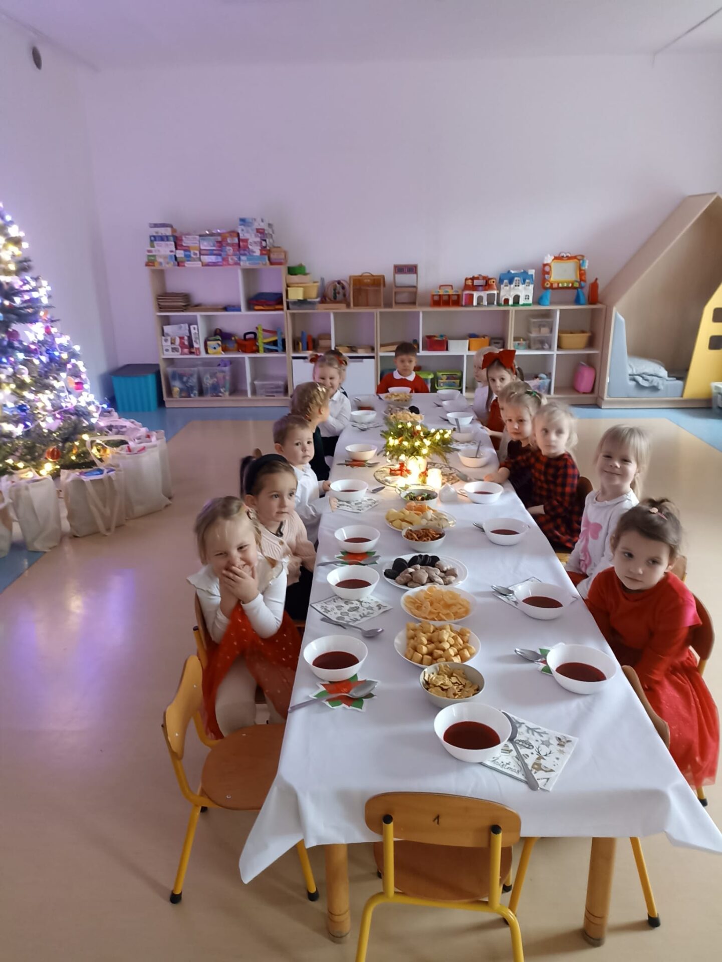 W magicznej atmosferze, przy dźwiękach pięknych kolęd, Fiołki zasiadły do starannie przystrojonego wigilijnego stołu. Na stole nie zabrakło tradycyjnych, świątecznych potraw, które umiliły wspólne świętowanie. Ten wyjątkowy czas pozwolił naszym maluchom poznać i poczuć ducha rodzinnych, bożonarodzeniowych tradycji, budując radosne i ciepłe wspomnienia.